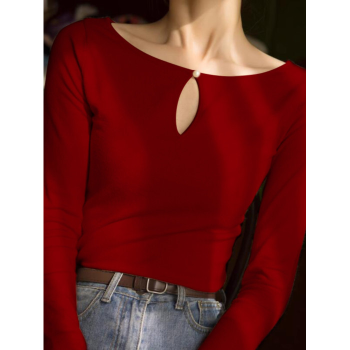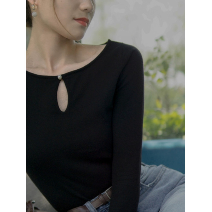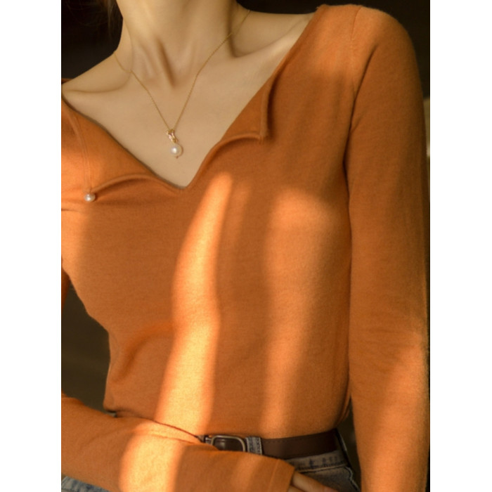 設計感小衆兩穿針織打底衫女秋冬純欲風修身顯瘦內搭性感新年上衣
