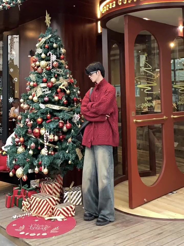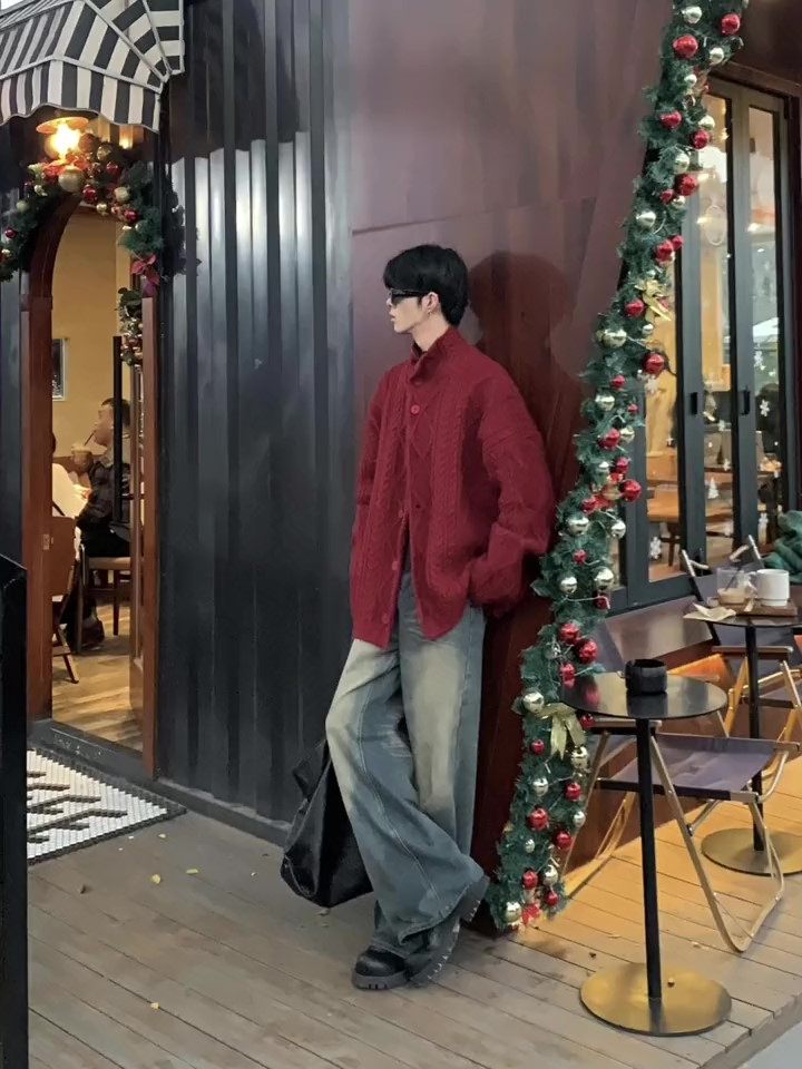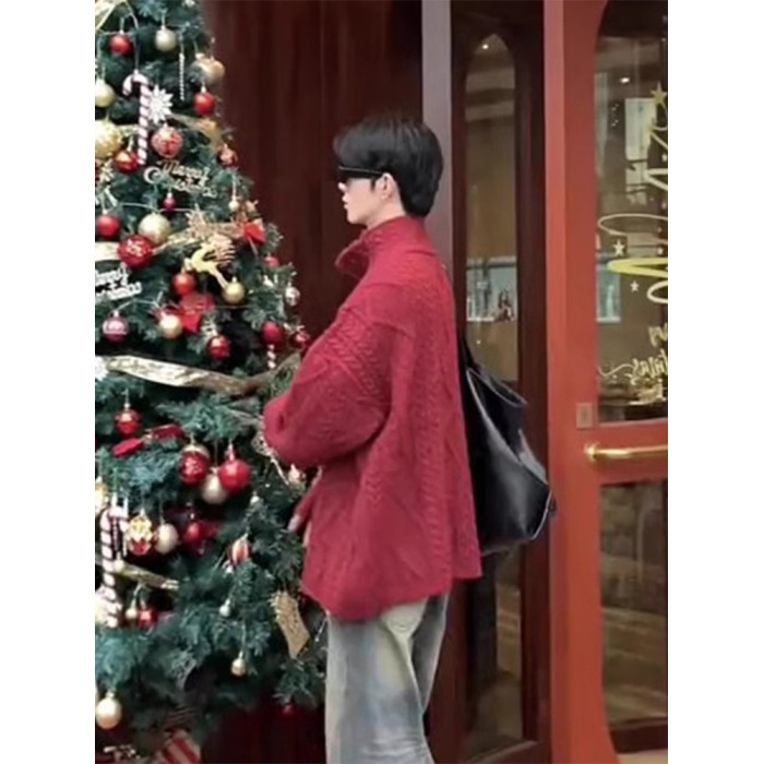 新年紅色毛衣男款新年過年戰袍冬季慵嬾風氛圍感本命年針織衫外套