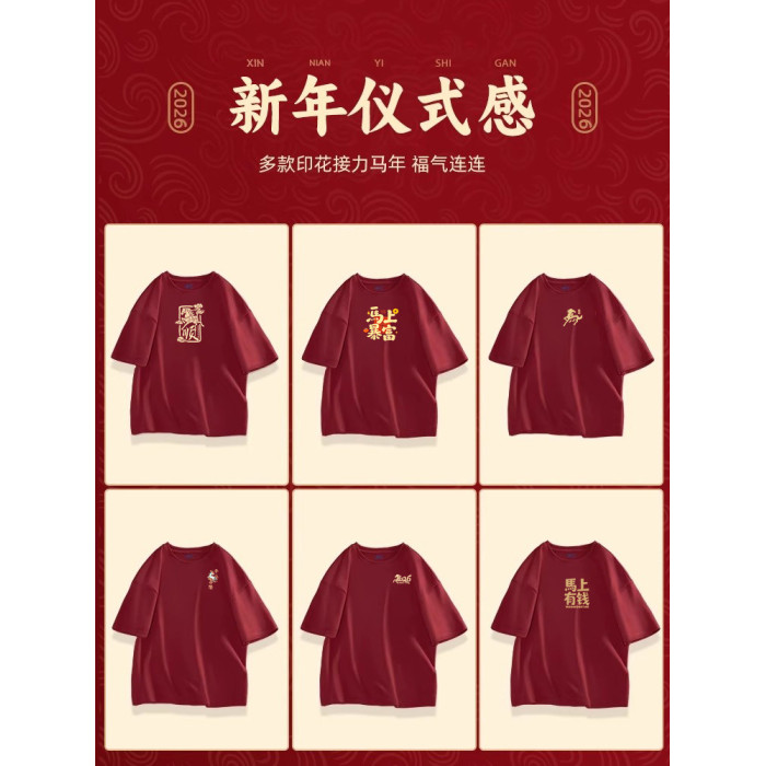 廻力2026年紅色短袖t恤男士新款馬年本命年衣服純棉大碼男裝半袖