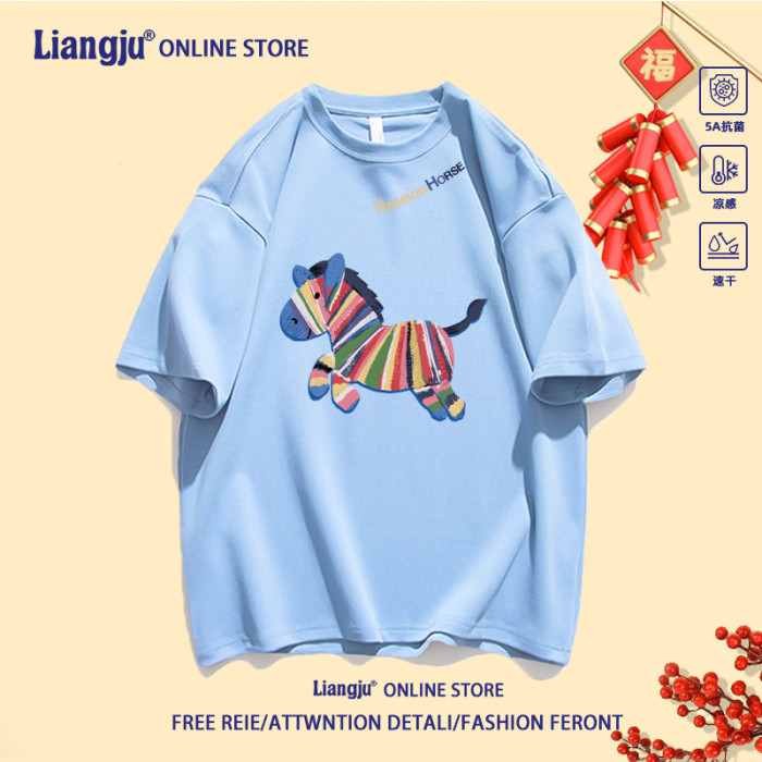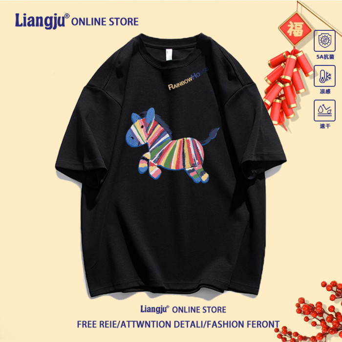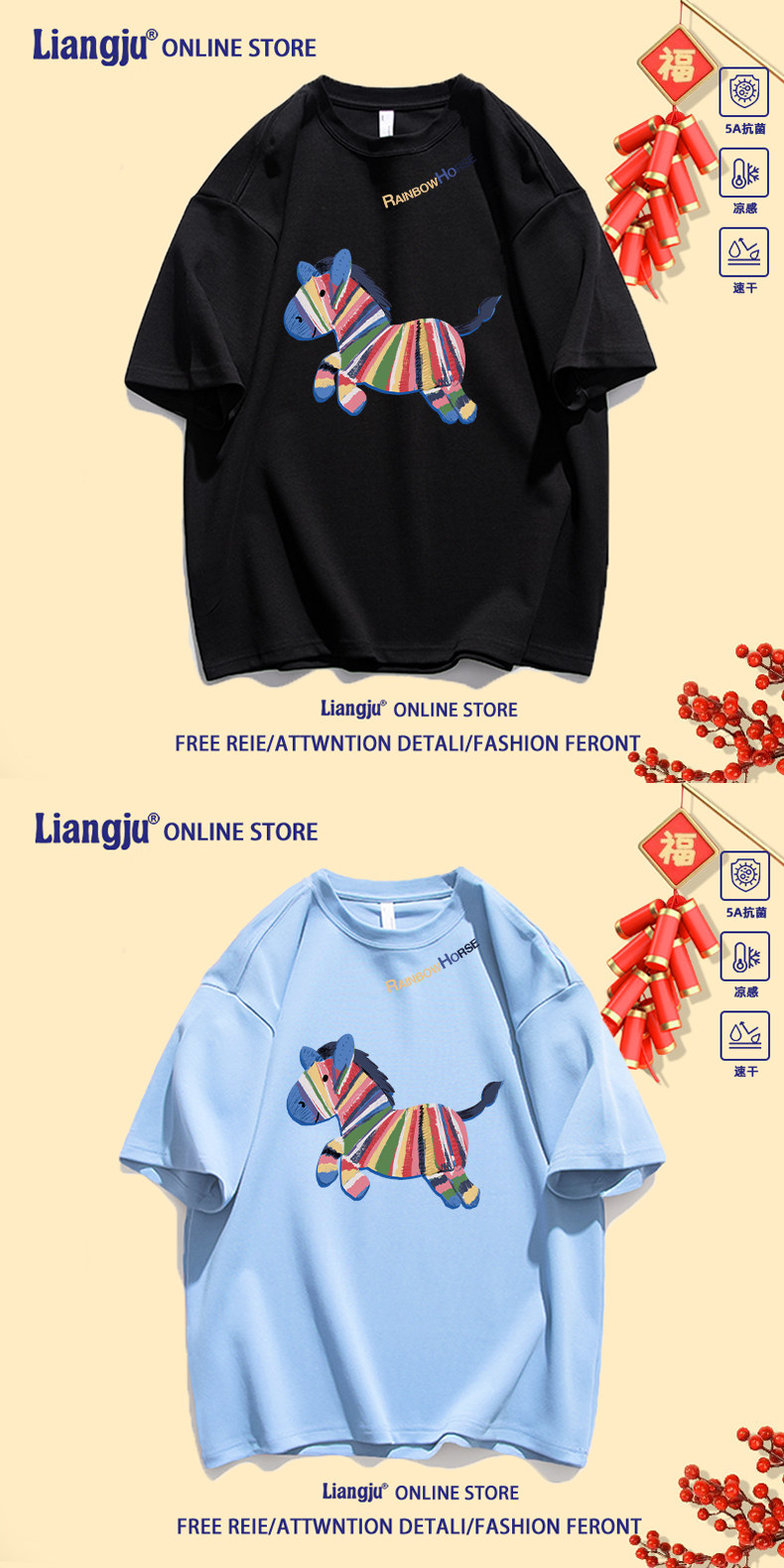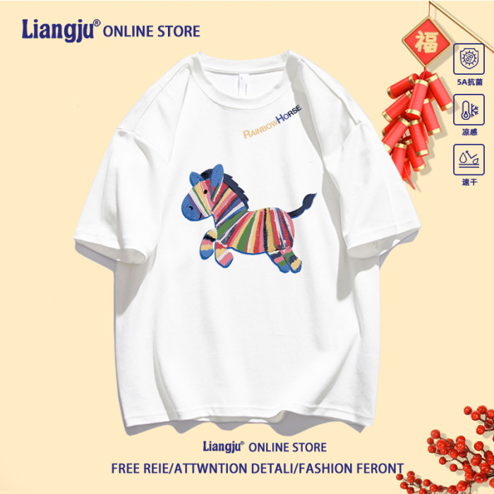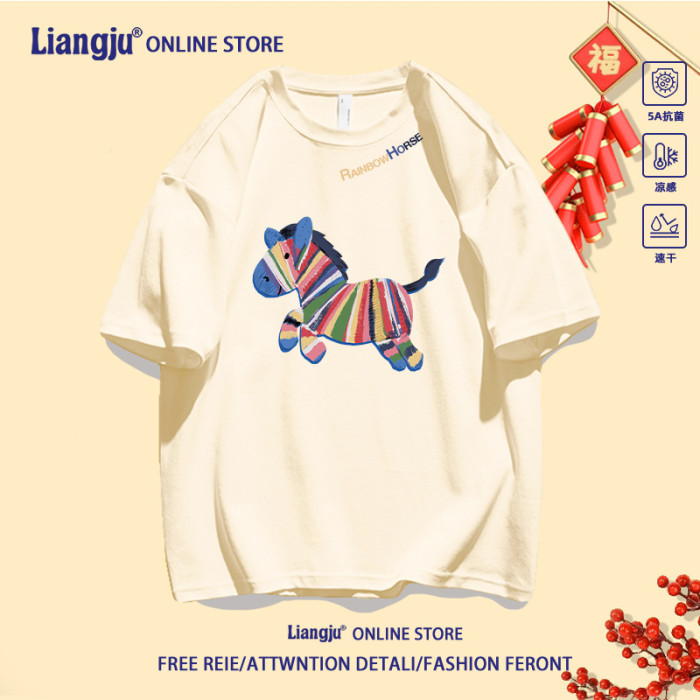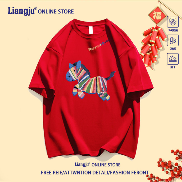 2026馬年款紅色短袖t恤男女新年百搭青少年本命年學生純棉上衣服