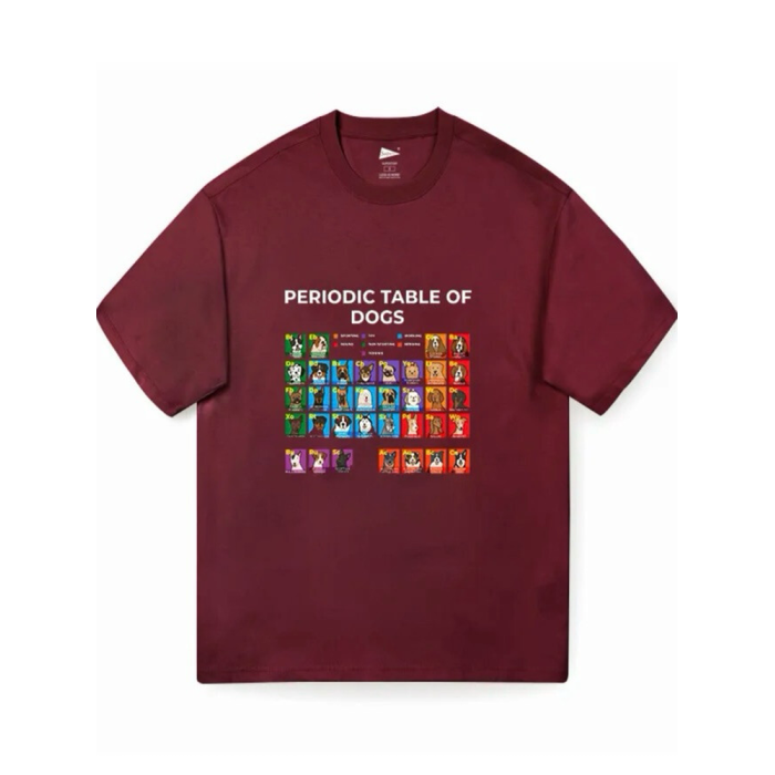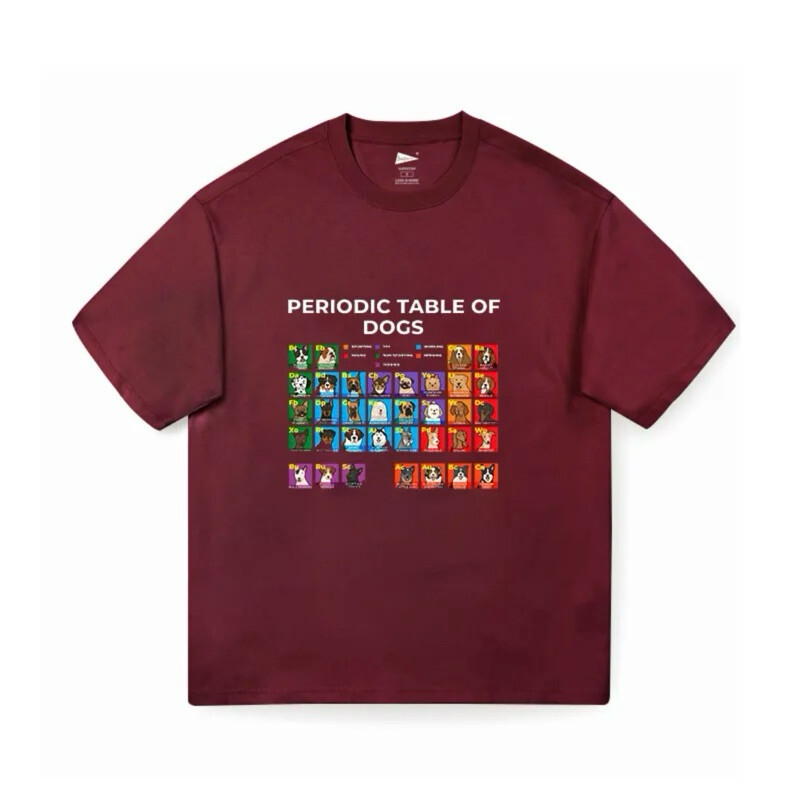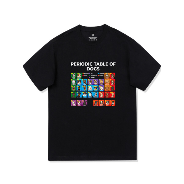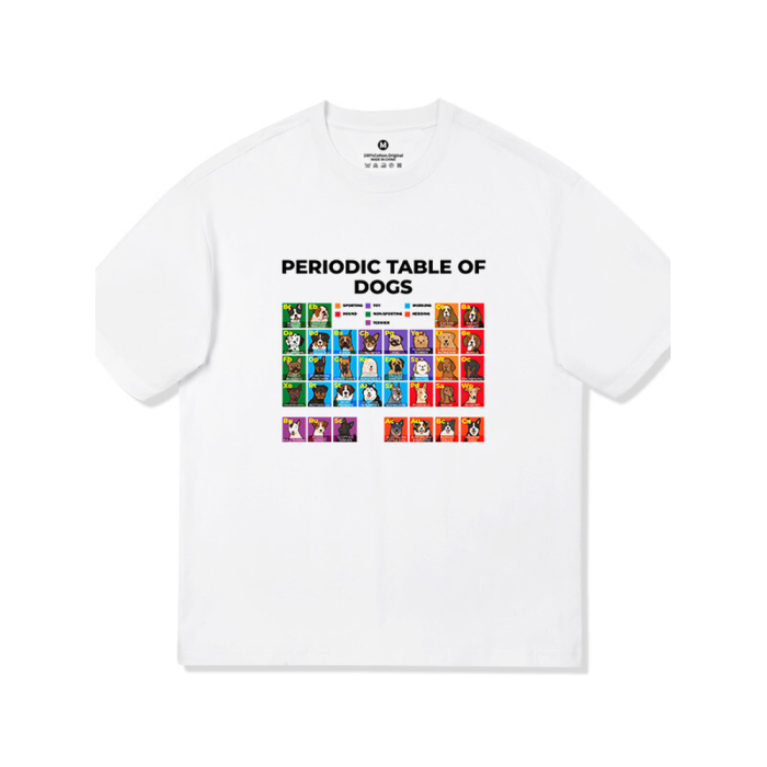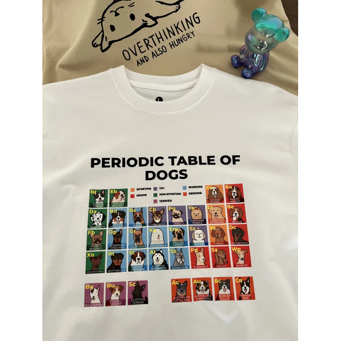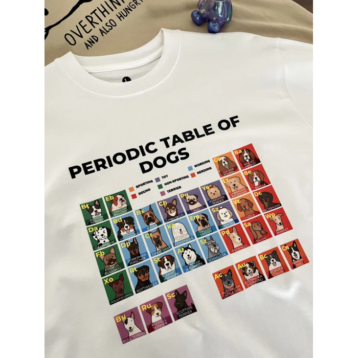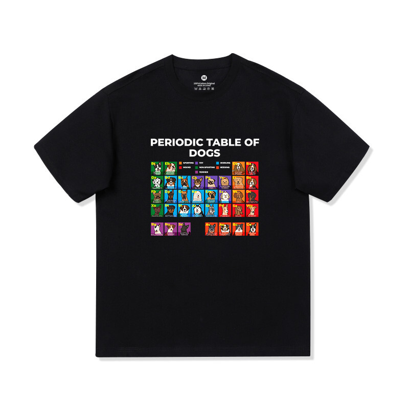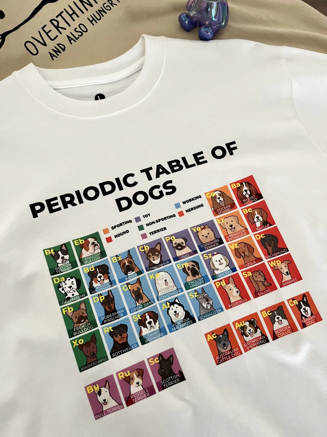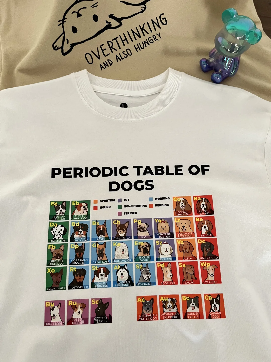 狗狗元素周期表短袖T恤圓領情侶短袖寬鬆休閒男女寵物趣味印花
