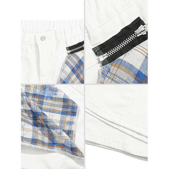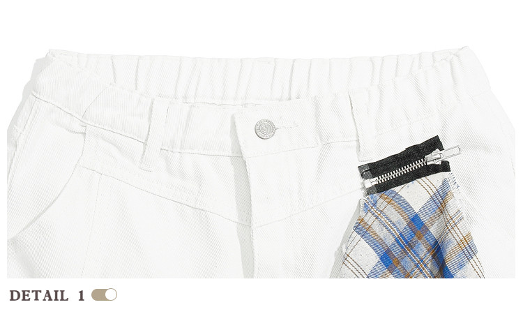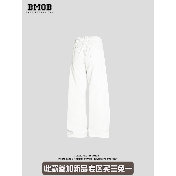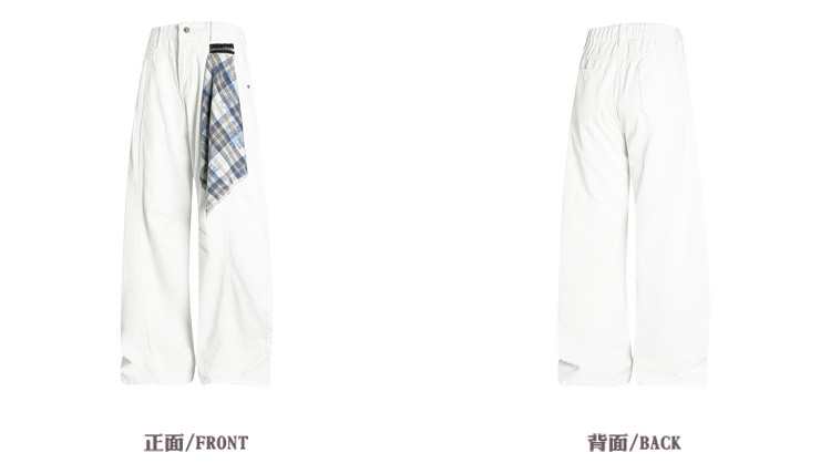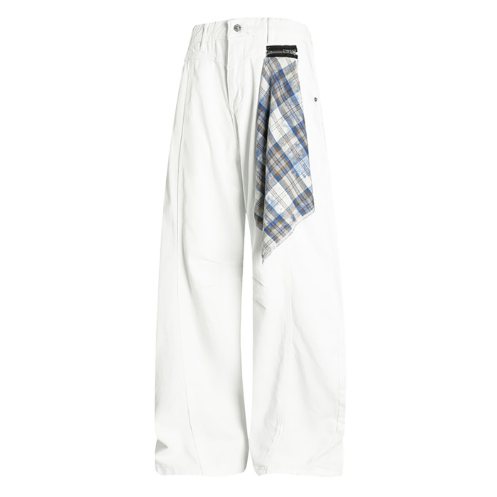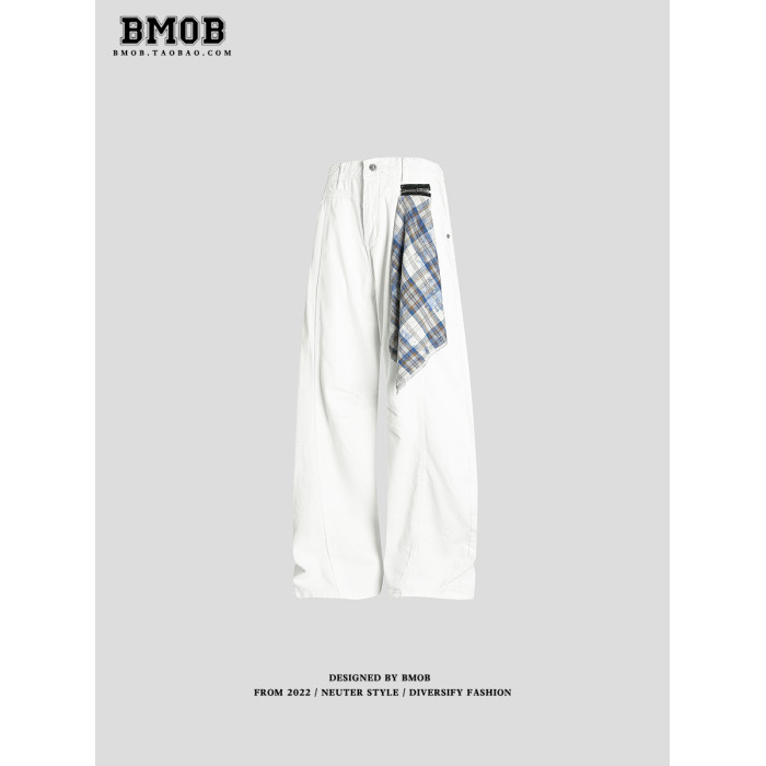 BMOB美式復古格紋方巾牛仔褲男女夏季潮牌寬鬆彎刀濶腿休閒長褲潮