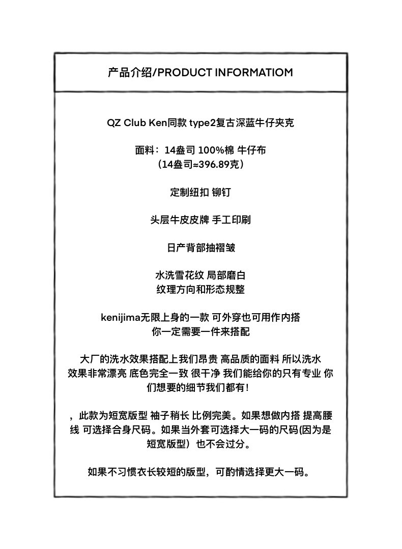 QZ Club ken同款90S日産Type2牛仔夾克外套復古水洗深藍cleanfit