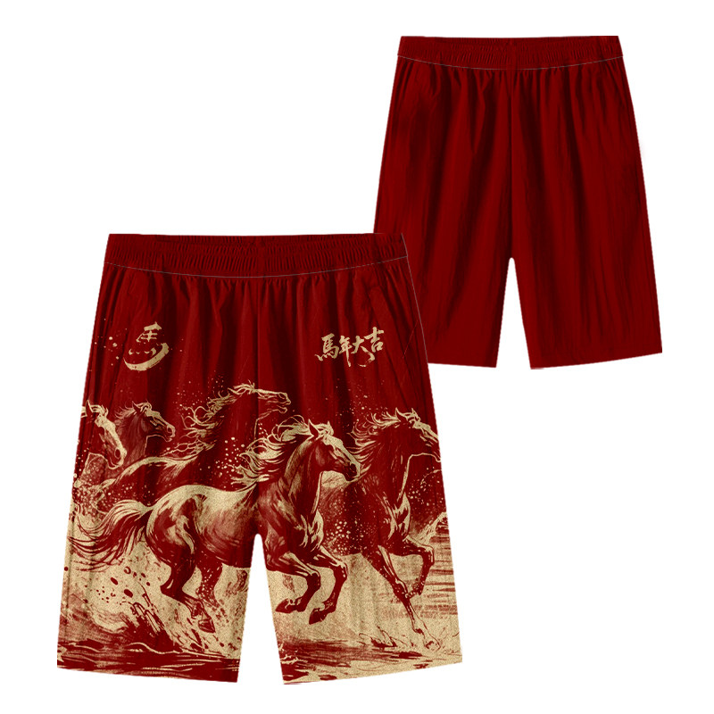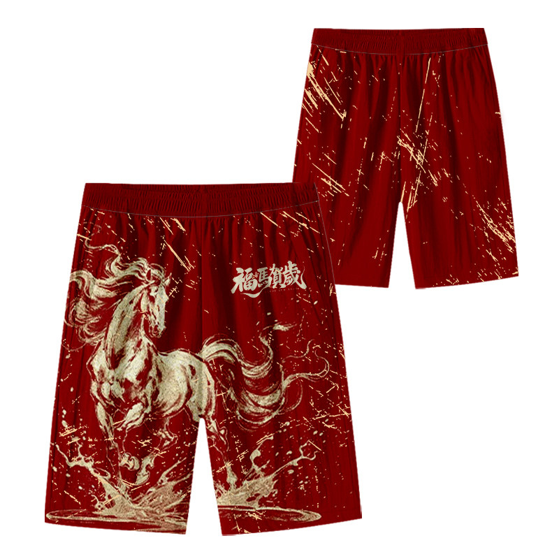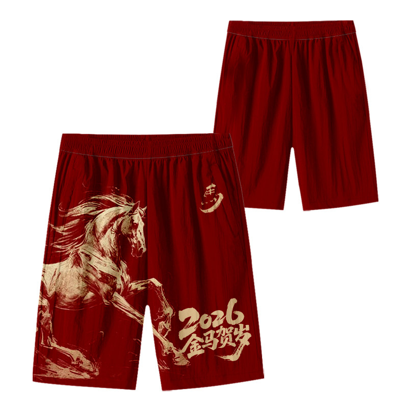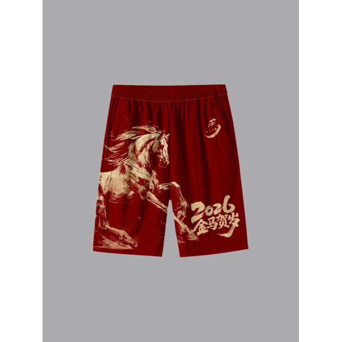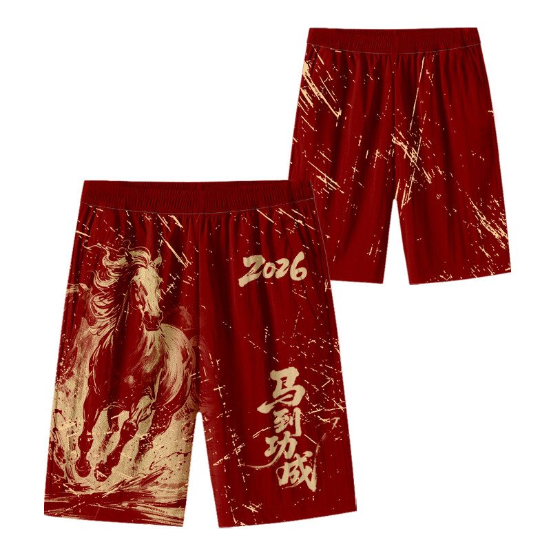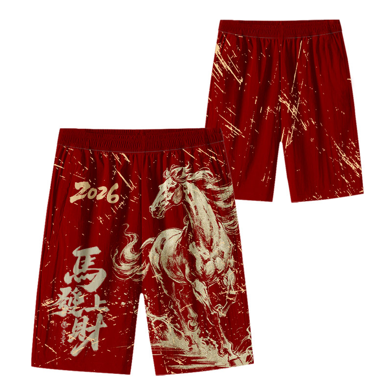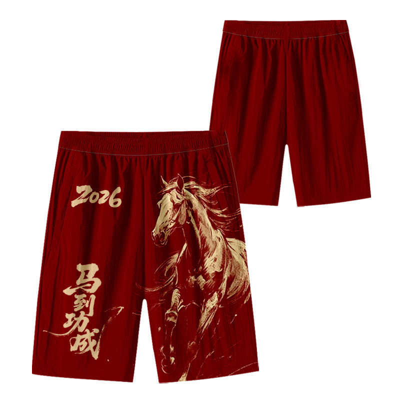 2026馬年新年本命年馬到成功春節速乾短褲子男士五分褲沙灘褲中褲