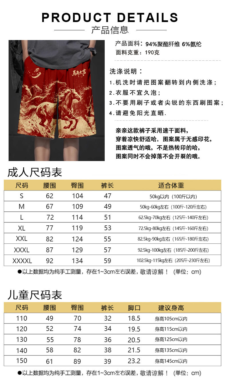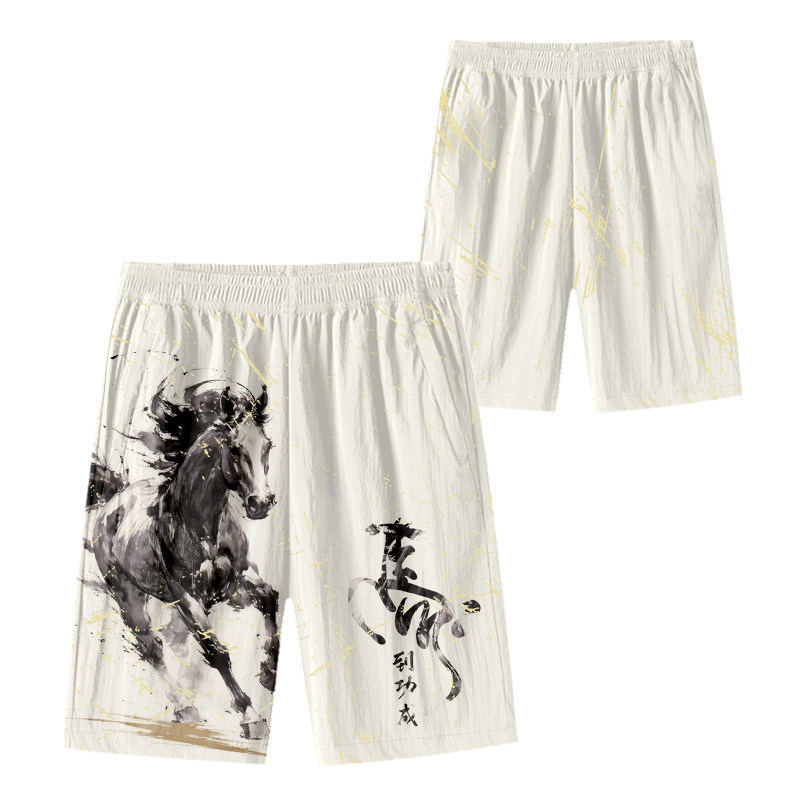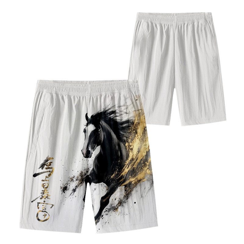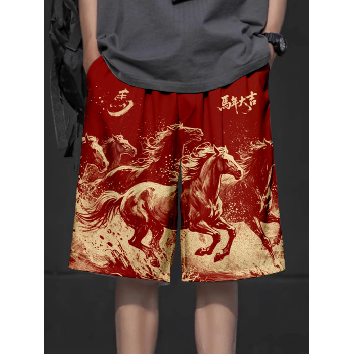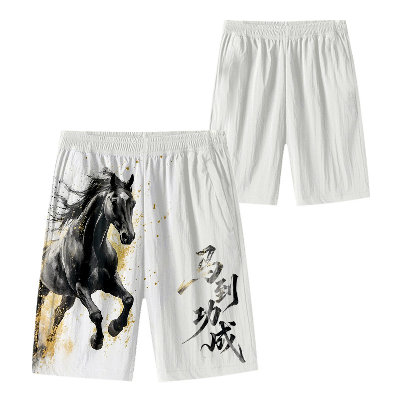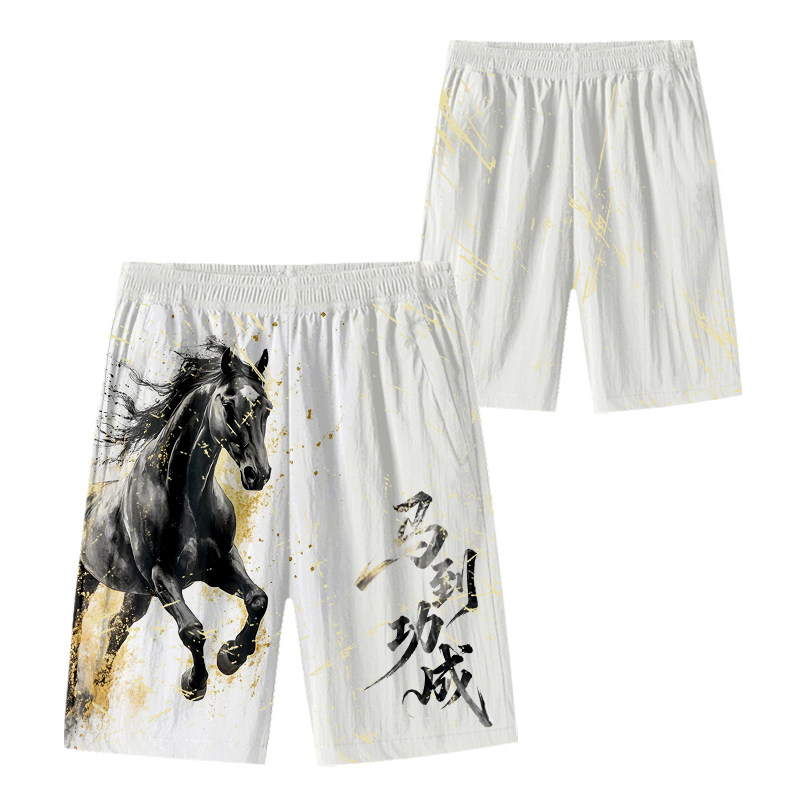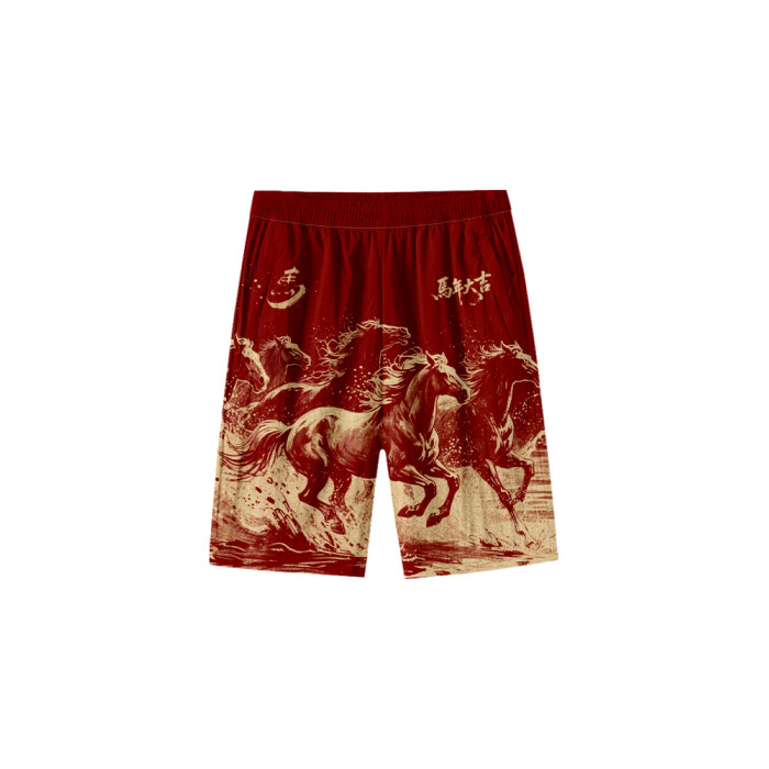 2026馬年新年本命年馬到成功春節速乾短褲子男士五分褲沙灘褲中褲