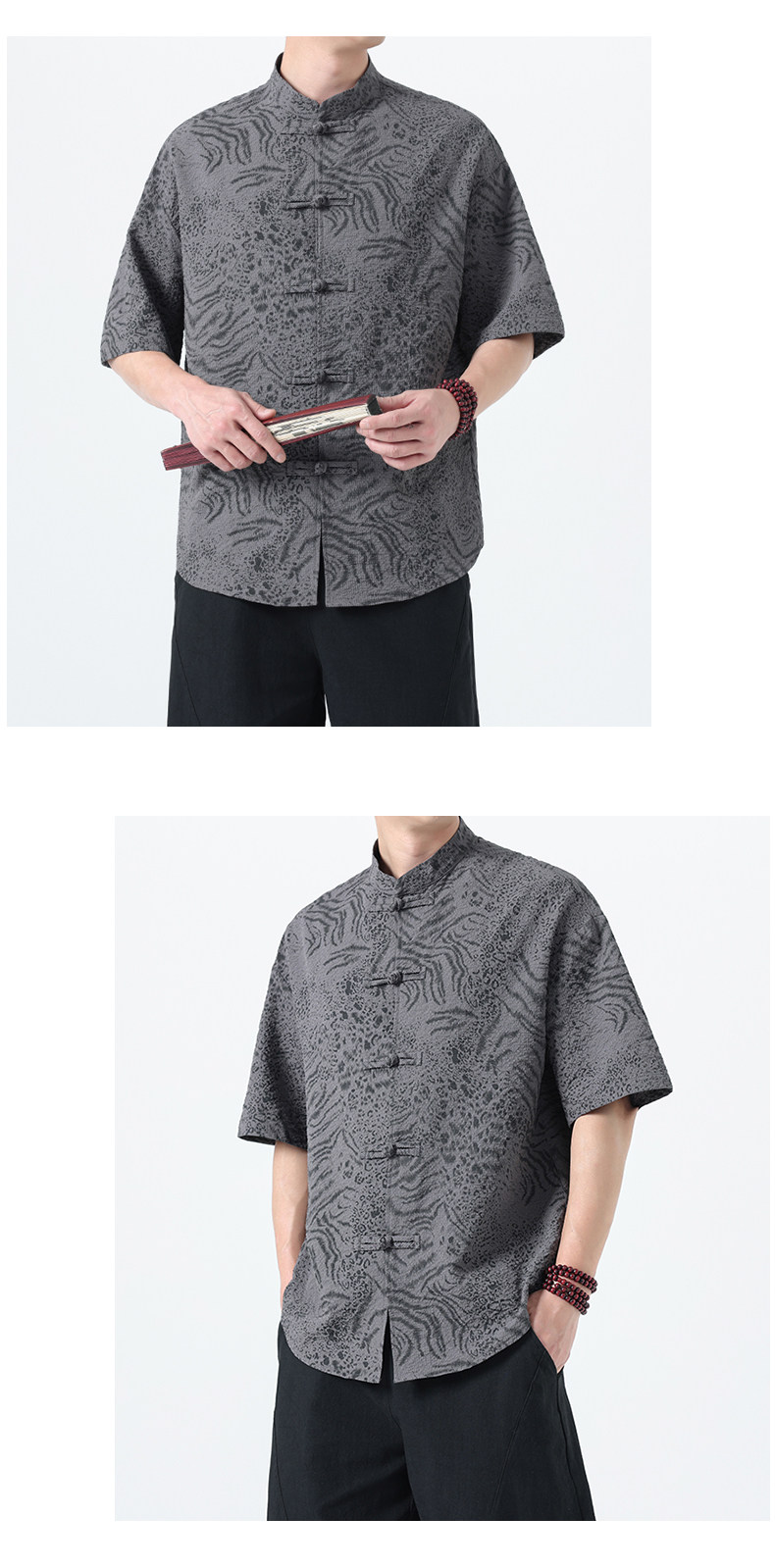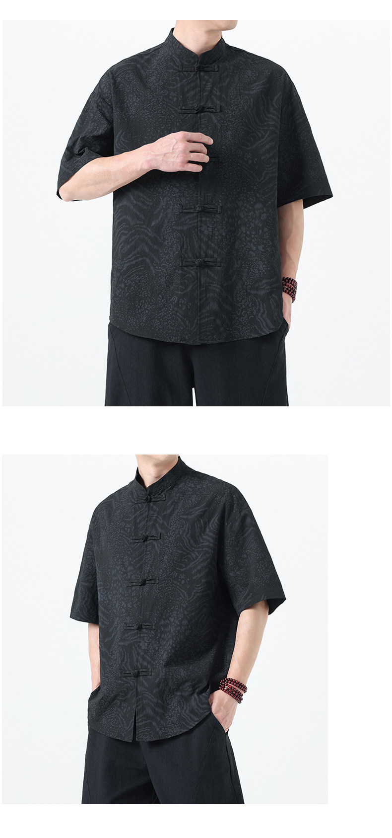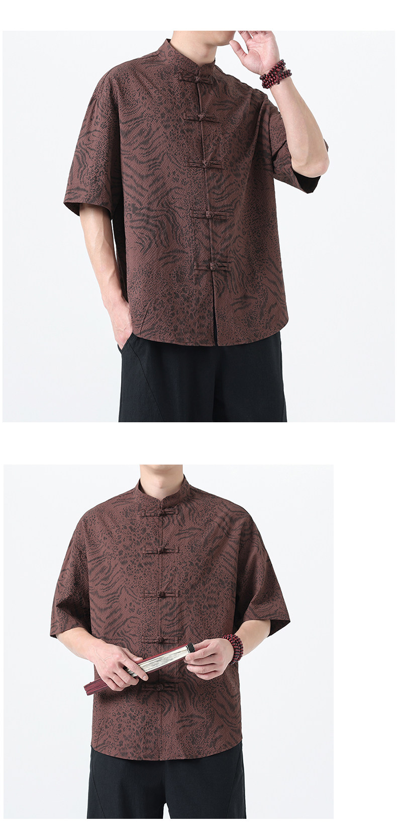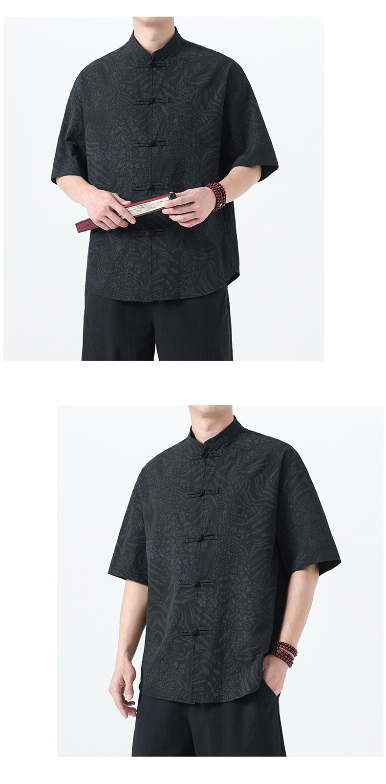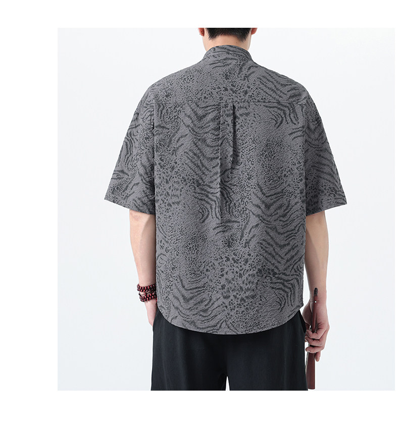 新中式夏季薄款印花唐裝短袖襯衫中式復古大碼立領半袖茶服男上衣