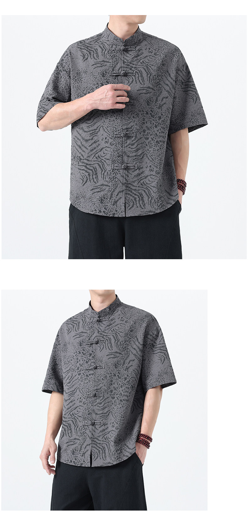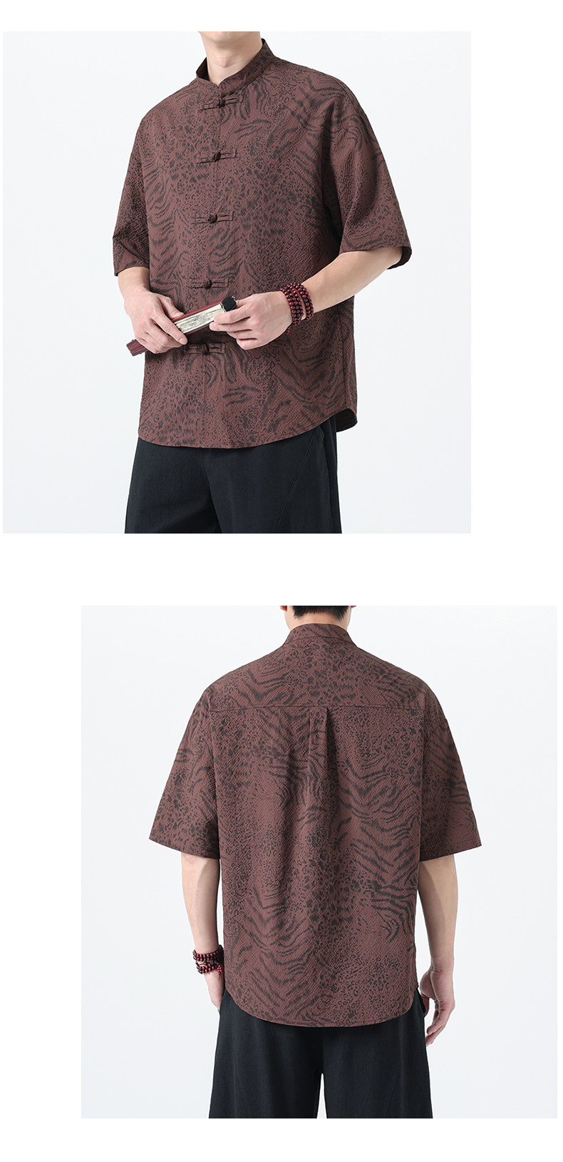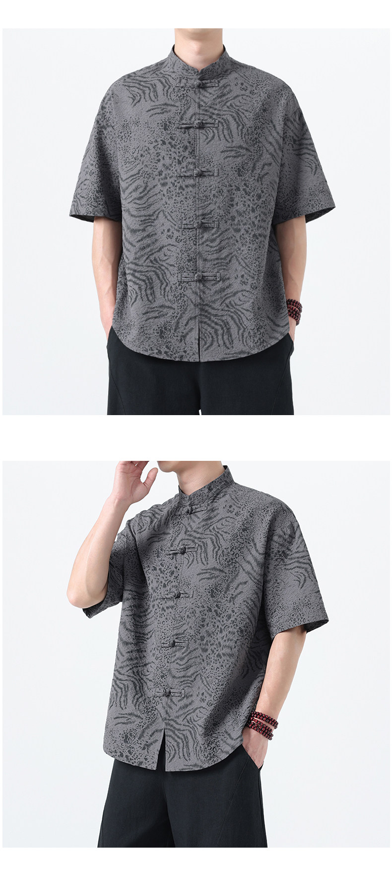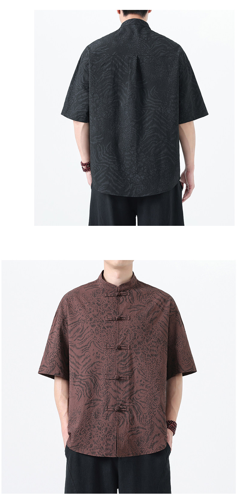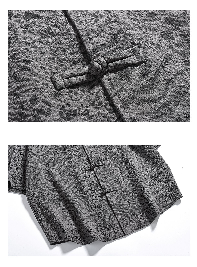 新中式夏季薄款印花唐裝短袖襯衫中式復古大碼立領半袖茶服男上衣