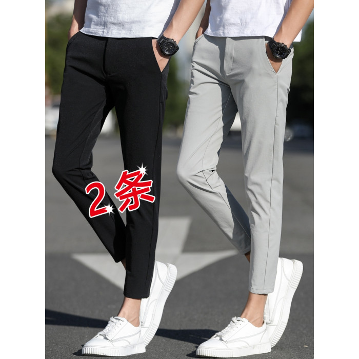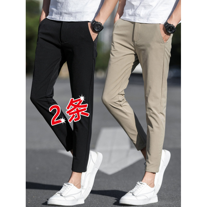 夏季九分褲男修身小腳褲男士休閒褲韓版潮流褲子男春夏薄款速乾褲