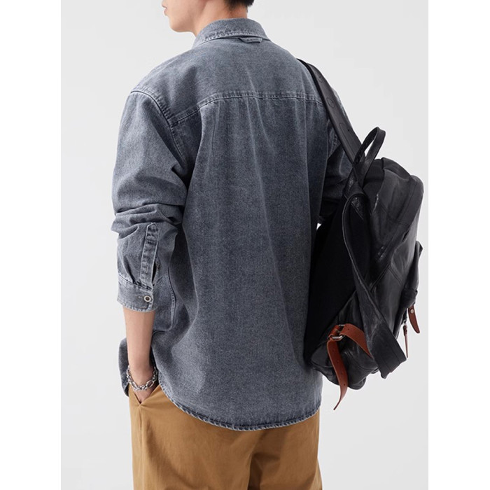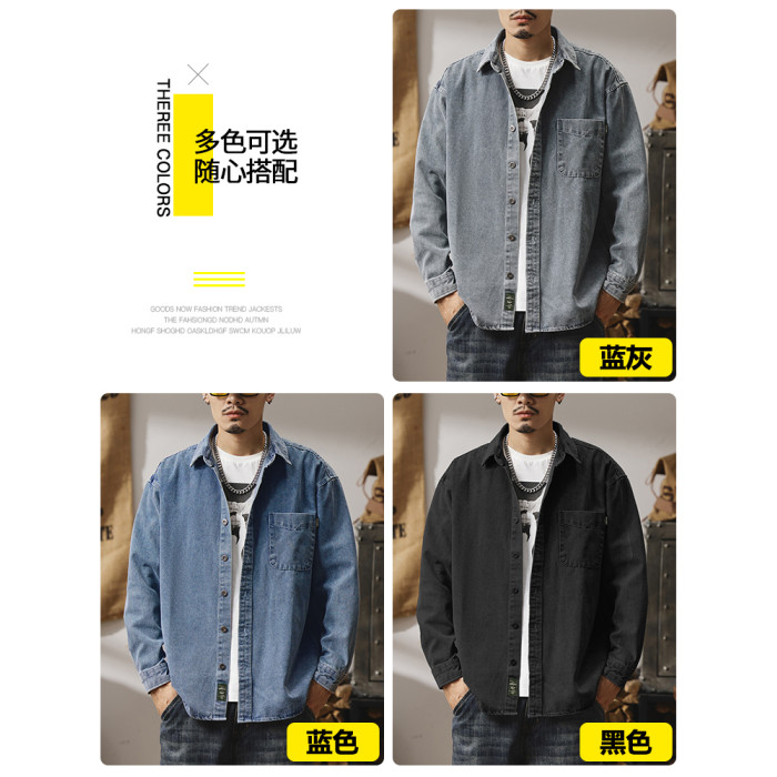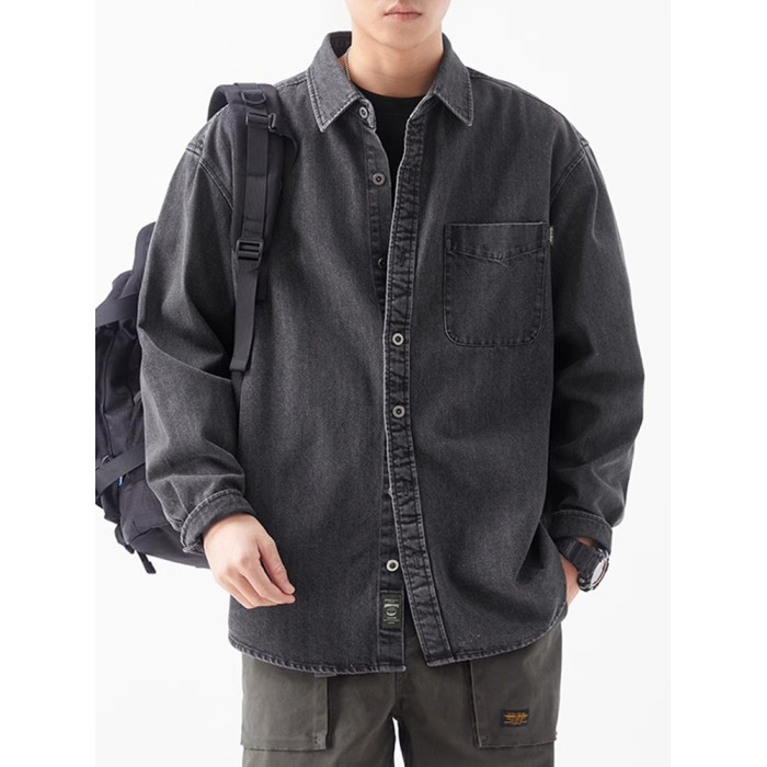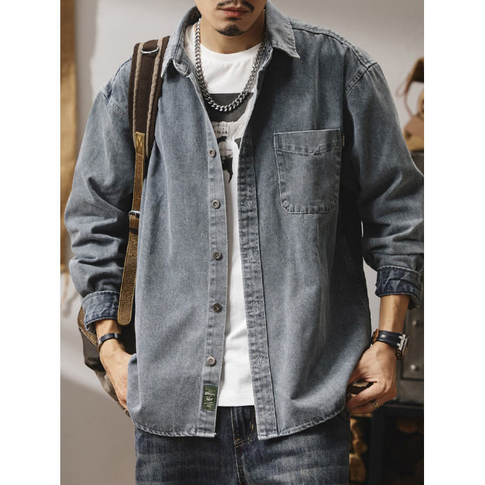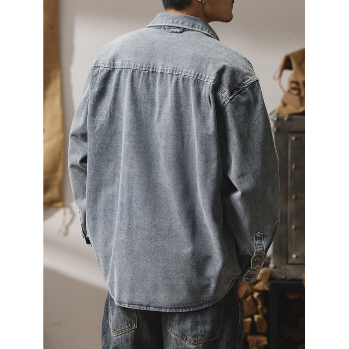 輕熟風潮流做舊牛仔襯衫男生秋冬新款日系復古休閒工裝襯衣外套男
