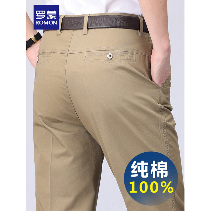 羅矇男士休閒褲春季新款中老年寬鬆直筒褲純棉爸爸褲子免燙長褲男