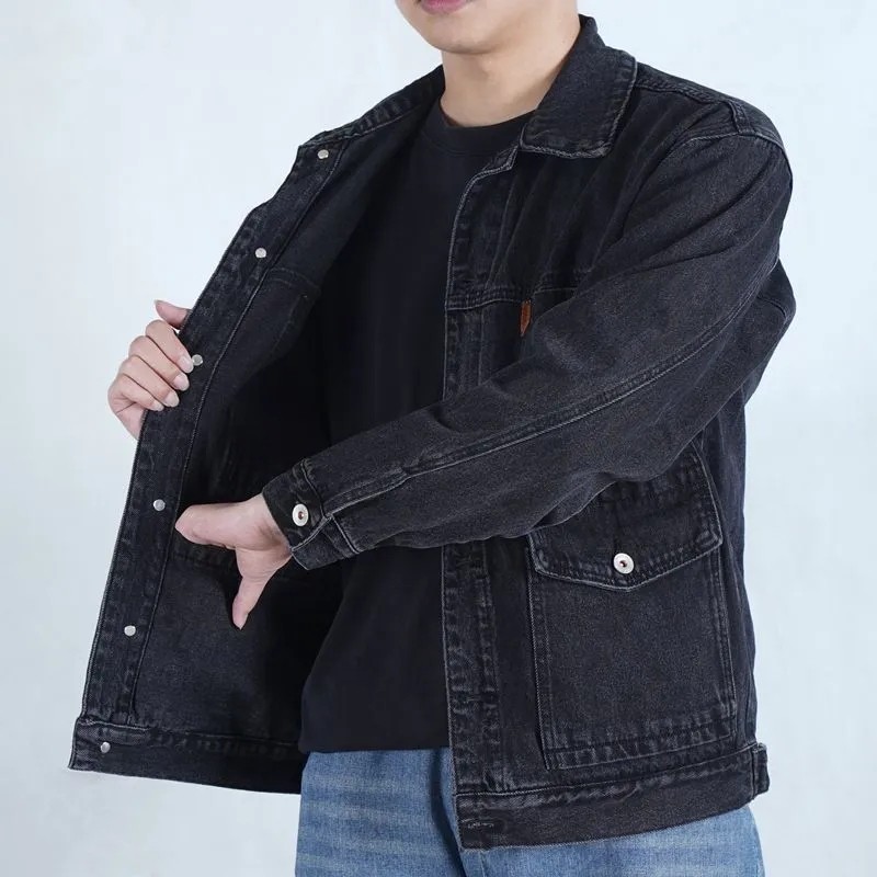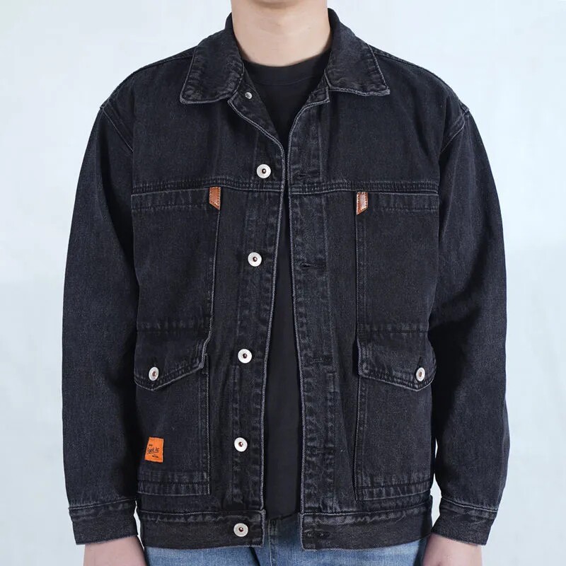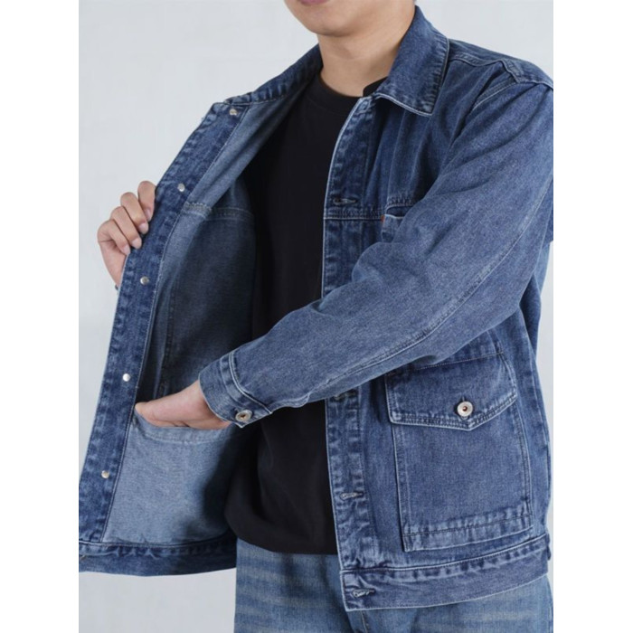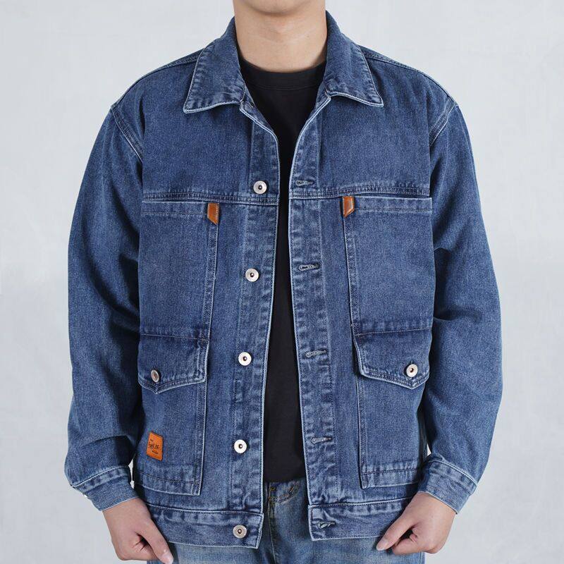 牛仔外套男春秋大碼男裝勞保工作服工地乾活電銲防燙耐磨工裝上衣