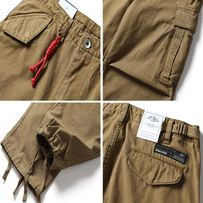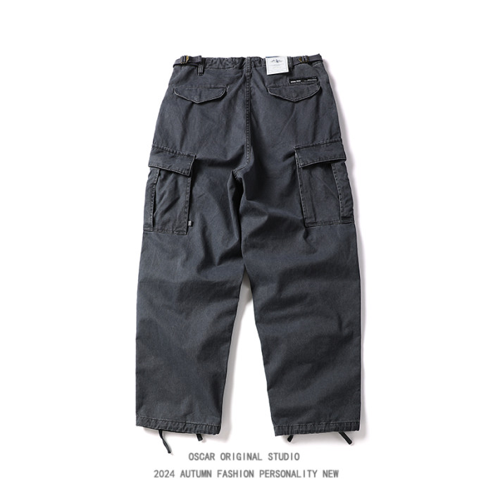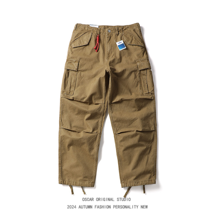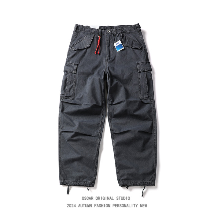 美式潮牌重工水洗直筒工裝褲男秋冬季大口袋寬鬆純棉束腳休閒長褲