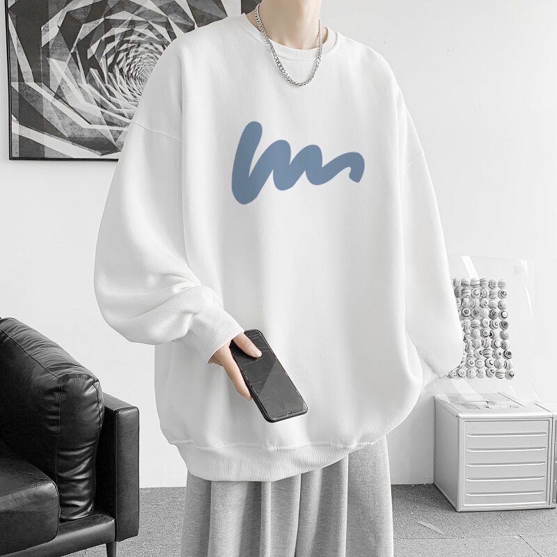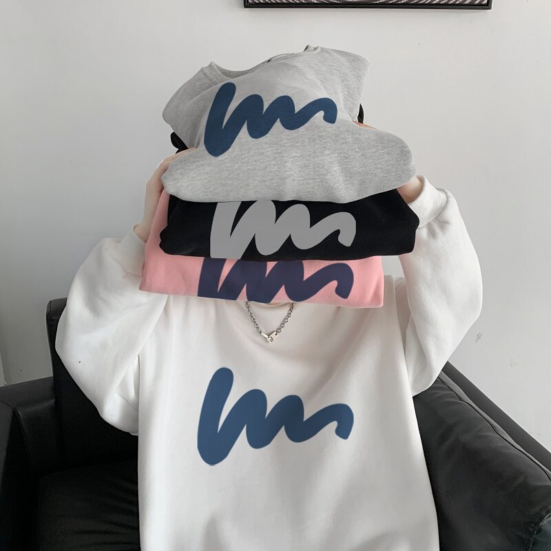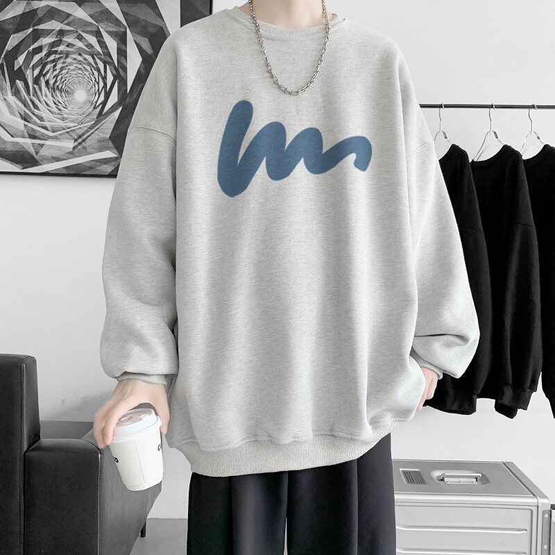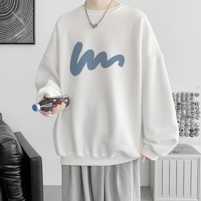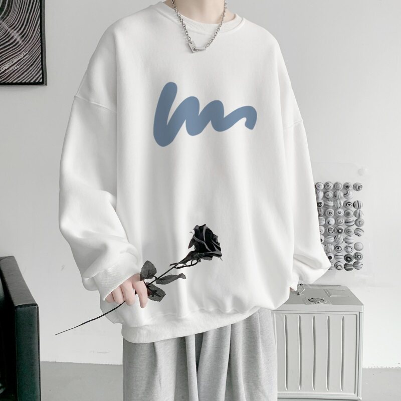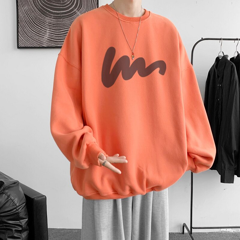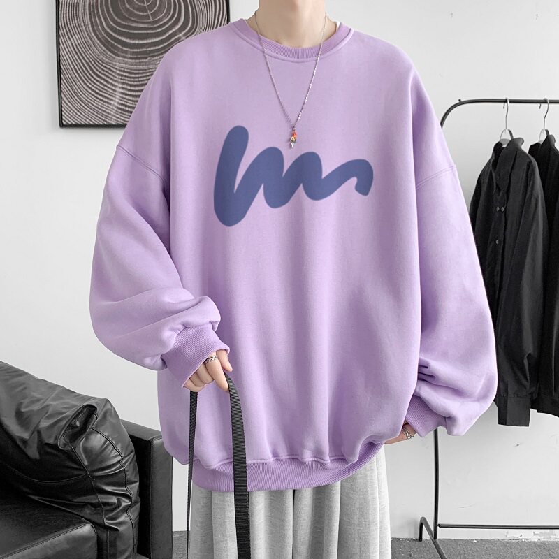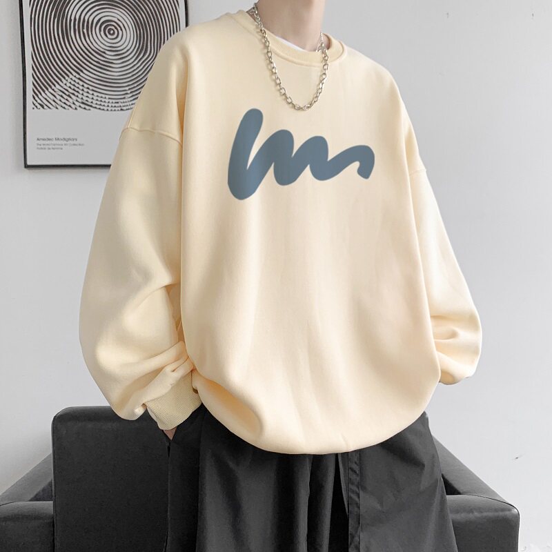 600G重磅粉色印花圓領衛衣男春季加絨長袖T恤落肩打底衫外套潮流