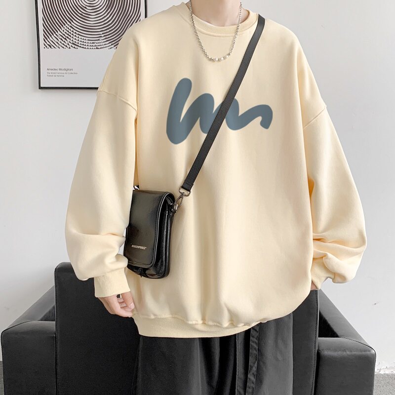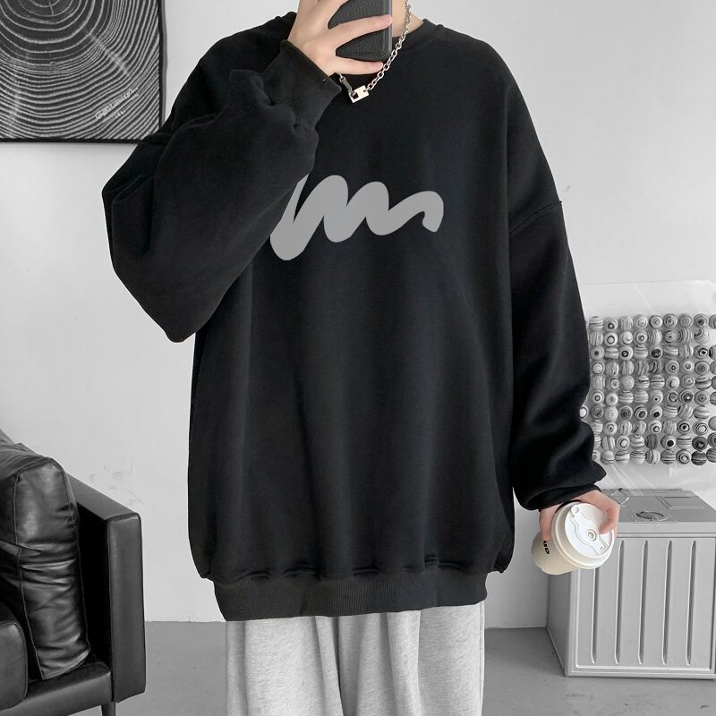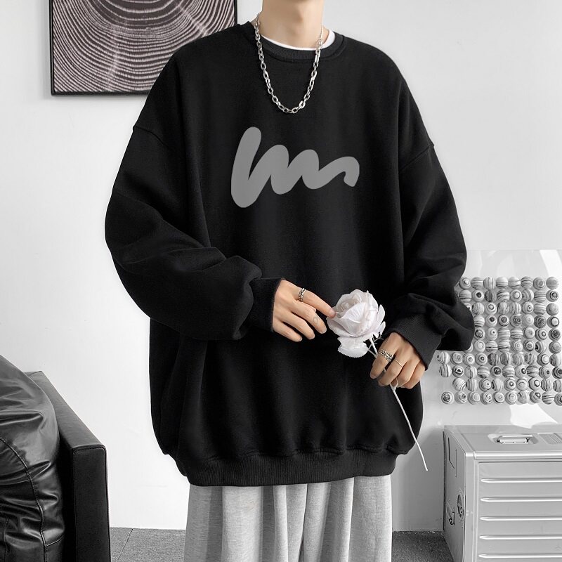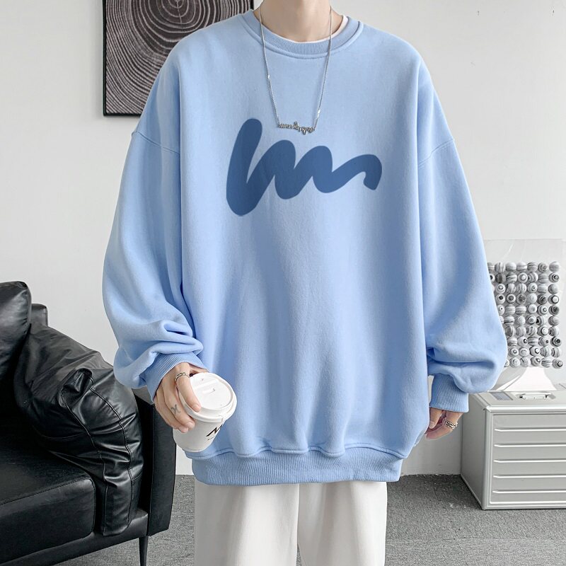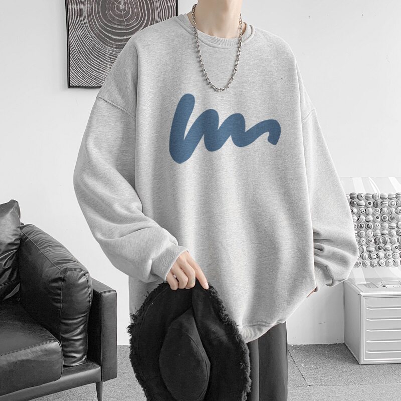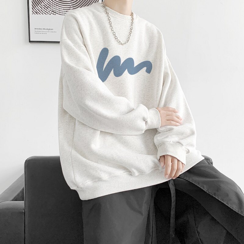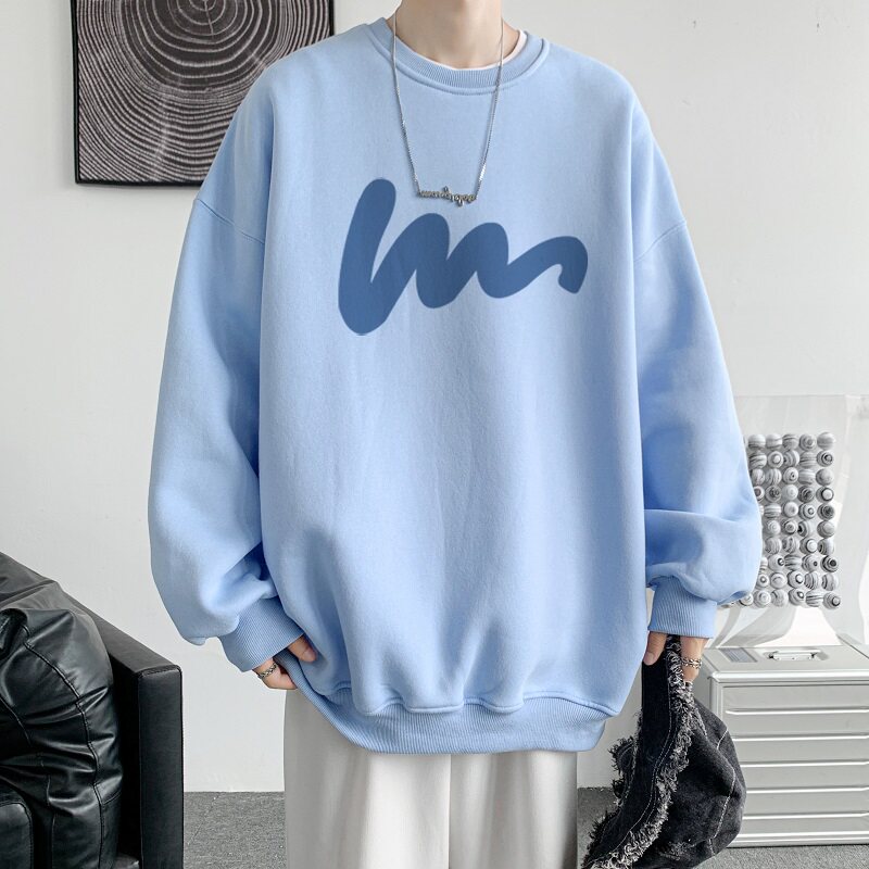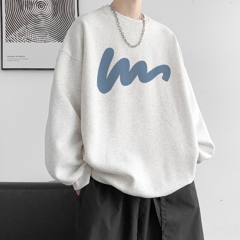 600G重磅粉色印花圓領衛衣男春季加絨長袖T恤落肩打底衫外套潮流