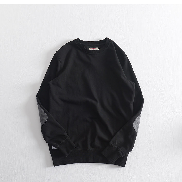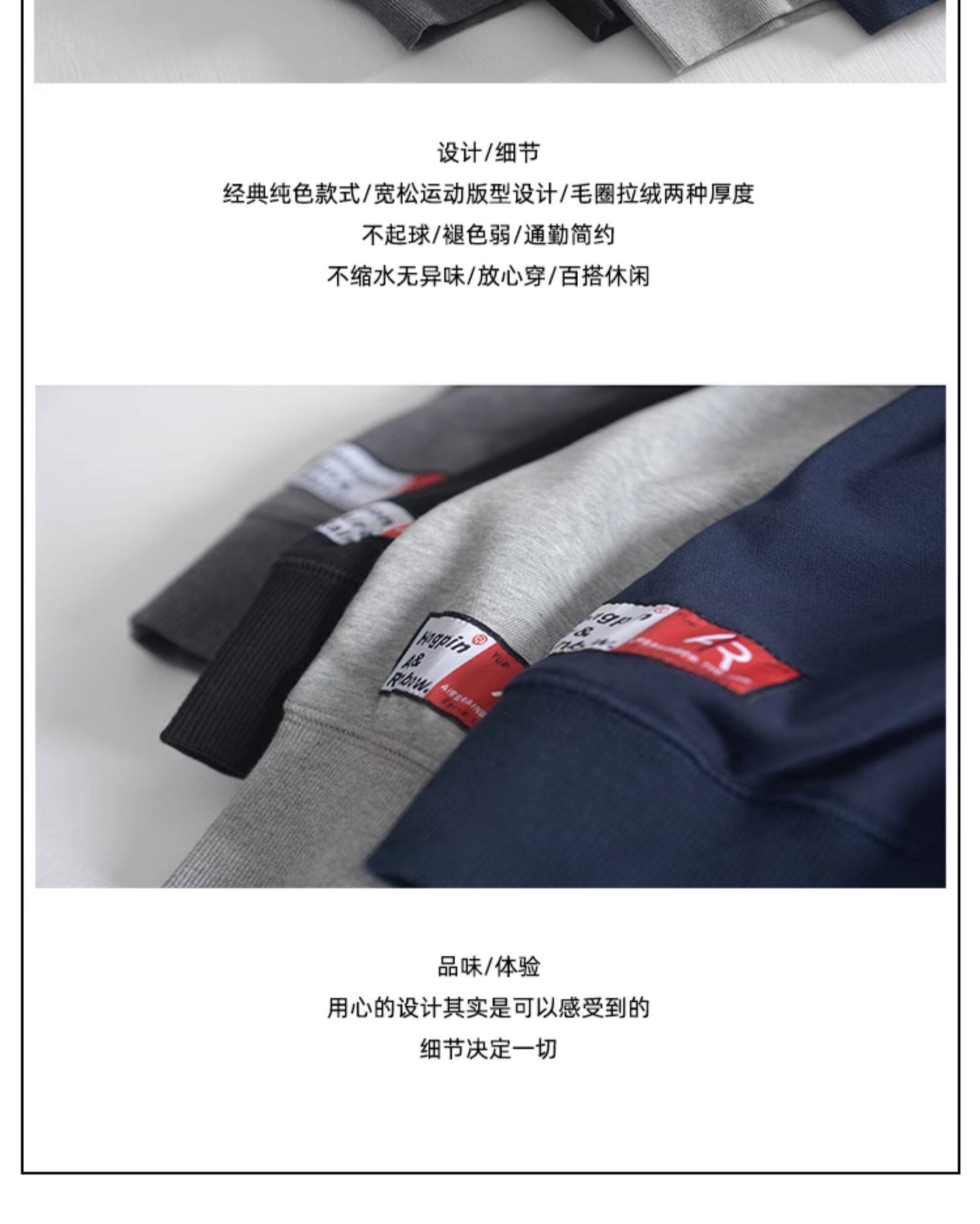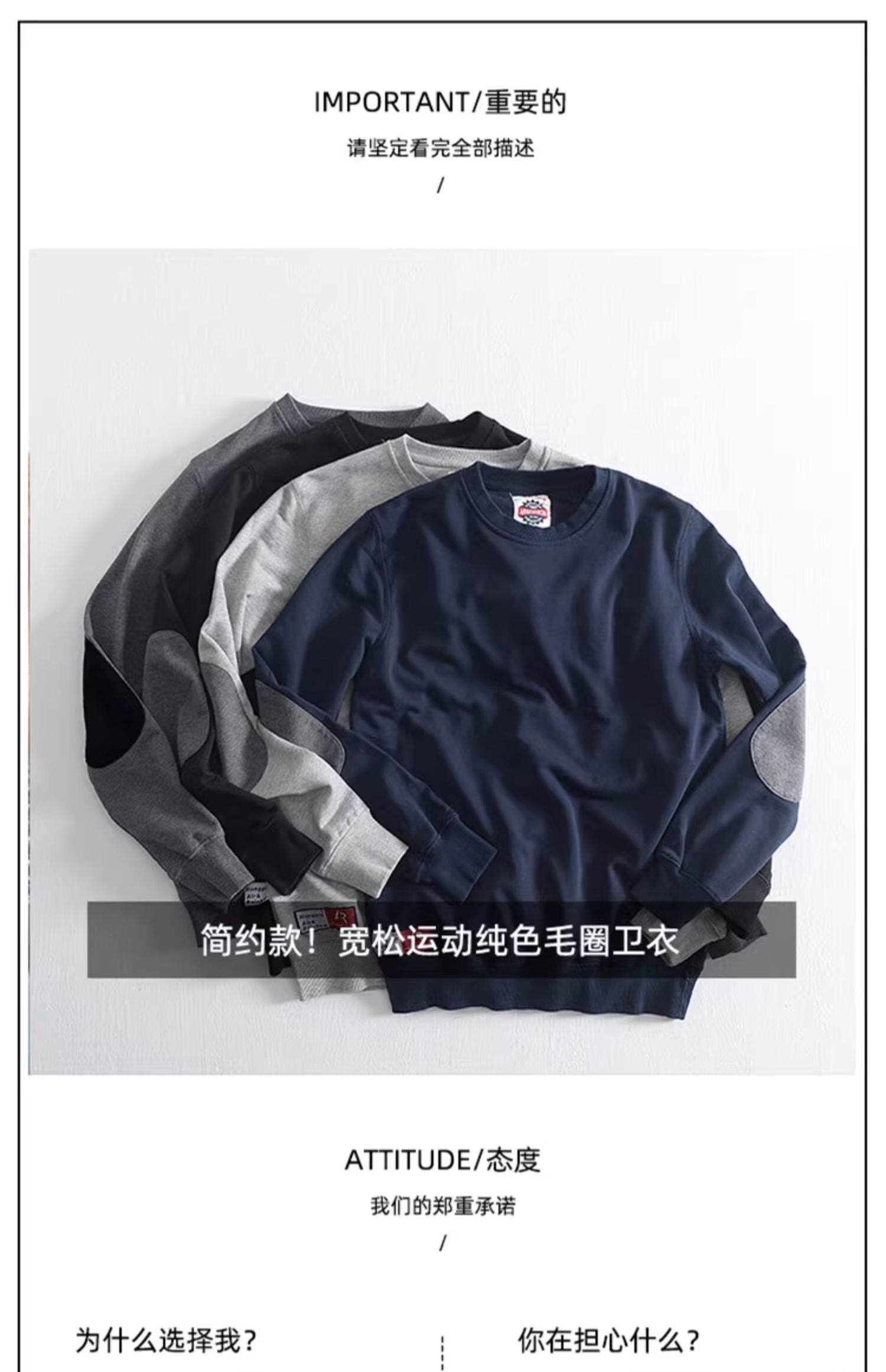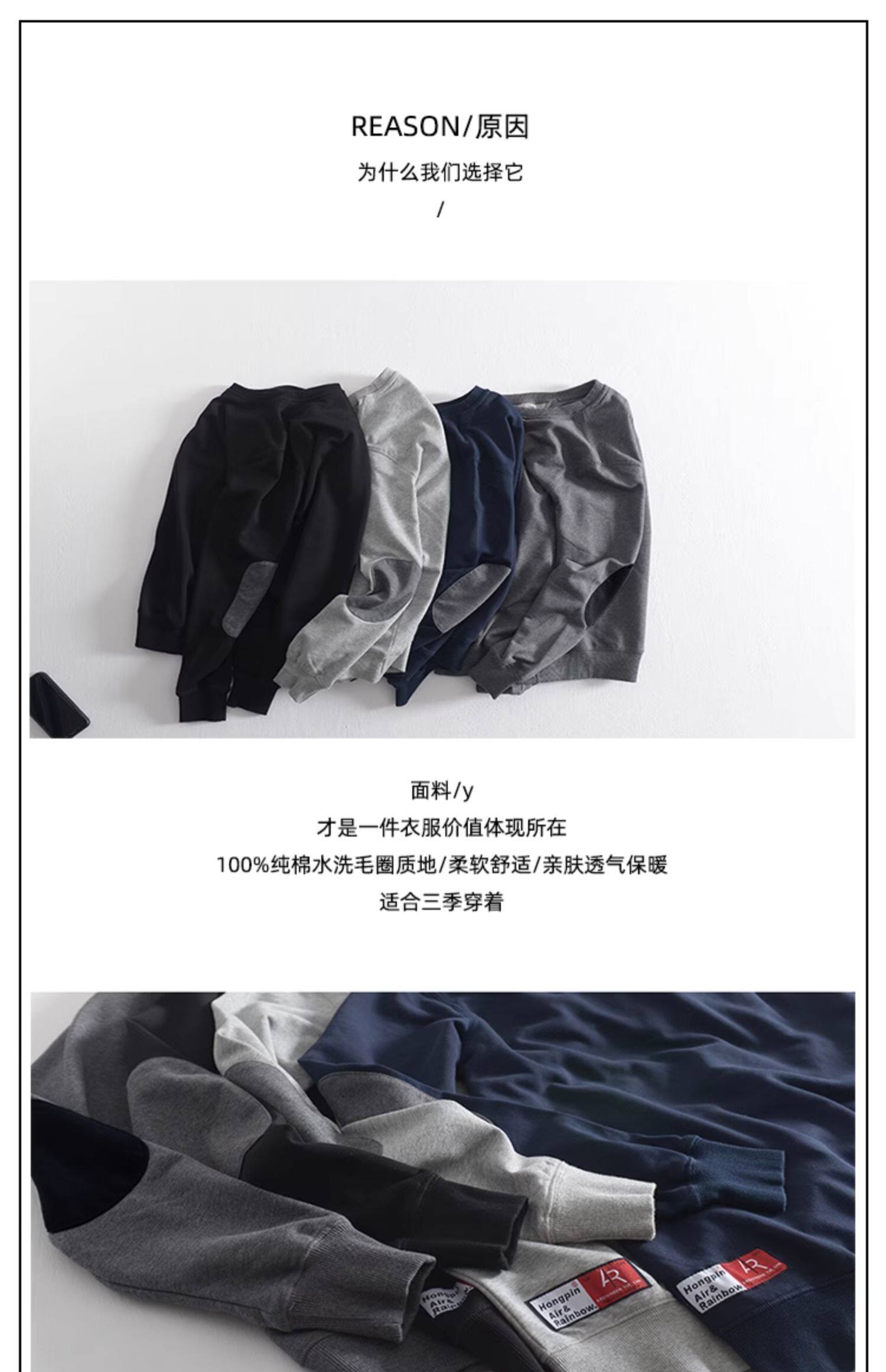 純棉圓領衛衣男寬鬆日系休閒潮流套頭百搭無帽純色長袖外套春秋季
