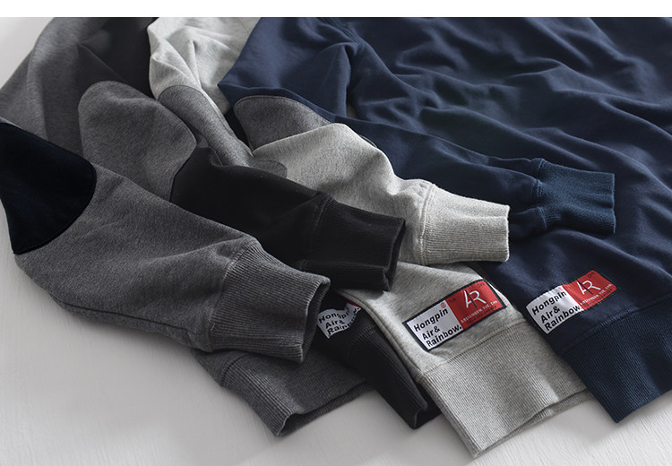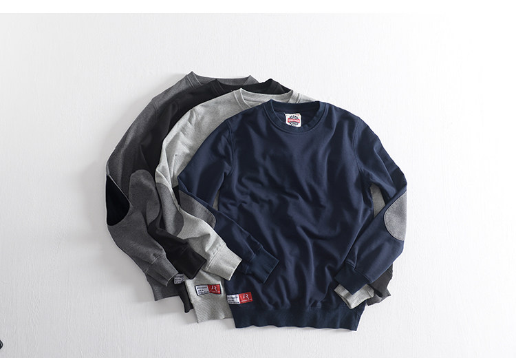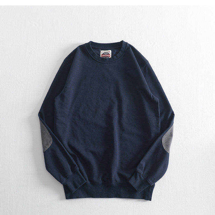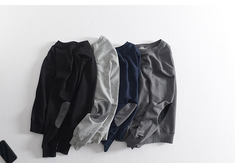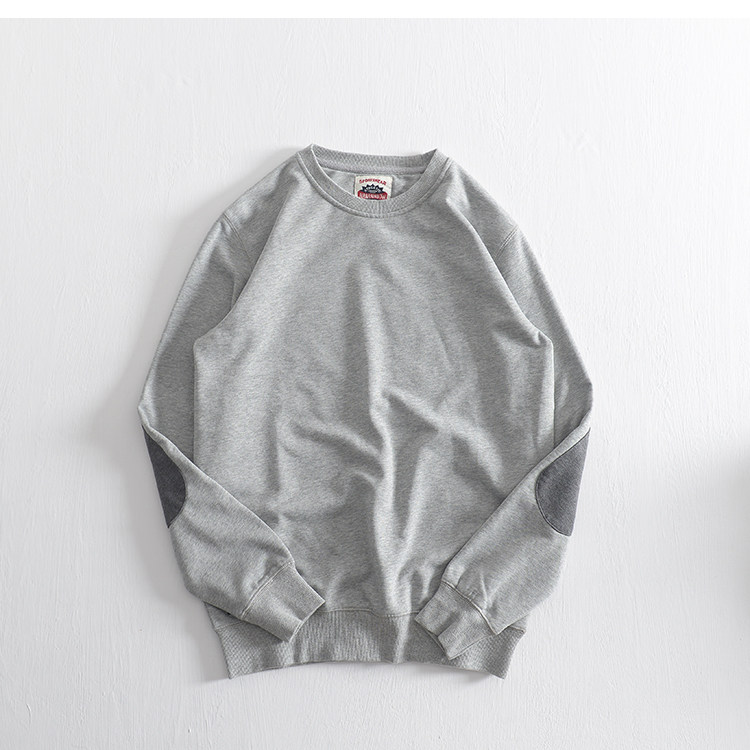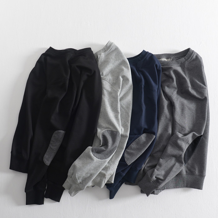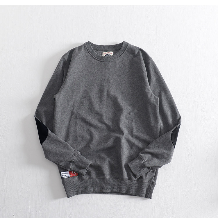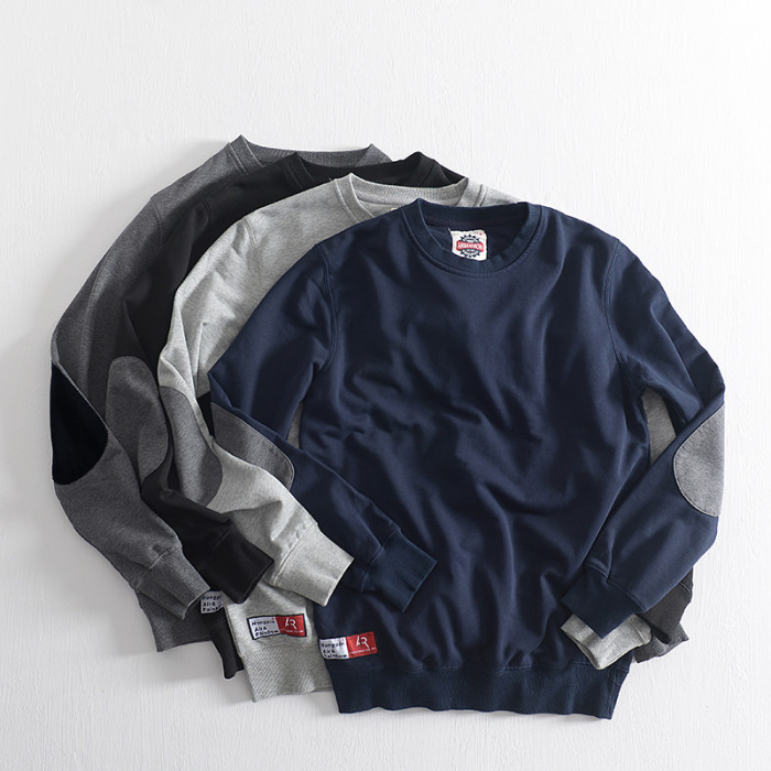 純棉圓領衛衣男寬鬆日系休閒潮流套頭百搭無帽純色長袖外套春秋季