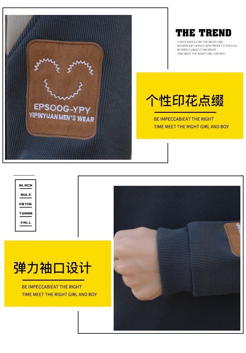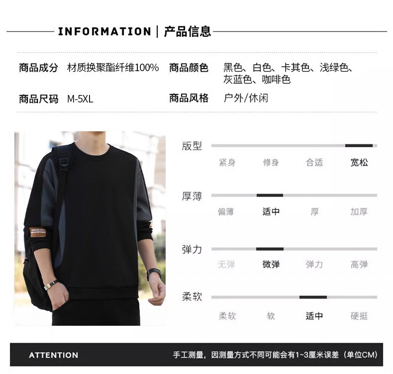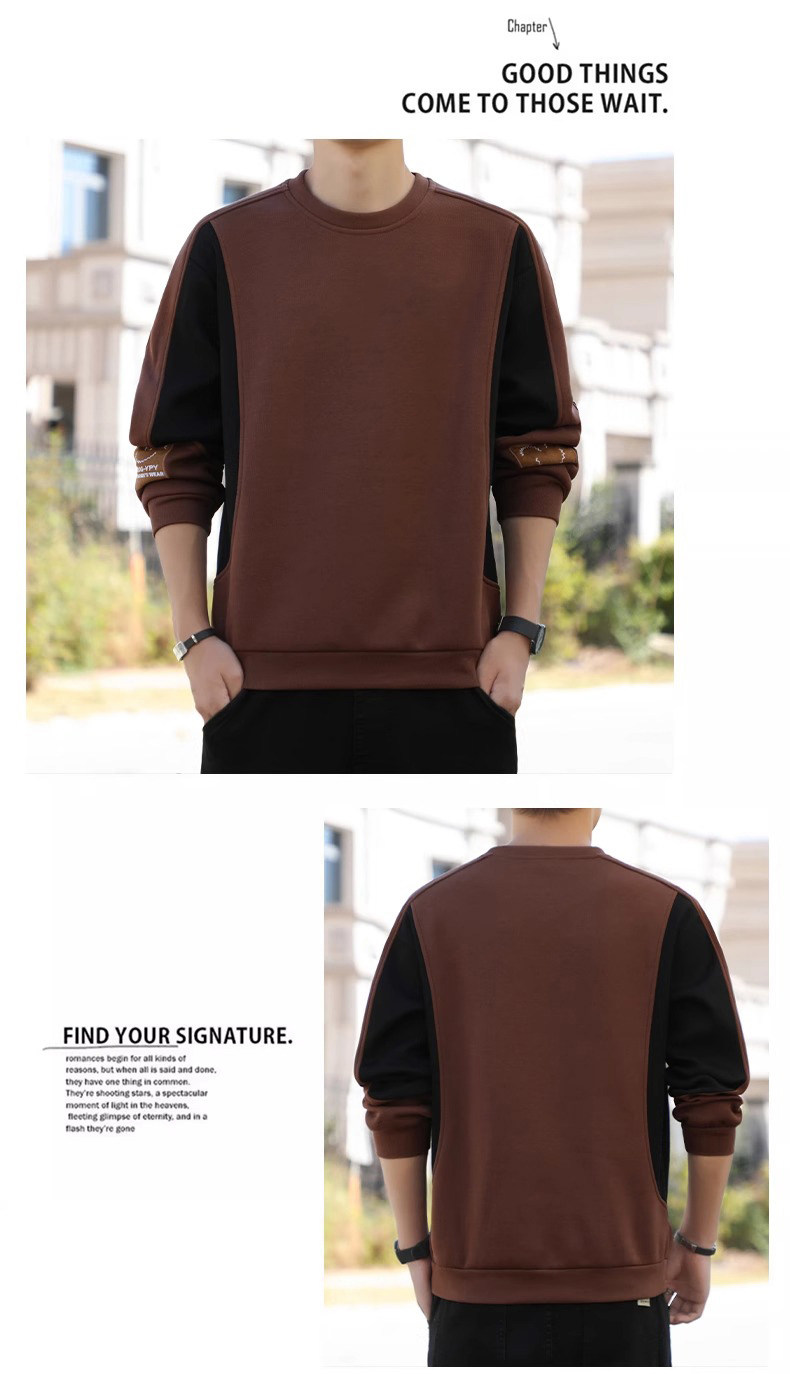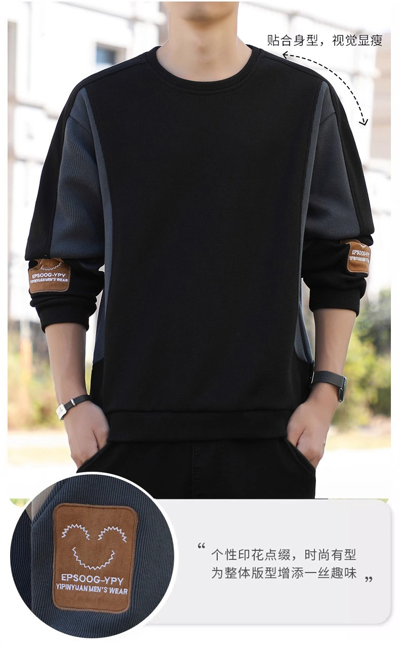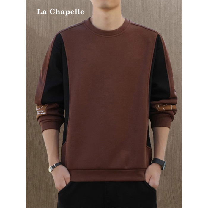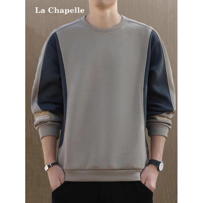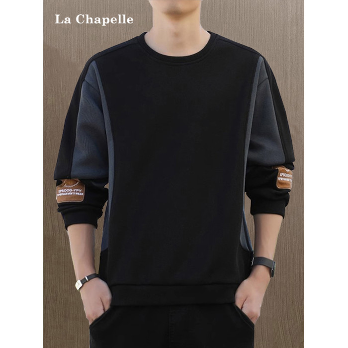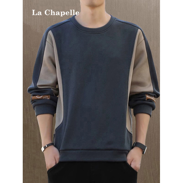 拉夏貝爾無帽衛衣男士秋冬季新款2026寬鬆加絨長袖t恤休閒上衣潮