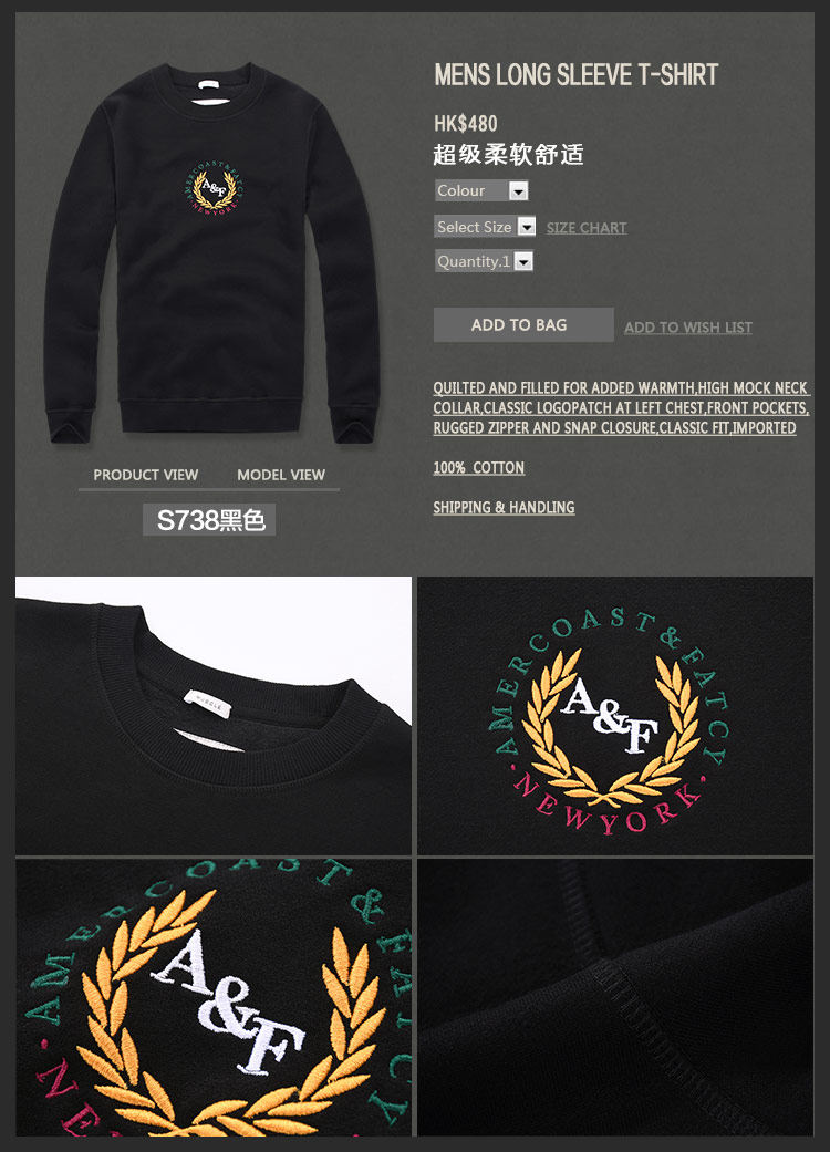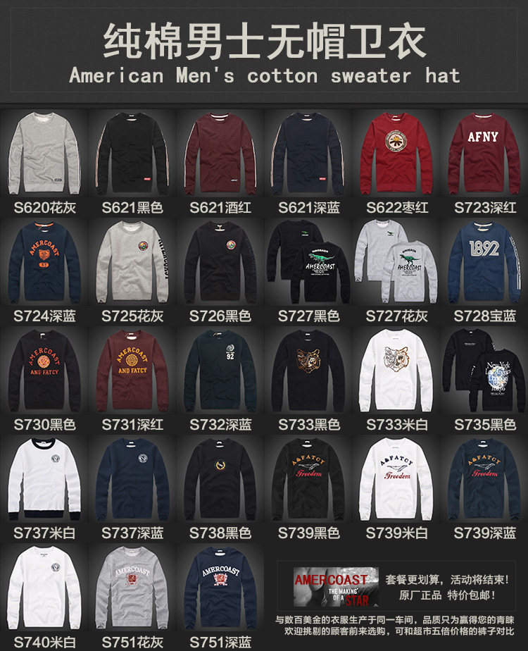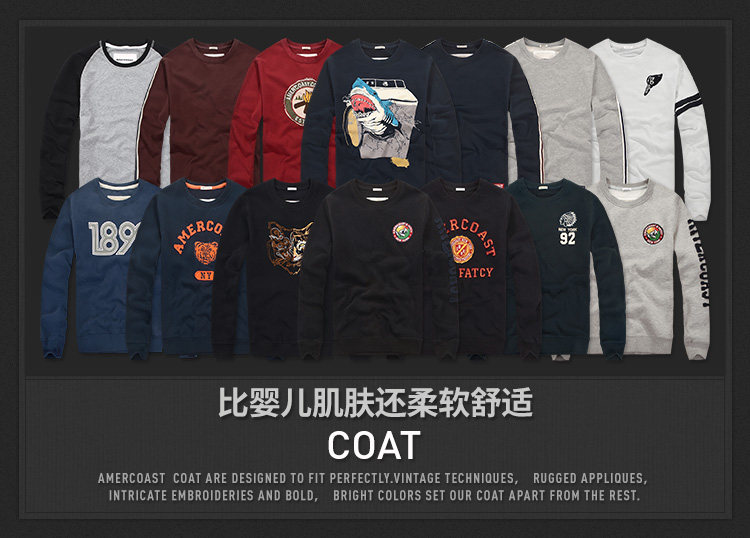 美洲海岸af衛衣男裝秋冬季寬鬆運動純棉加厚加絨圓領刺綉長袖上衣