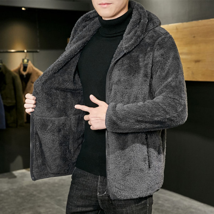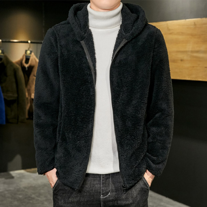 羊羔絨男大碼棉衣 加肥加大男士冬裝服 潮男連帽衫衛衣青年外套
