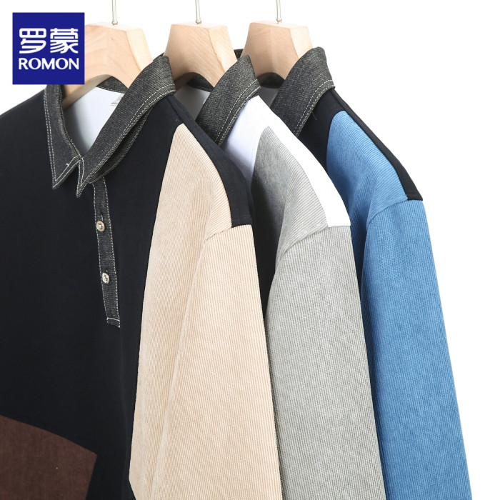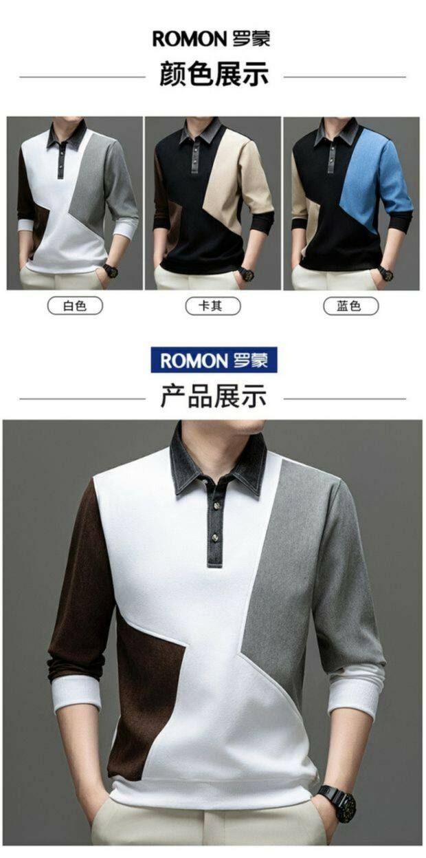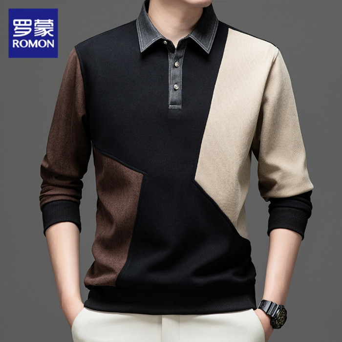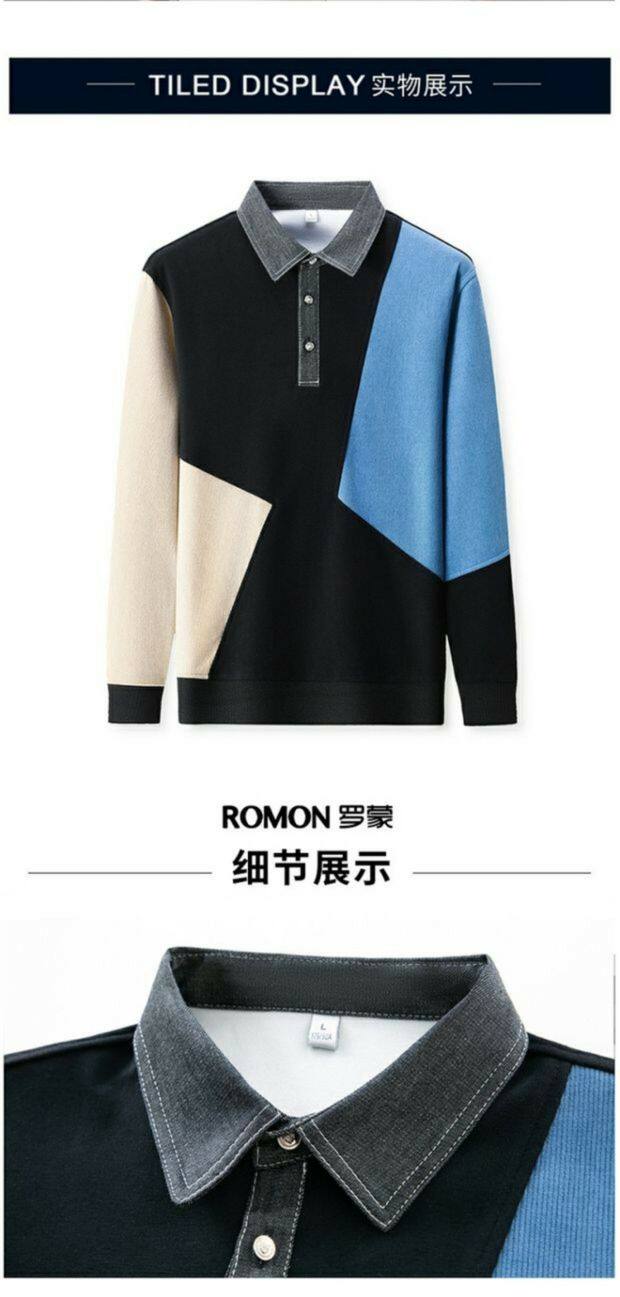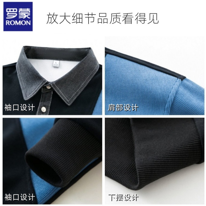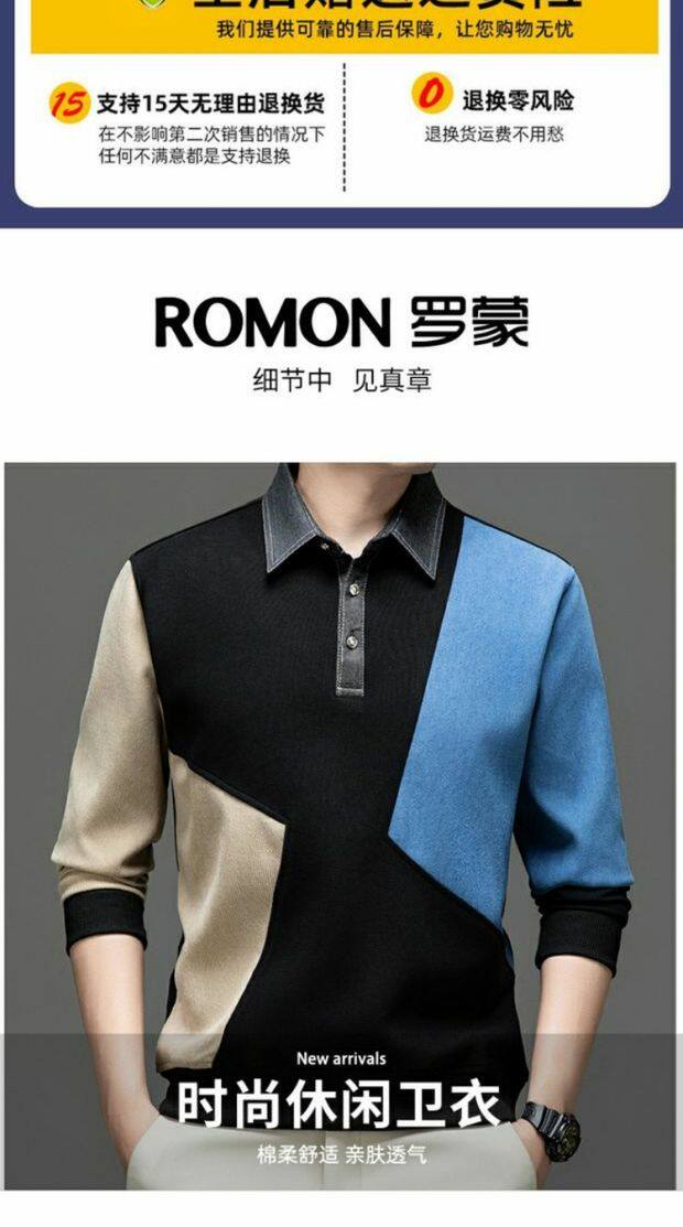 羅矇衛衣男士2025春秋季時尚潮流拼色上衣寬鬆休閒繙領長袖t恤男