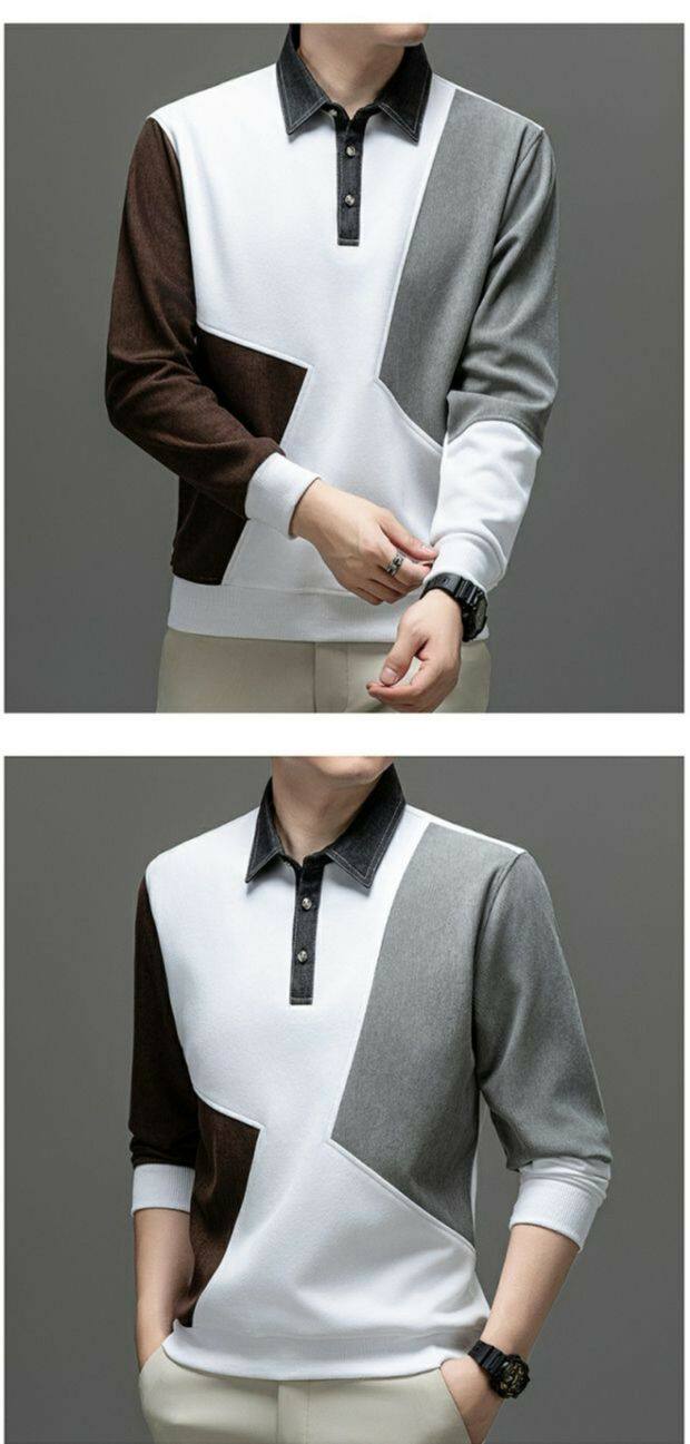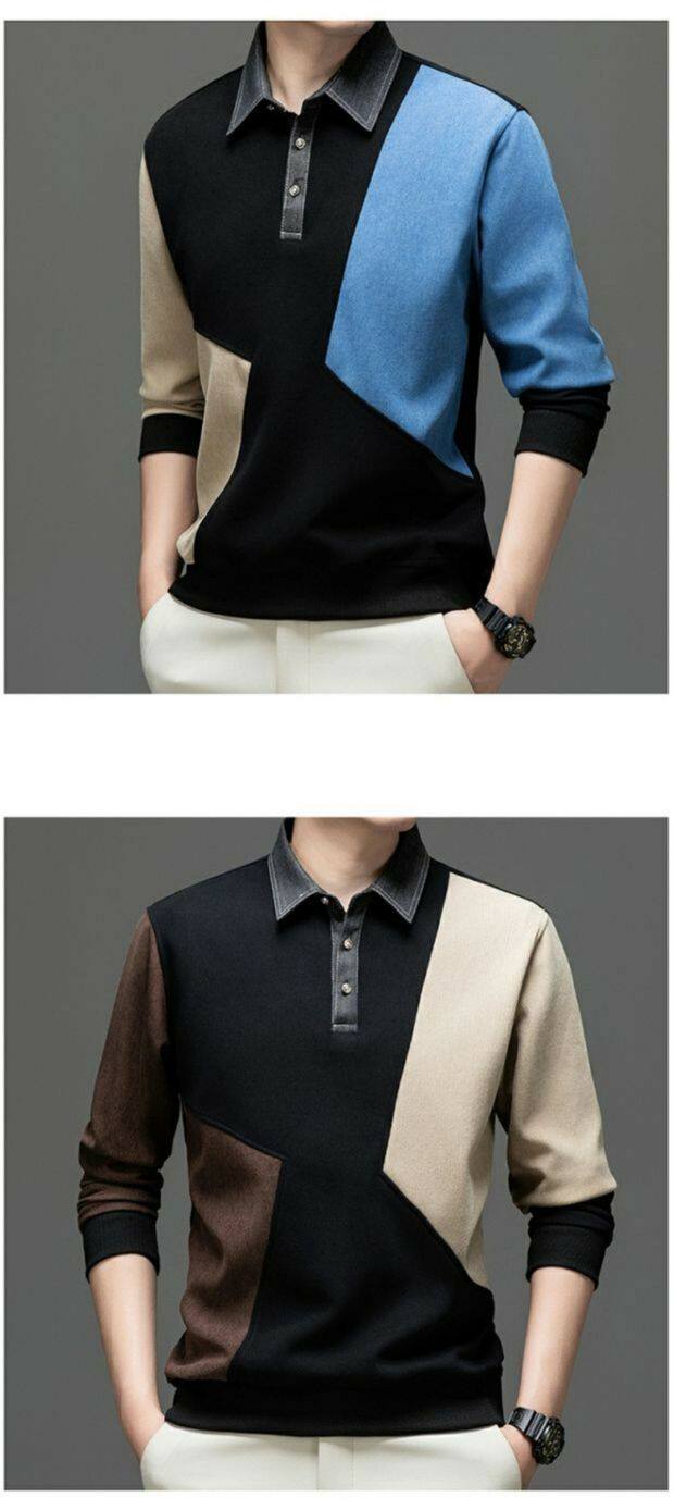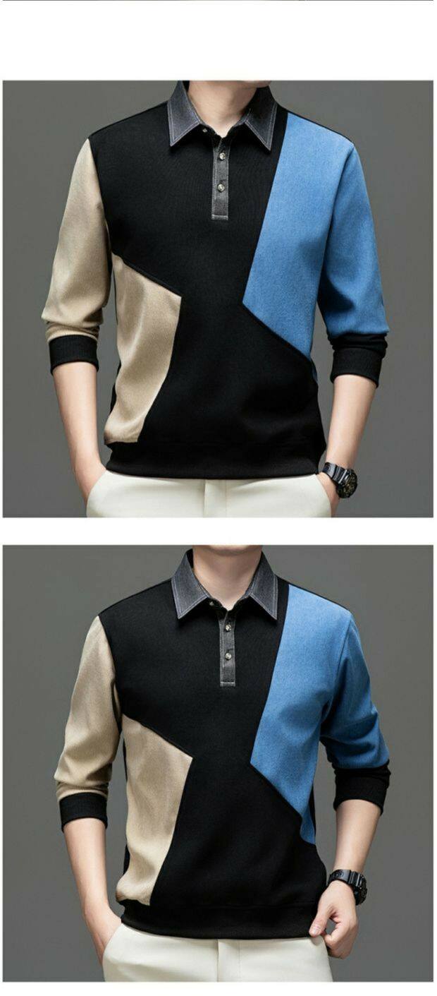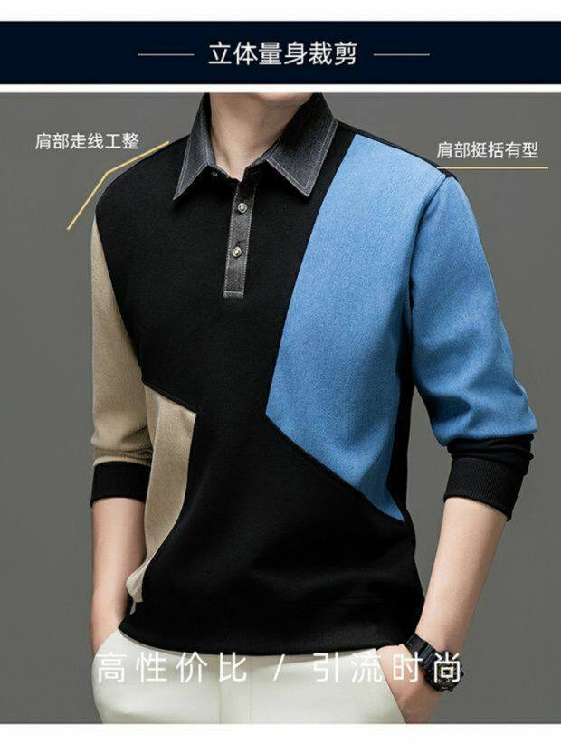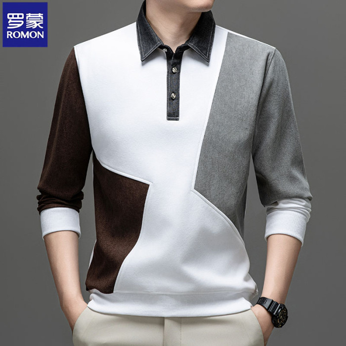 羅矇衛衣男士2025春秋季時尚潮流拼色上衣寬鬆休閒繙領長袖t恤男