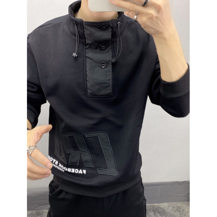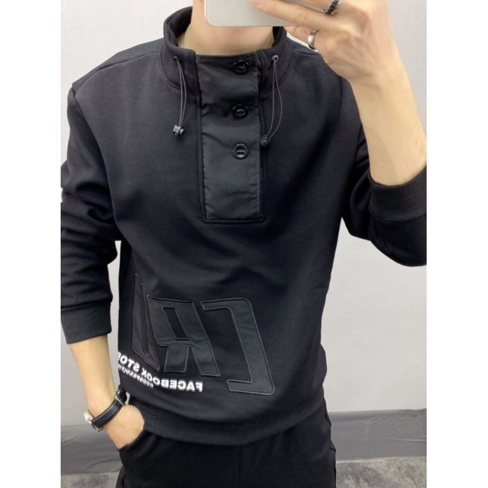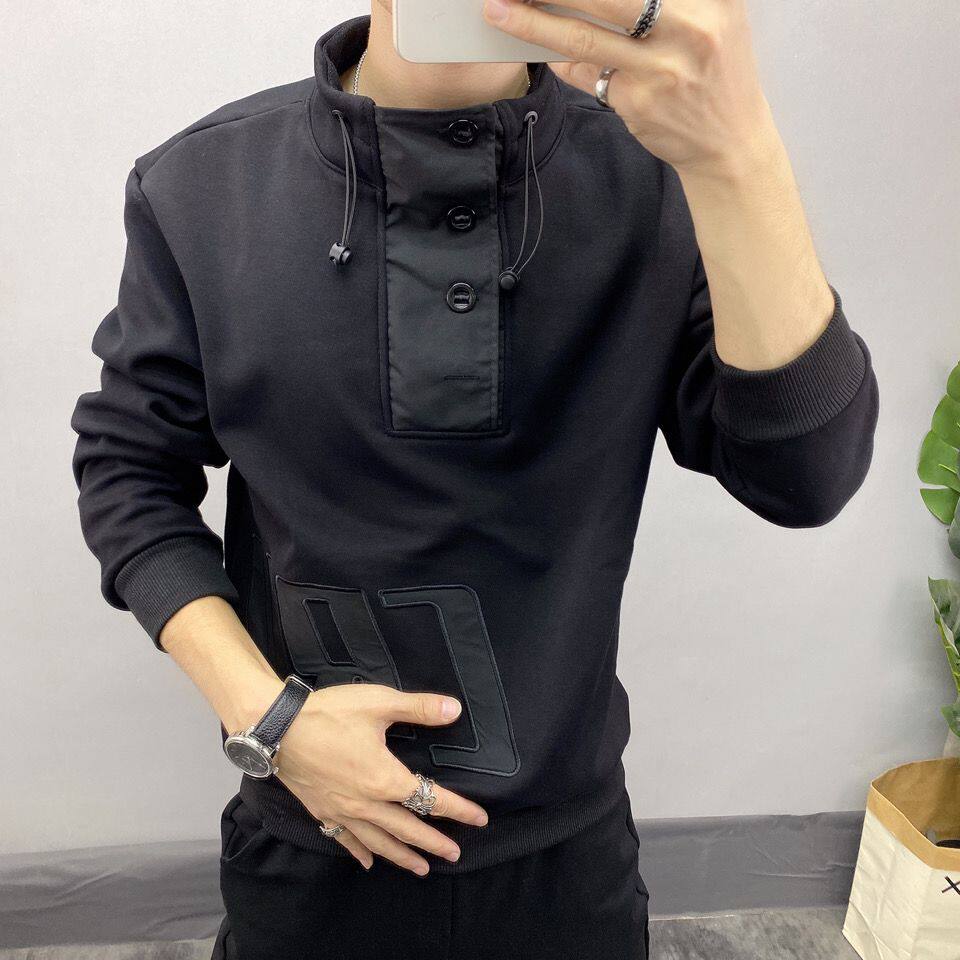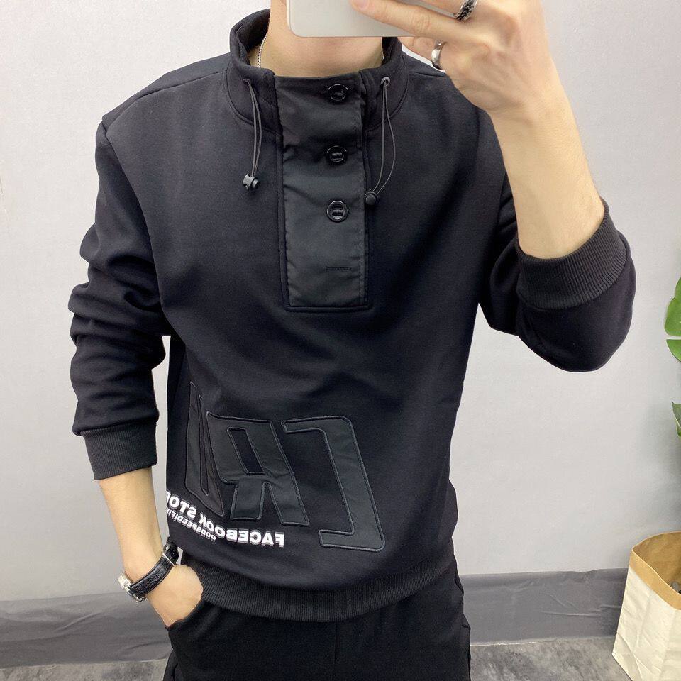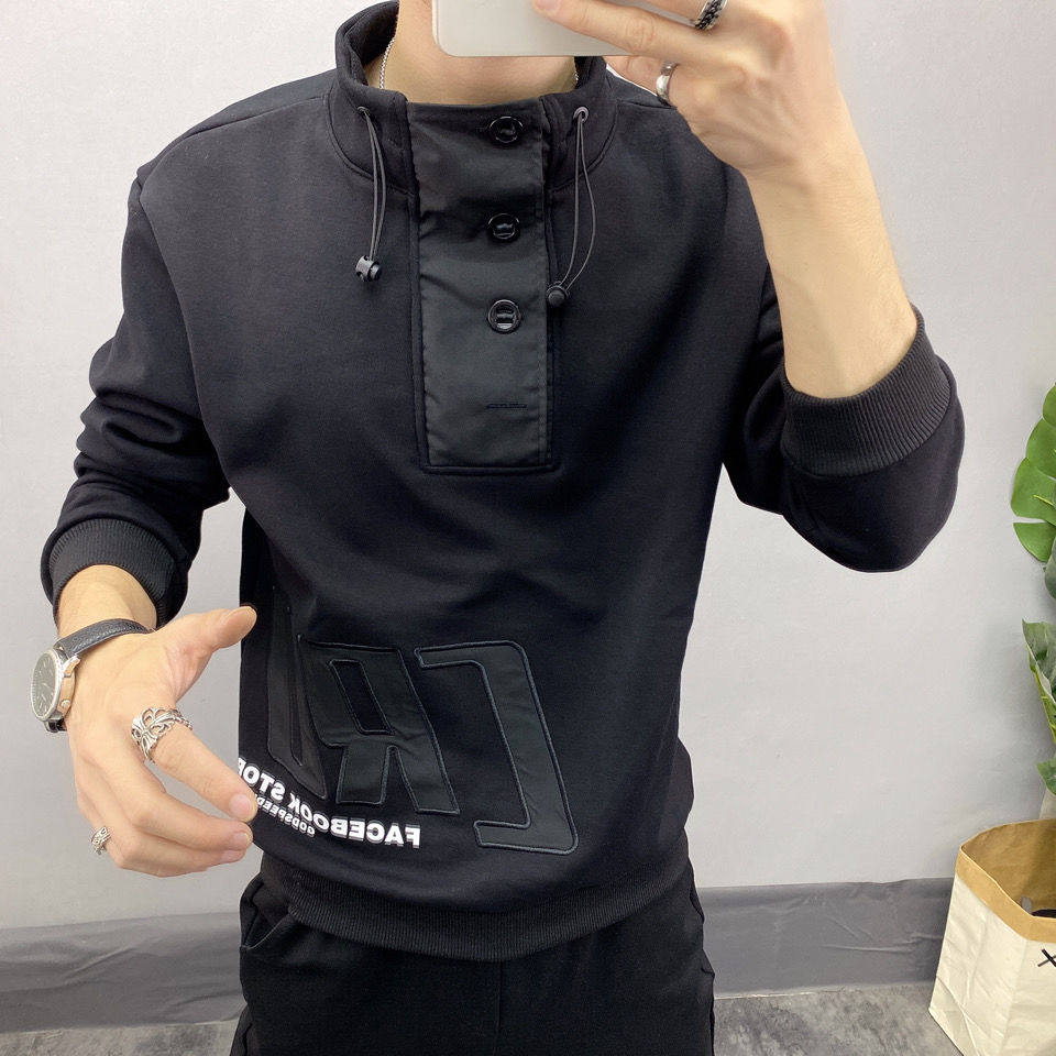 秋季2023年新款衛衣男長袖套頭衫潮流精神小夥秋衣半高領薄款外套