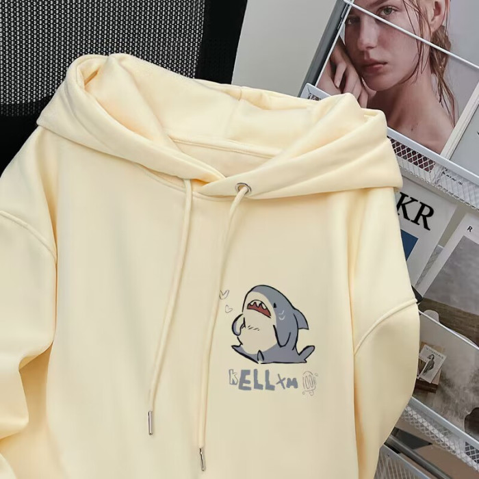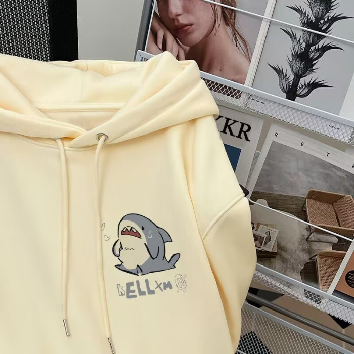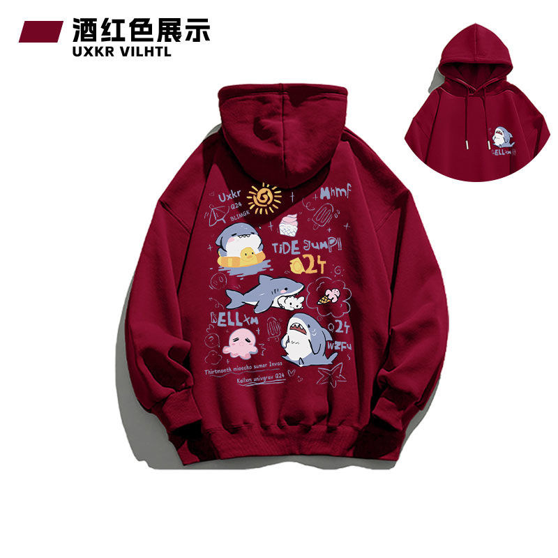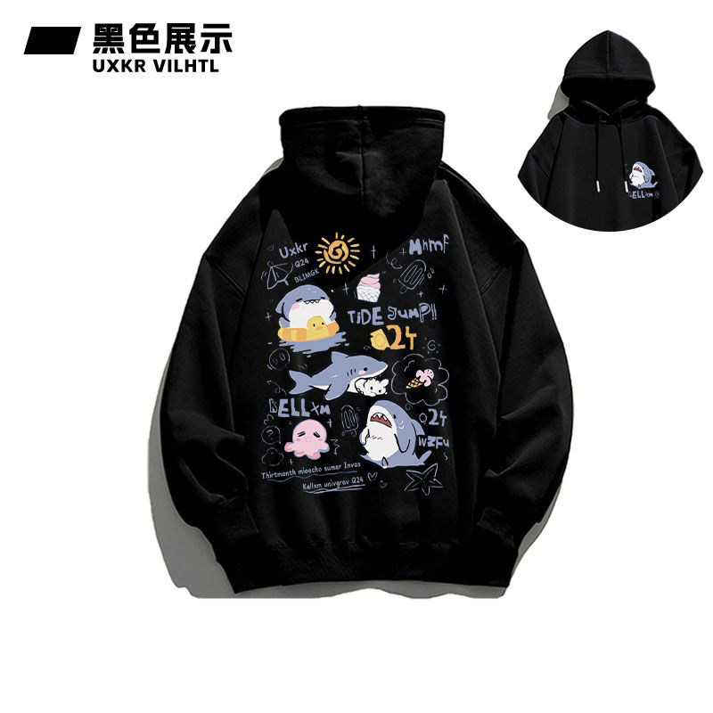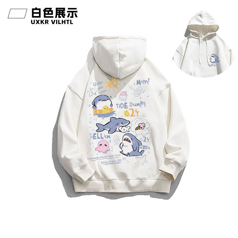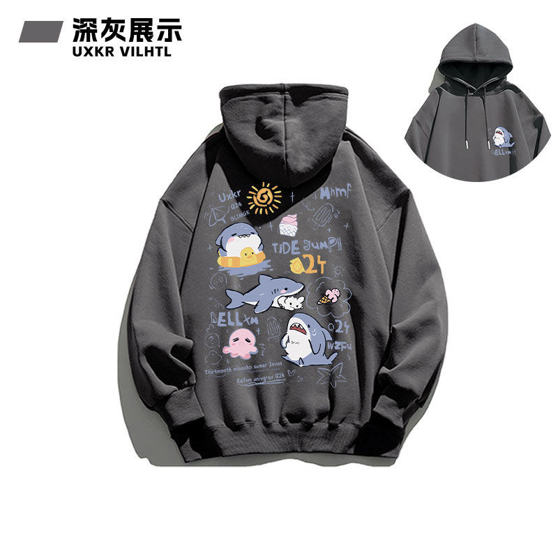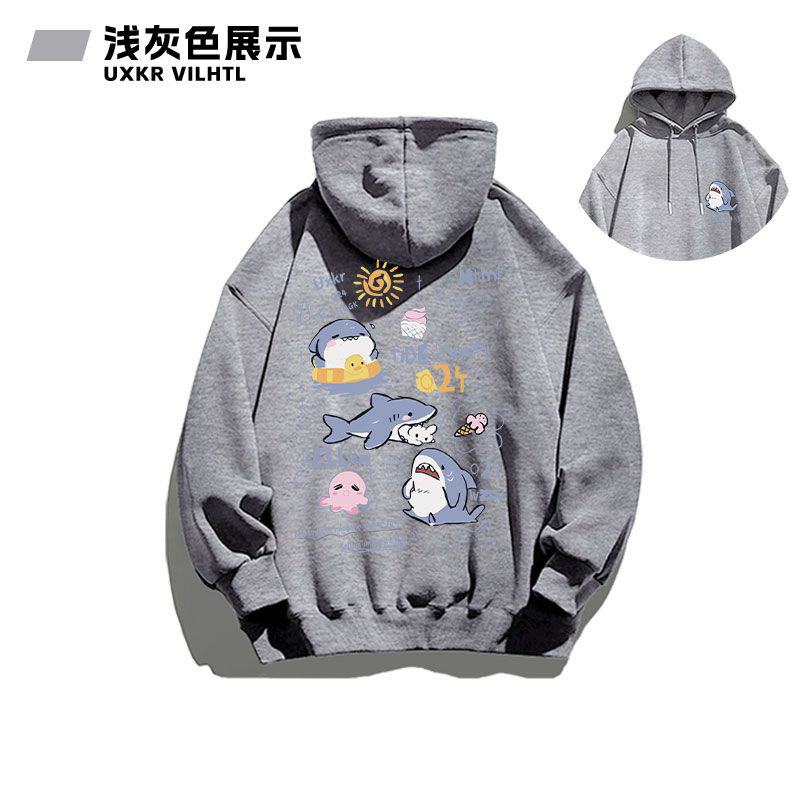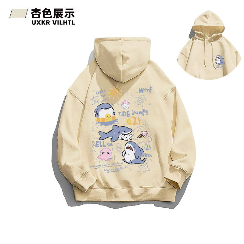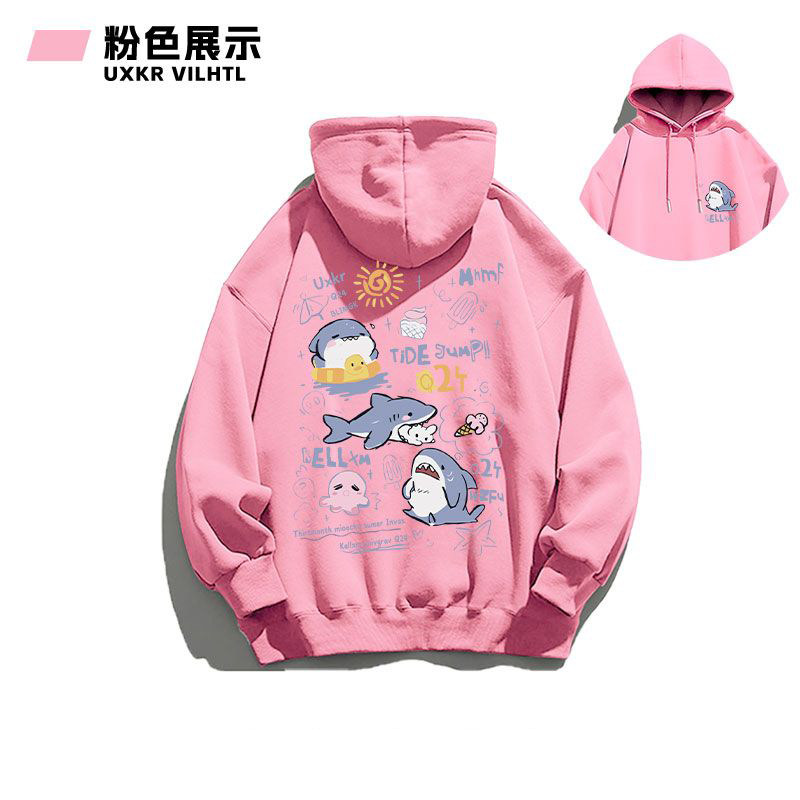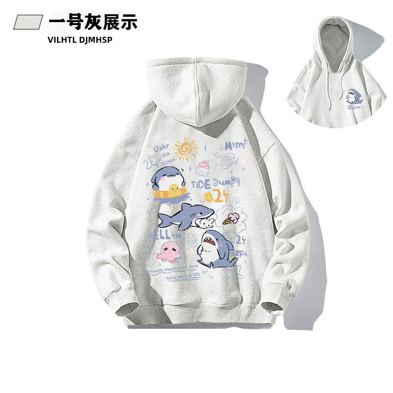 銀狐絨韓系可愛鯊魚印花連帽衛衣男女秋冬季ins休閒洋氣寬鬆外套