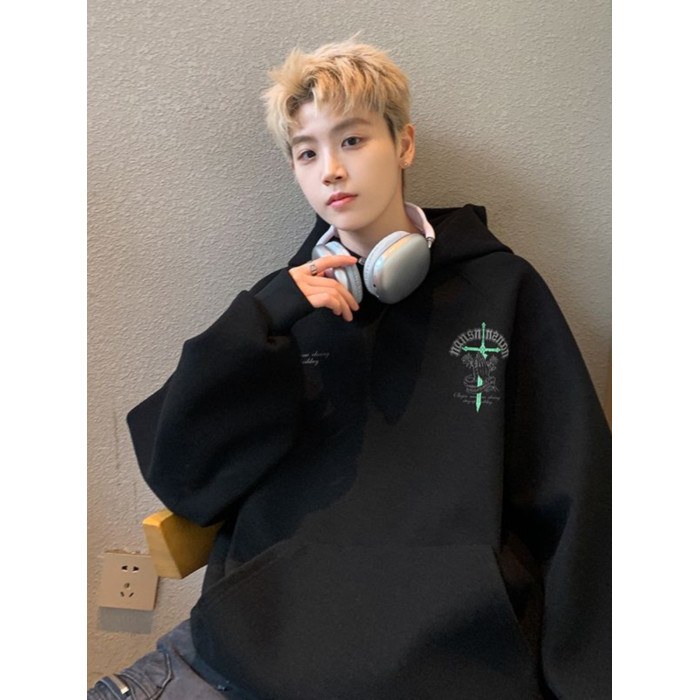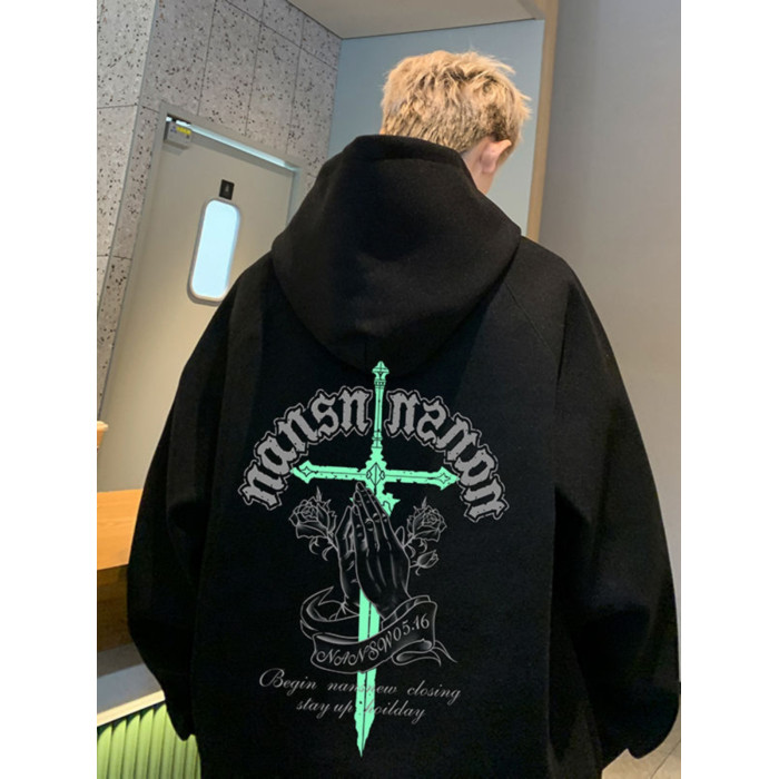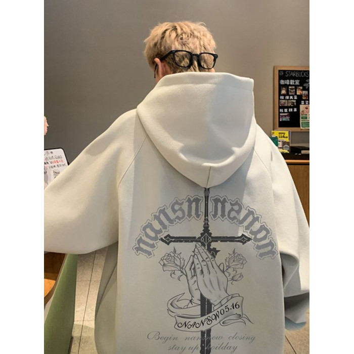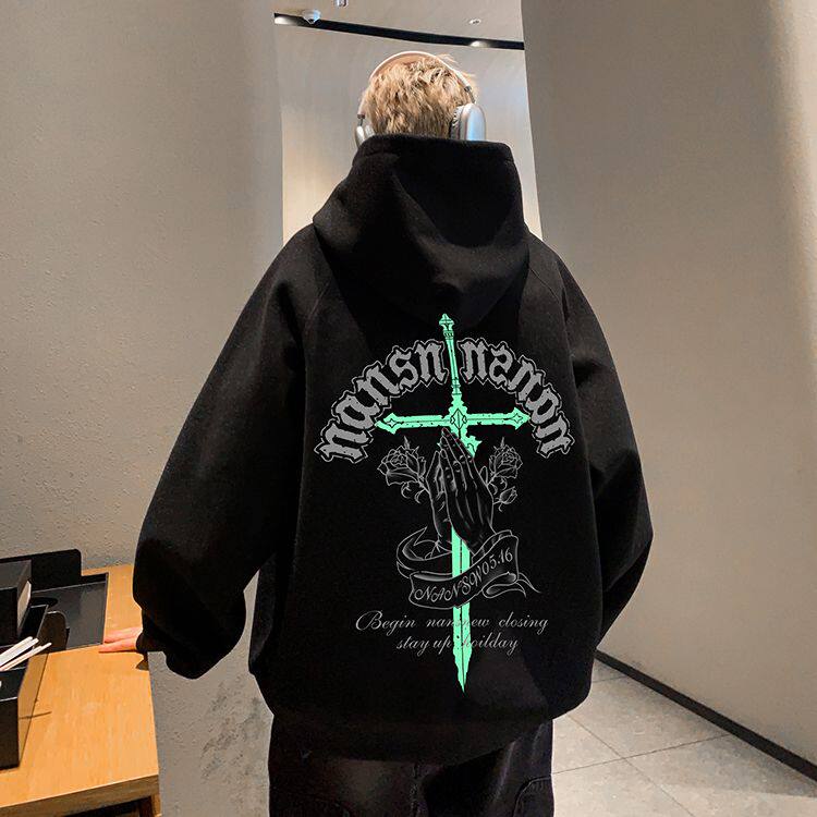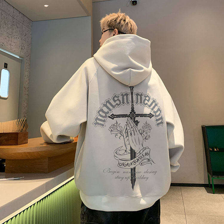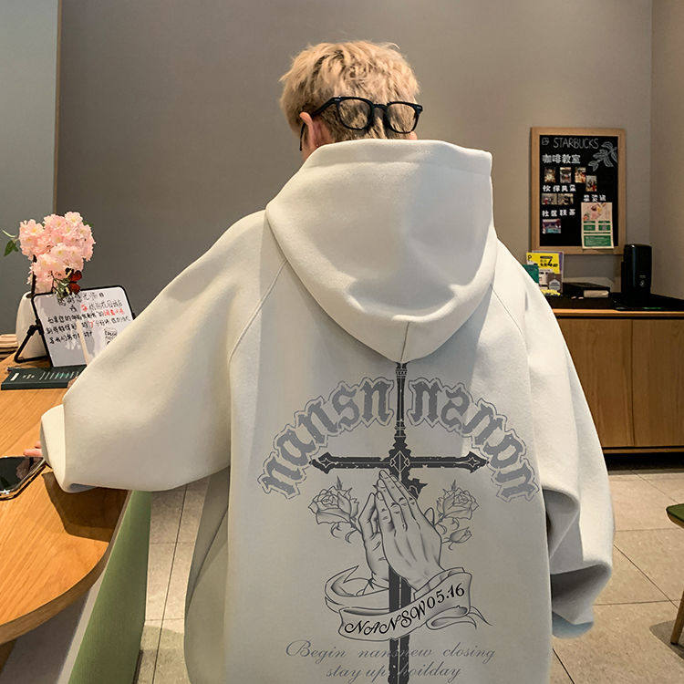 300斤大碼山東即墨連帽情侶衛衣男女秋季美式潮牌痞帥十字架外套