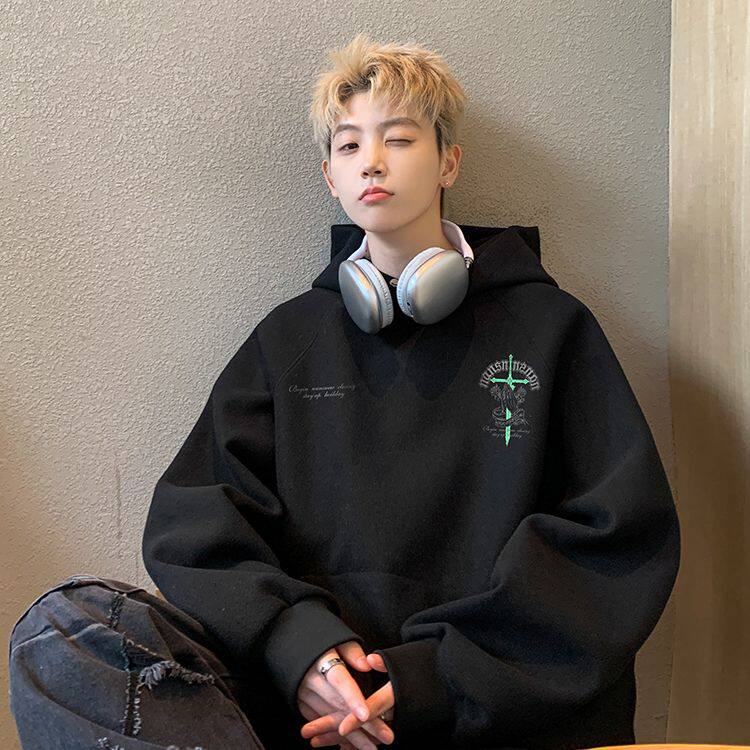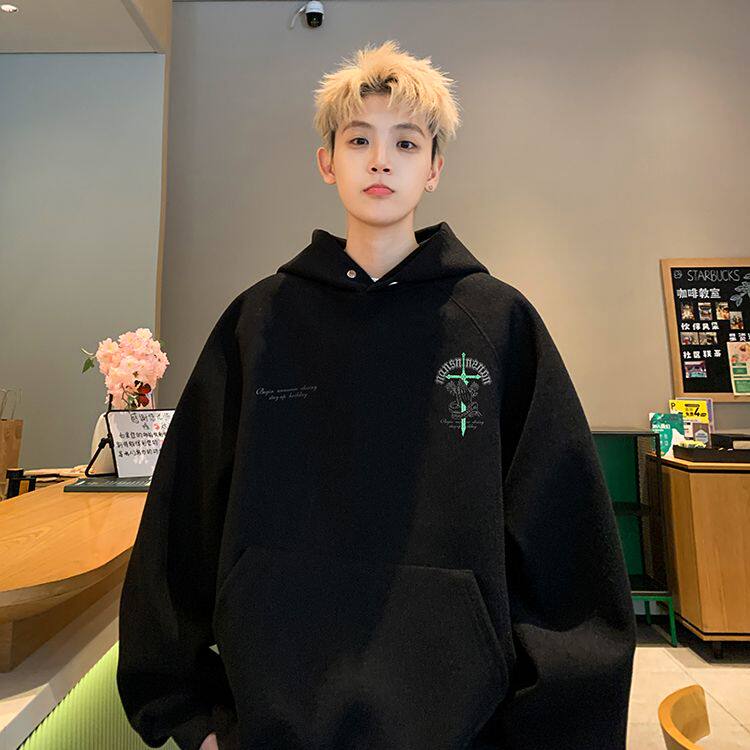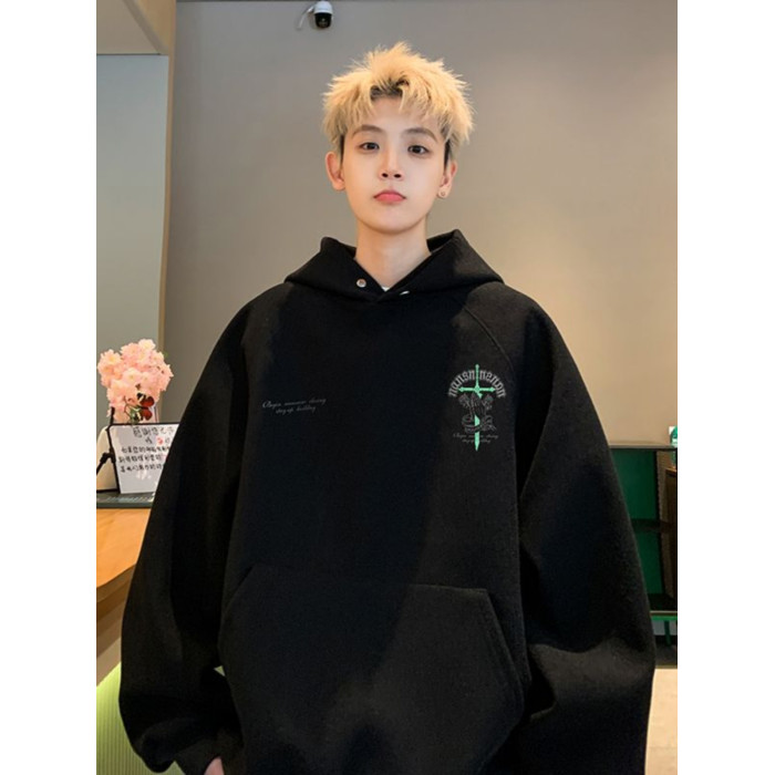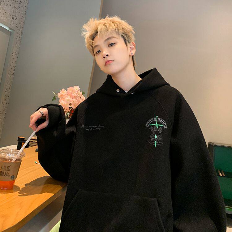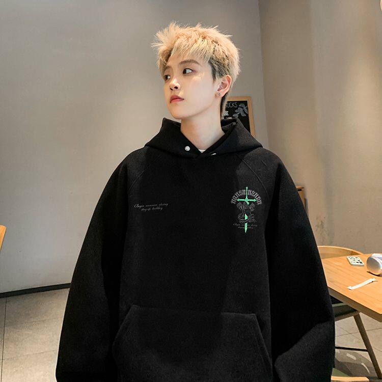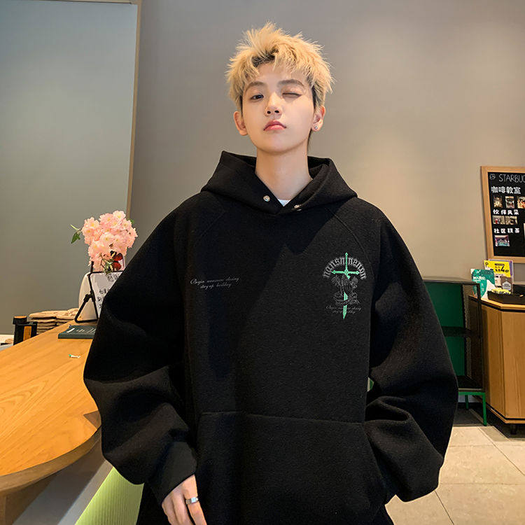 300斤大碼山東即墨連帽情侶衛衣男女秋季美式潮牌痞帥十字架外套