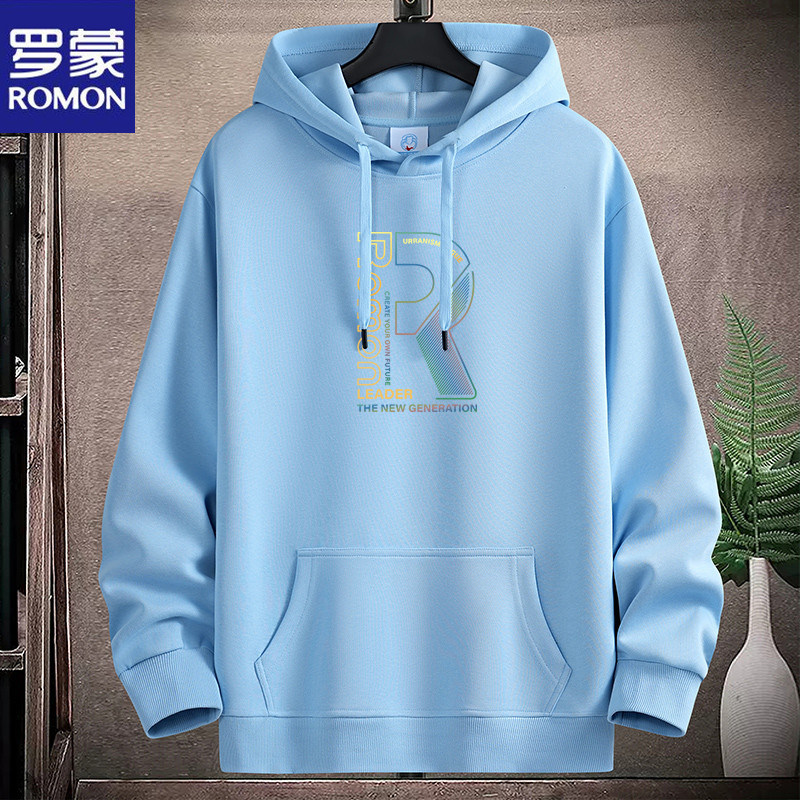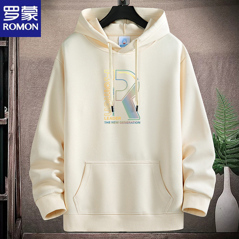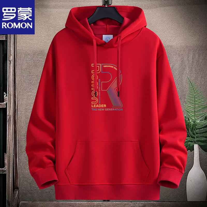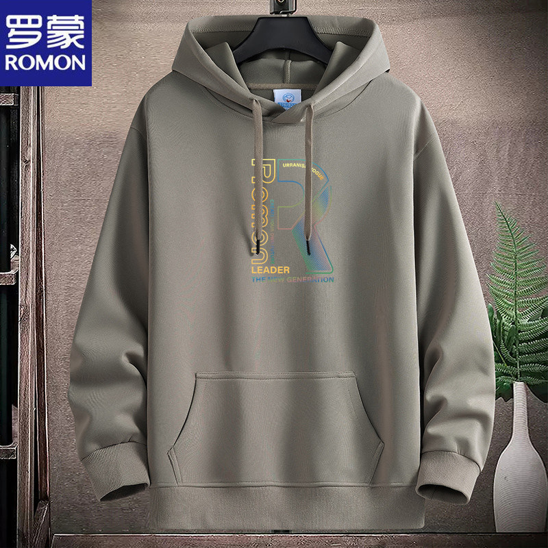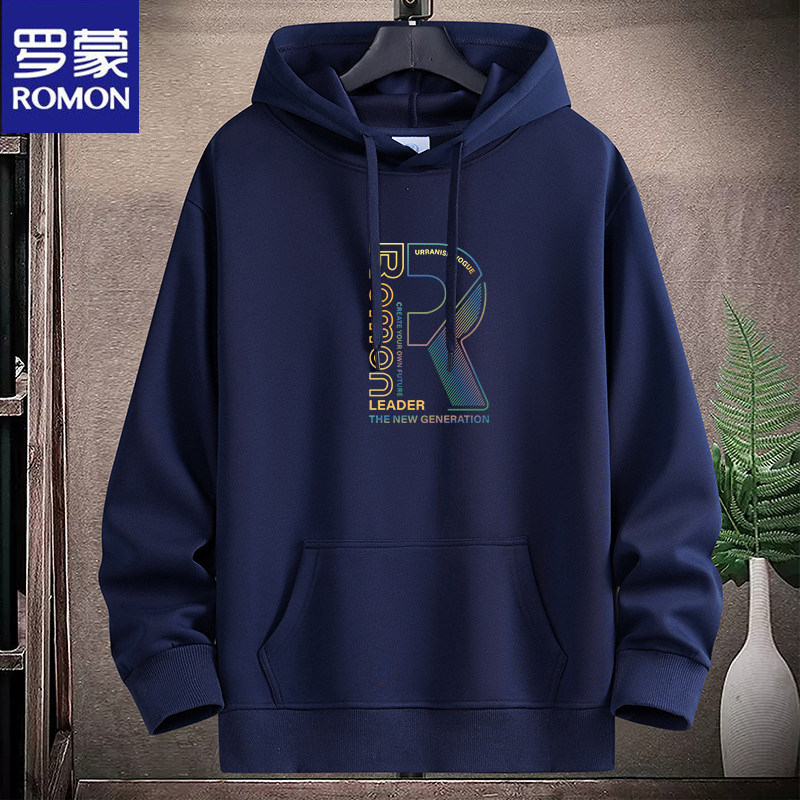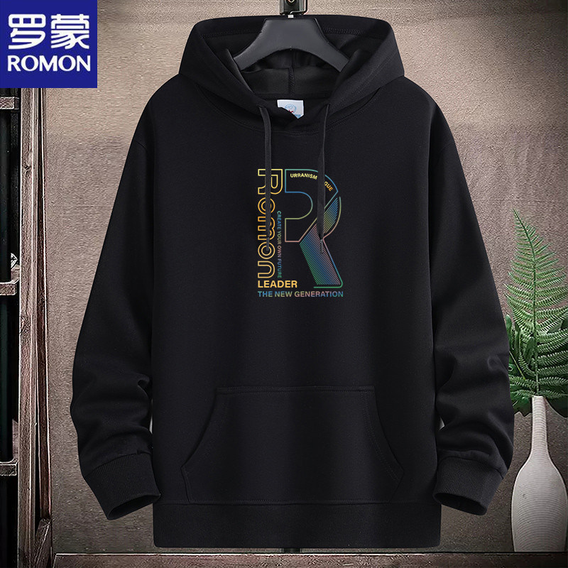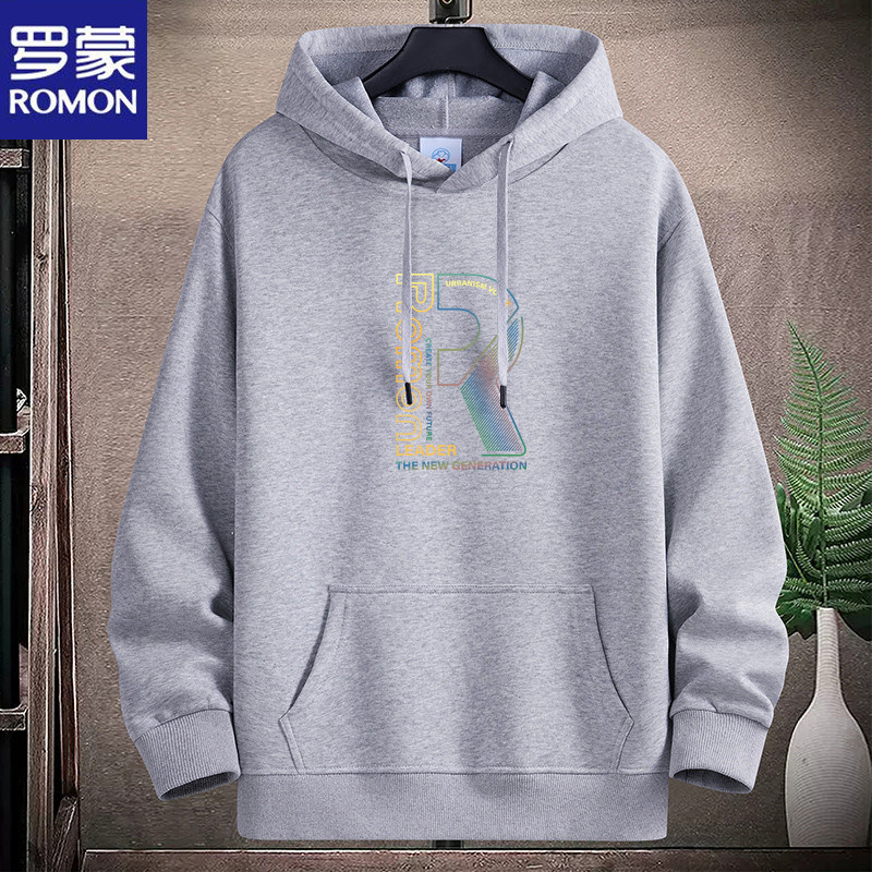 新款羅矇連帽棉衛衣男薄重磅運動休閒時尚青年加絨厚大碼學生帽衫