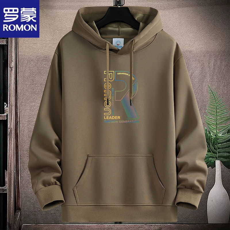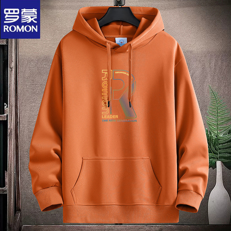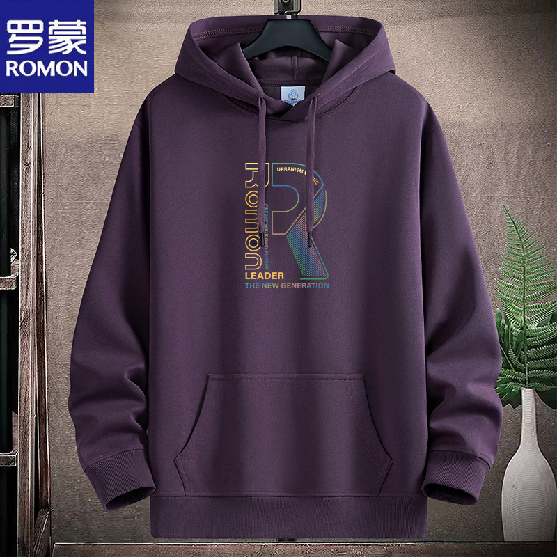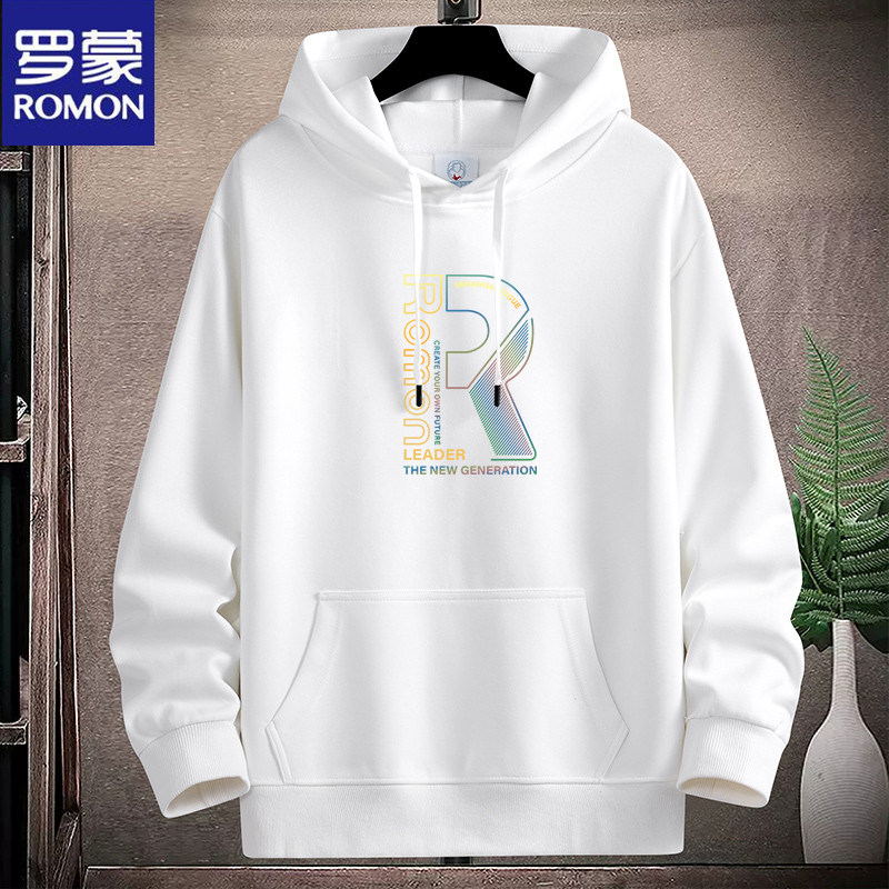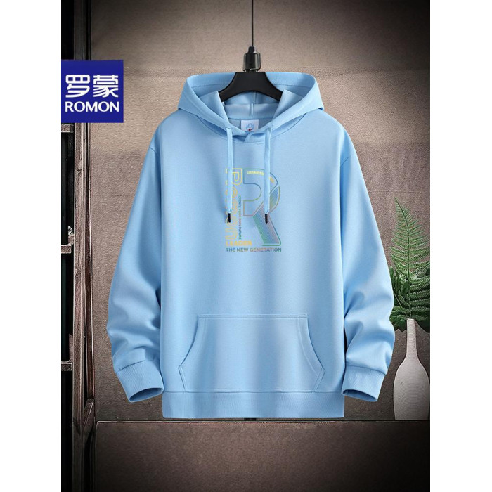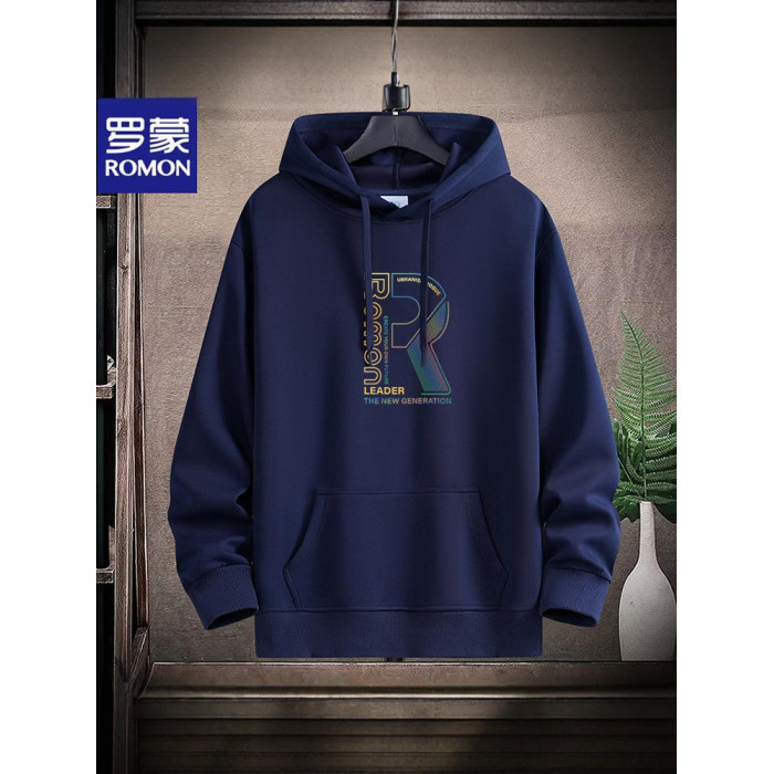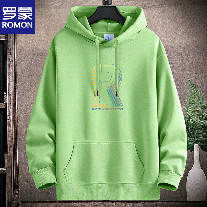 新款羅矇連帽棉衛衣男薄重磅運動休閒時尚青年加絨厚大碼學生帽衫