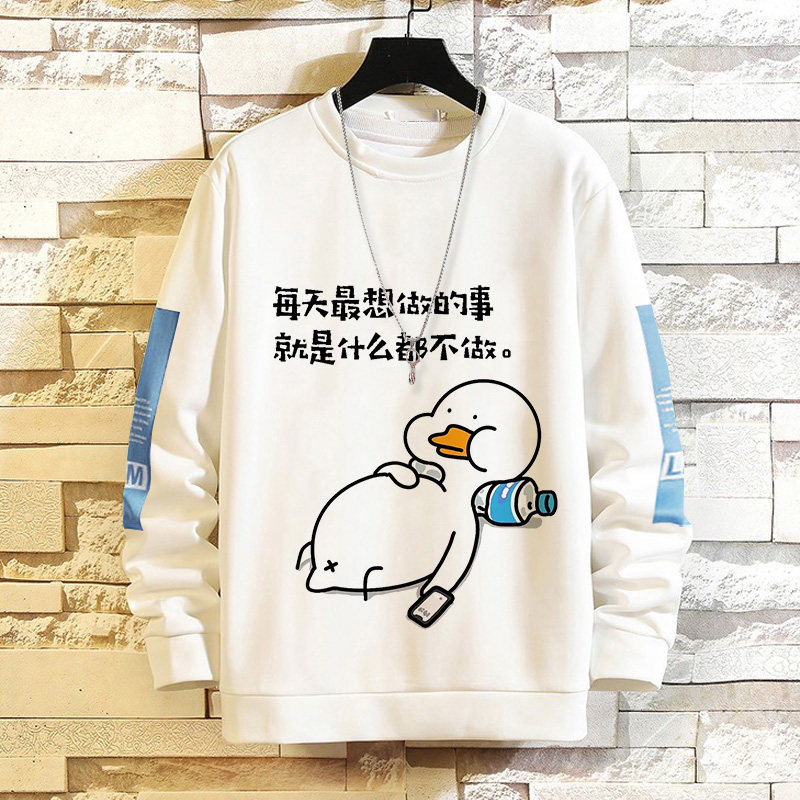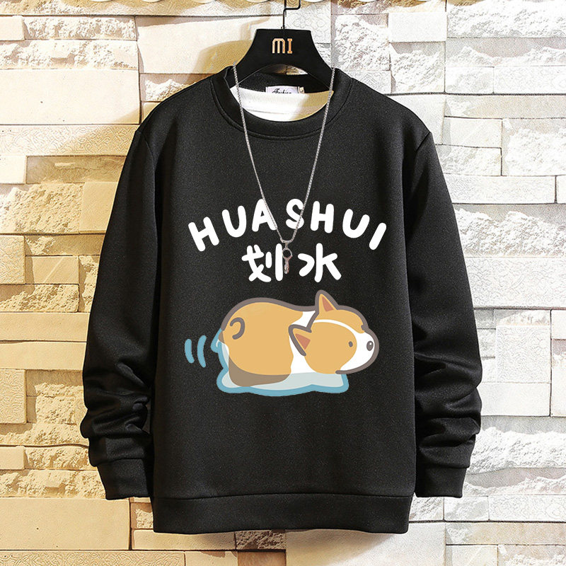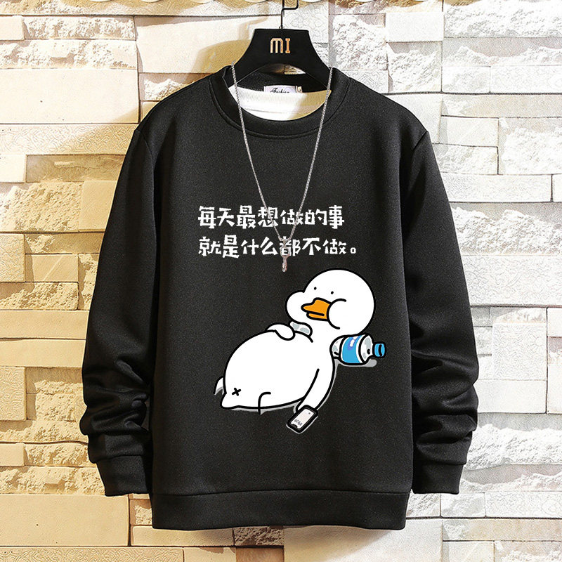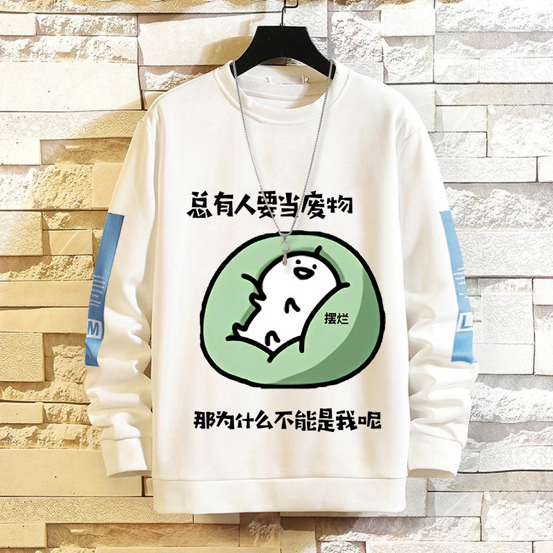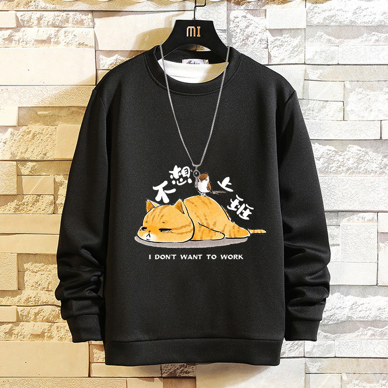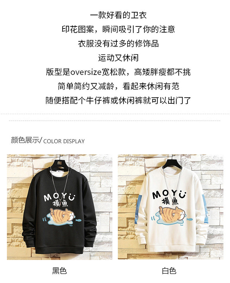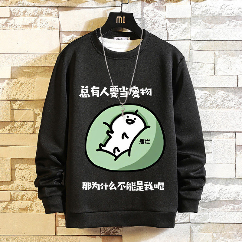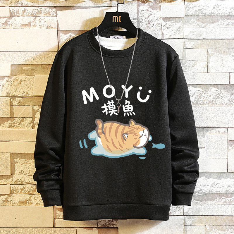 摸魚劃水衛衣男加絨寬鬆男潮牌秋冬可愛衣服套頭長袖t恤潮流休閒
