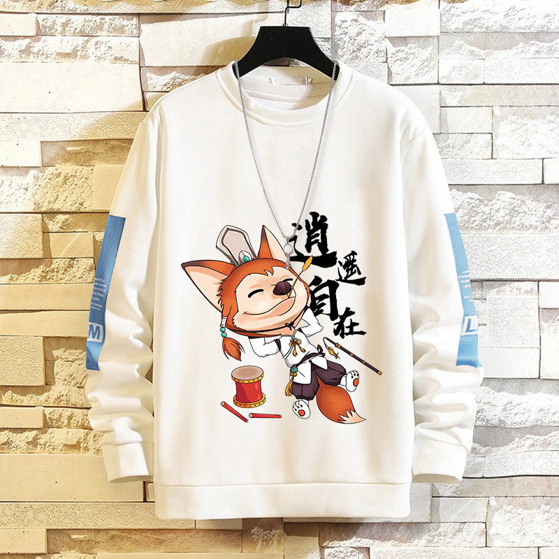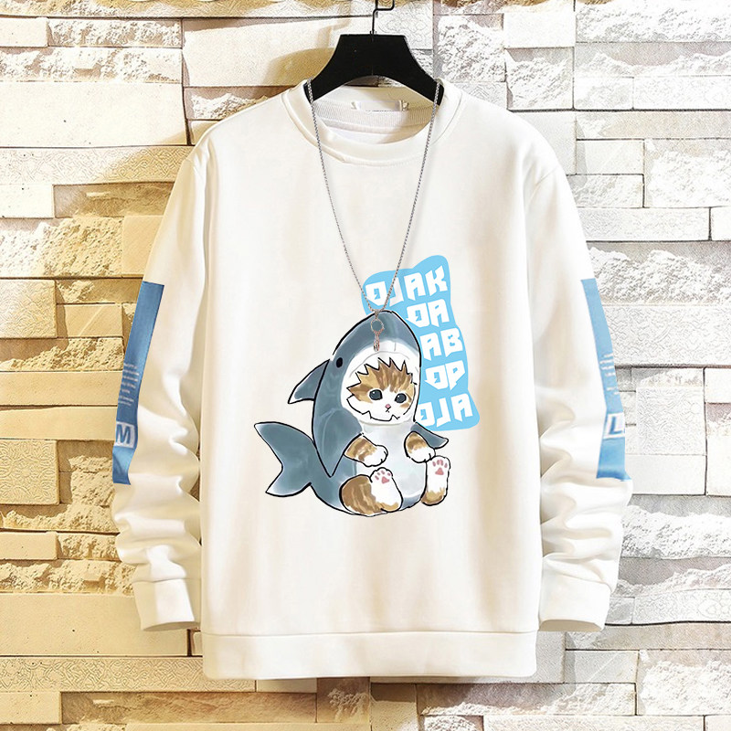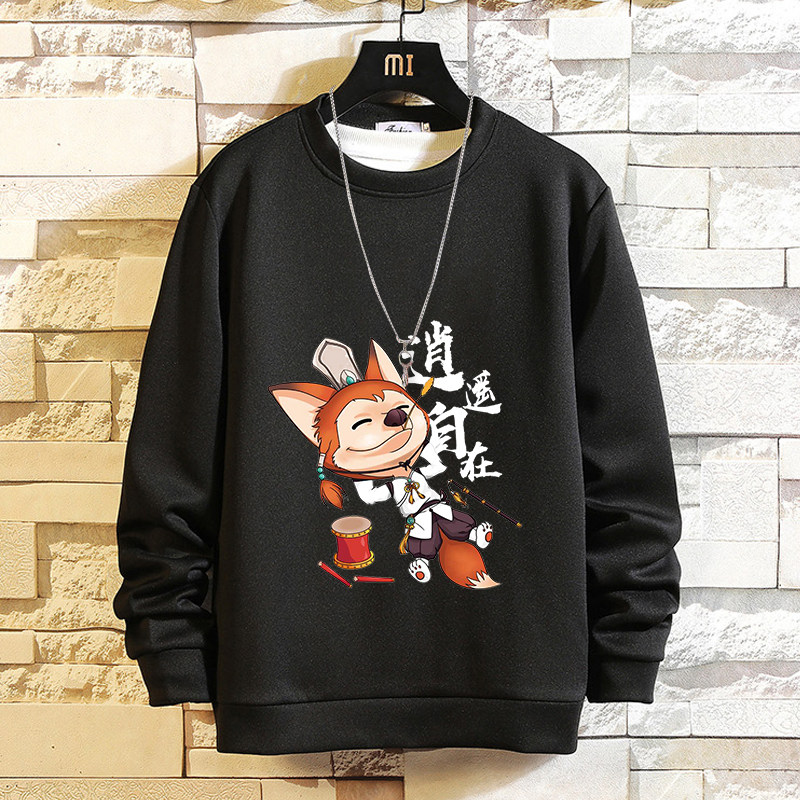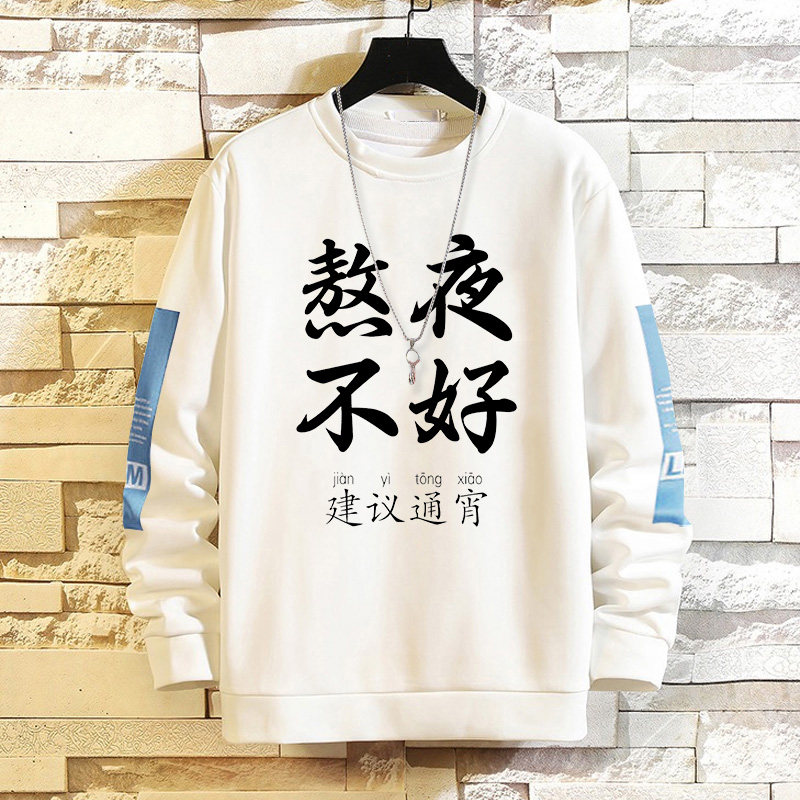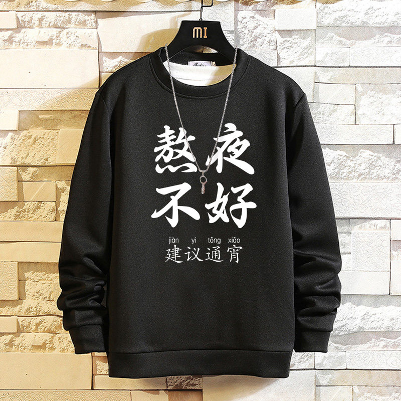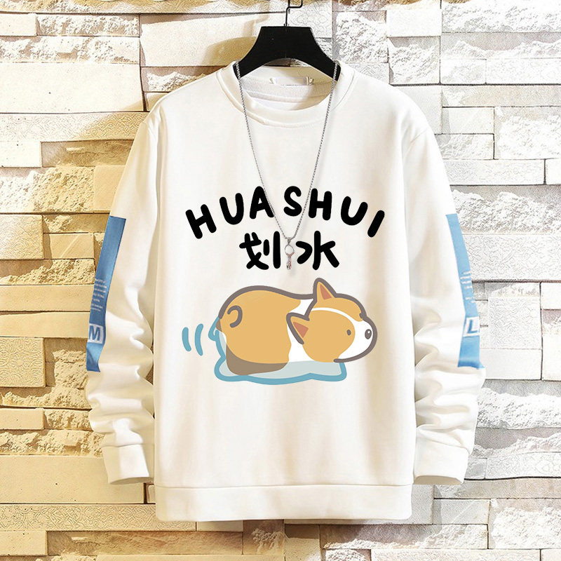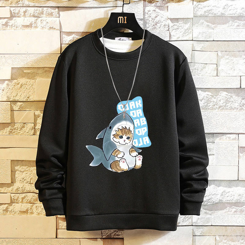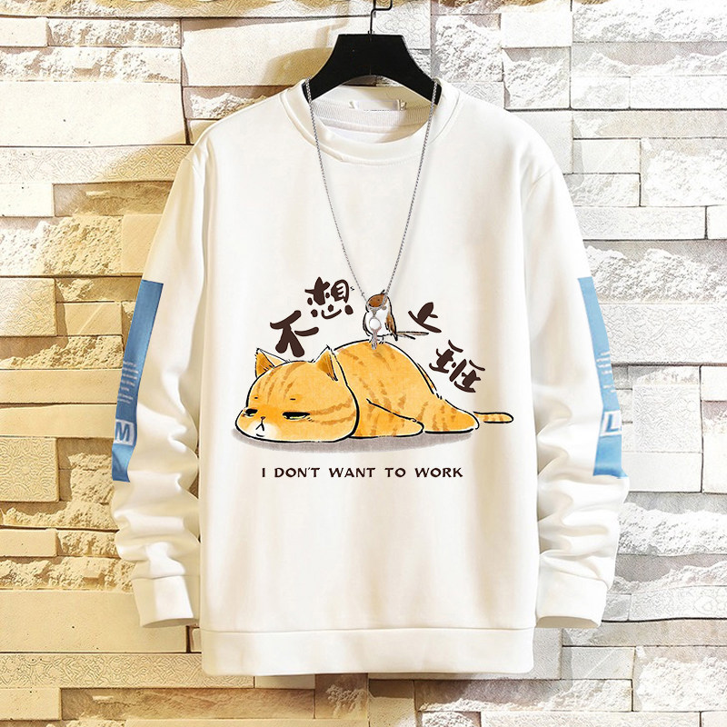 摸魚劃水衛衣男加絨寬鬆男潮牌秋冬可愛衣服套頭長袖t恤潮流休閒