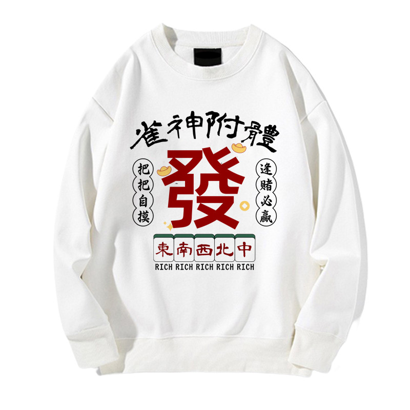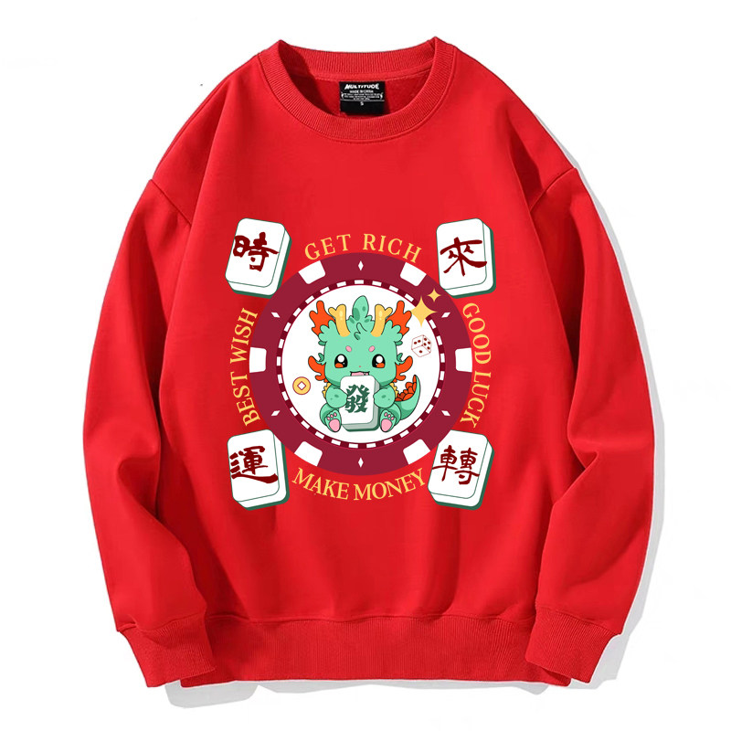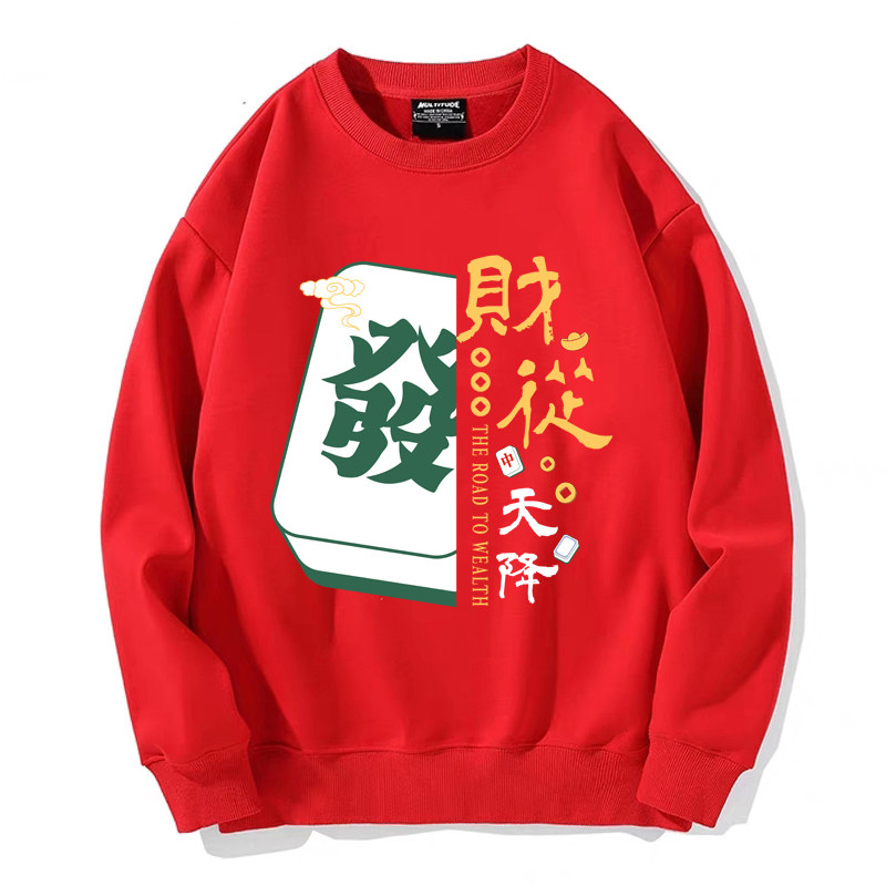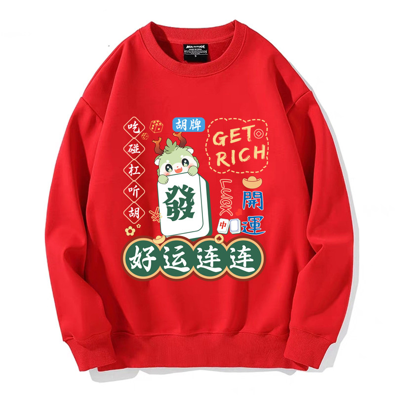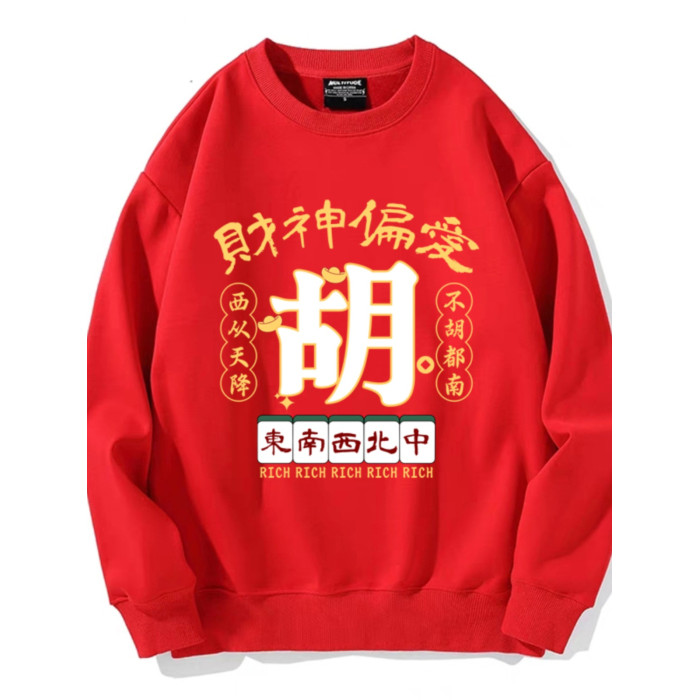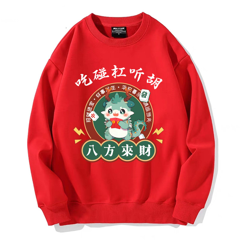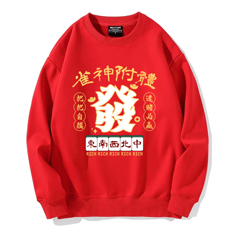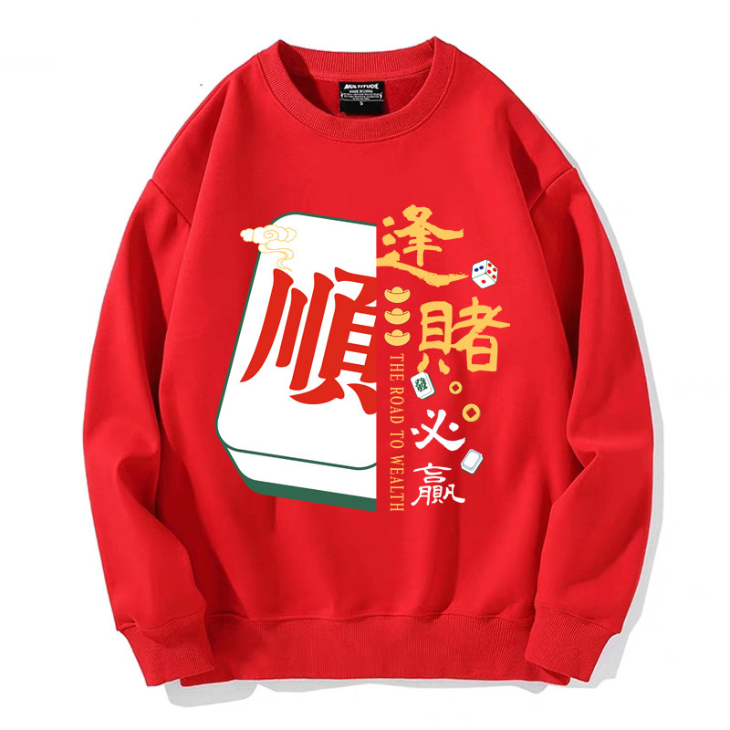 趣味港風國潮打麻將衛衣戰袍圖案本命新年情侶衣服紅色男加絨秋冬
