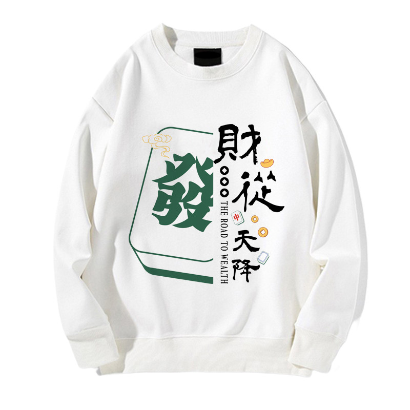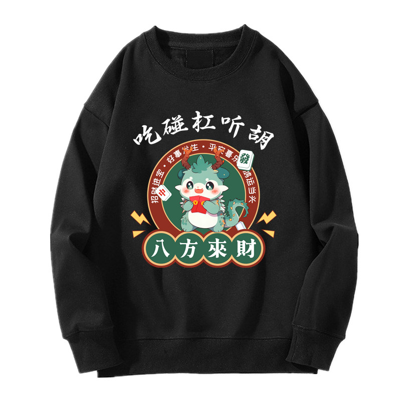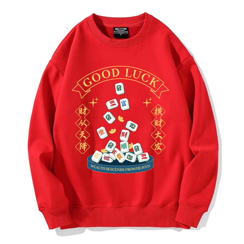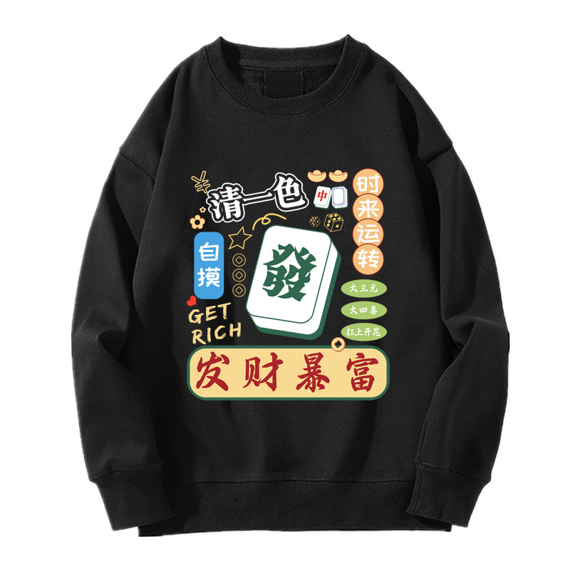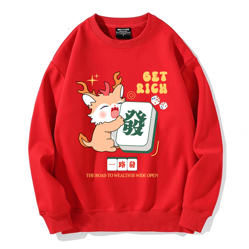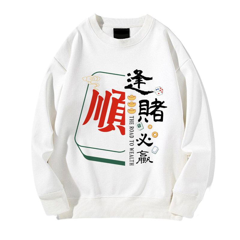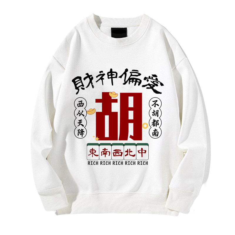 趣味港風國潮打麻將衛衣戰袍圖案本命新年情侶衣服紅色男加絨秋冬