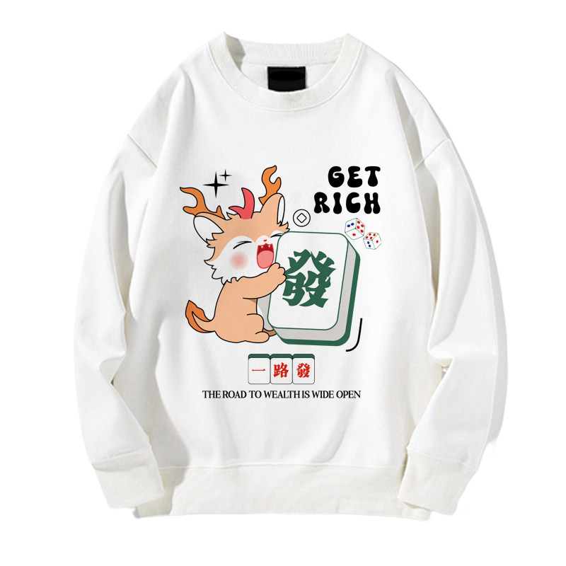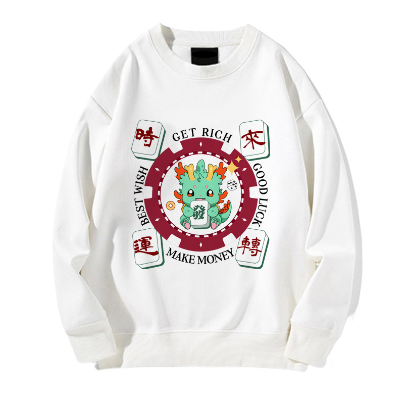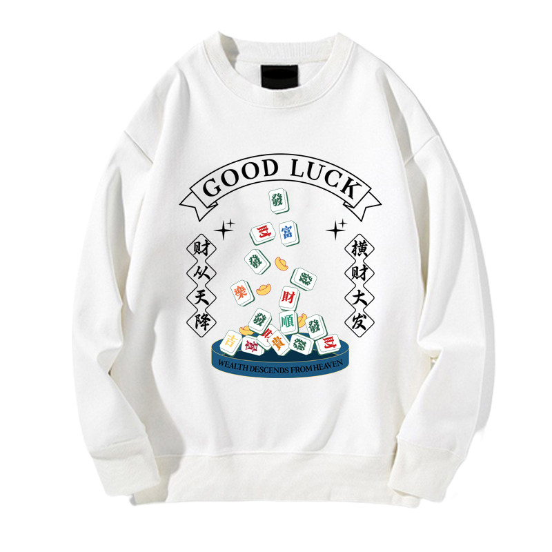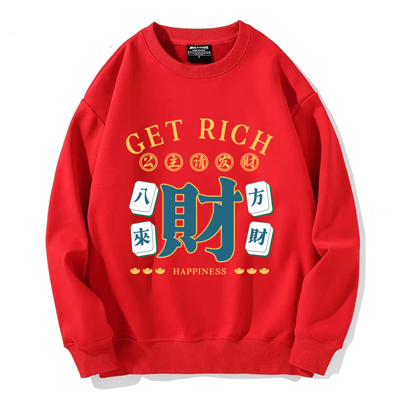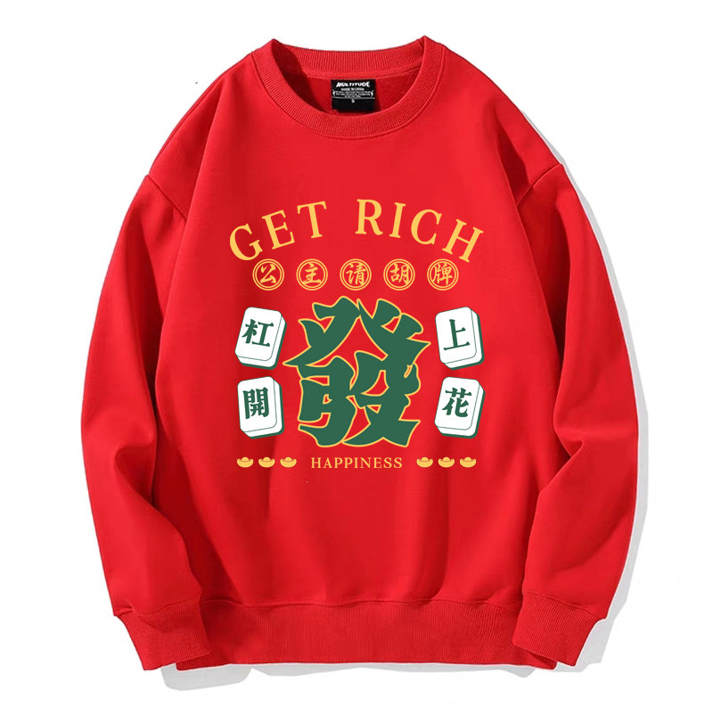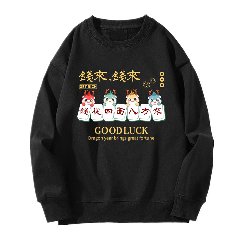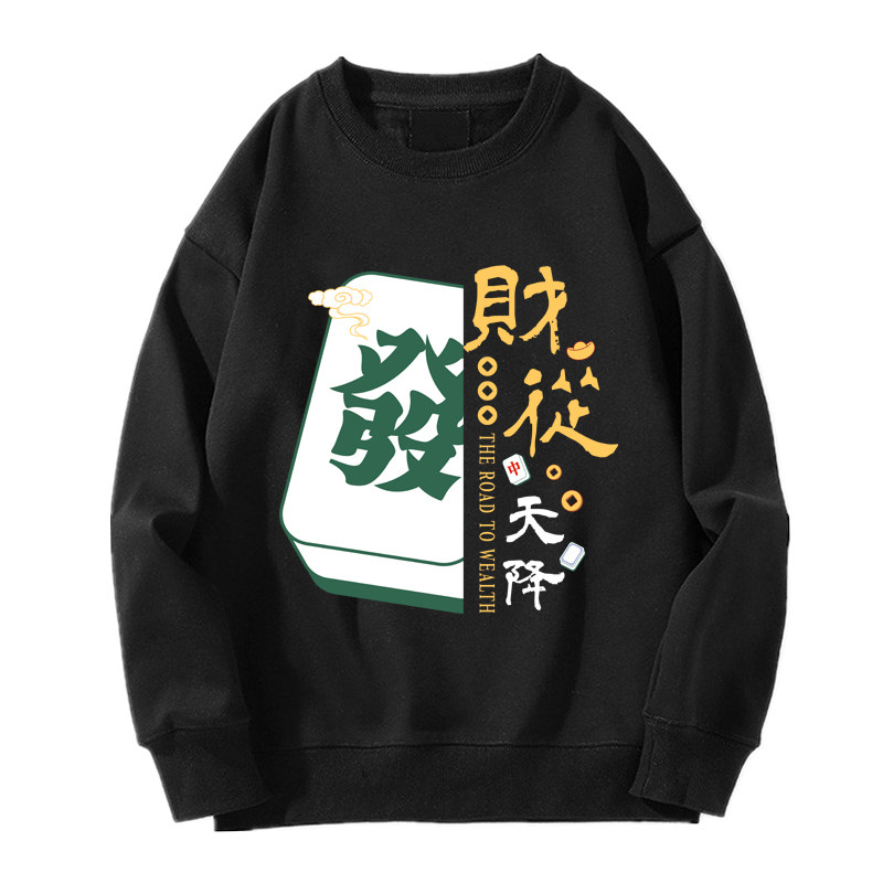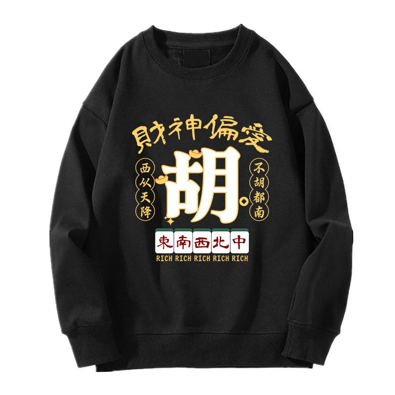 趣味港風國潮打麻將衛衣戰袍圖案本命新年情侶衣服紅色男加絨秋冬