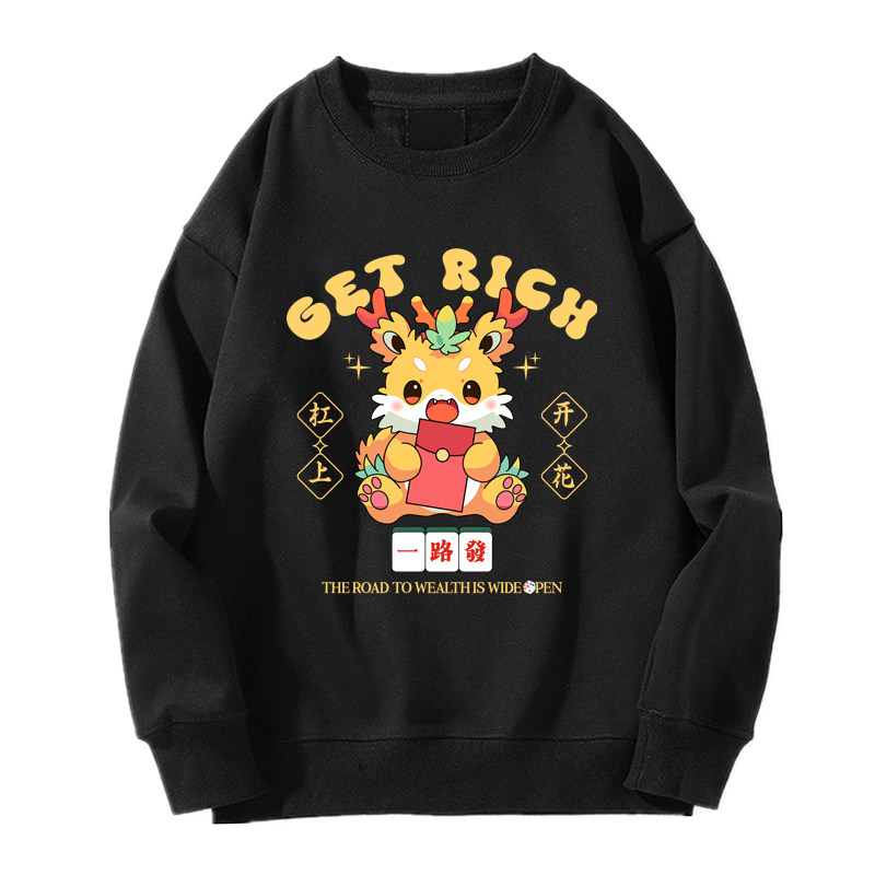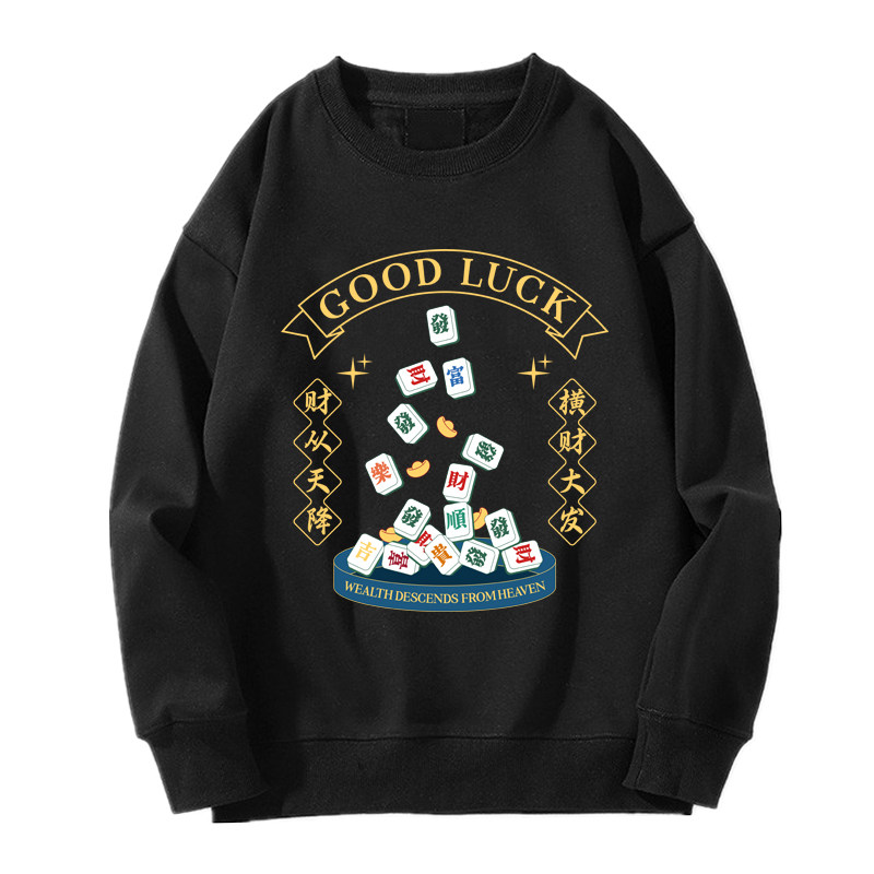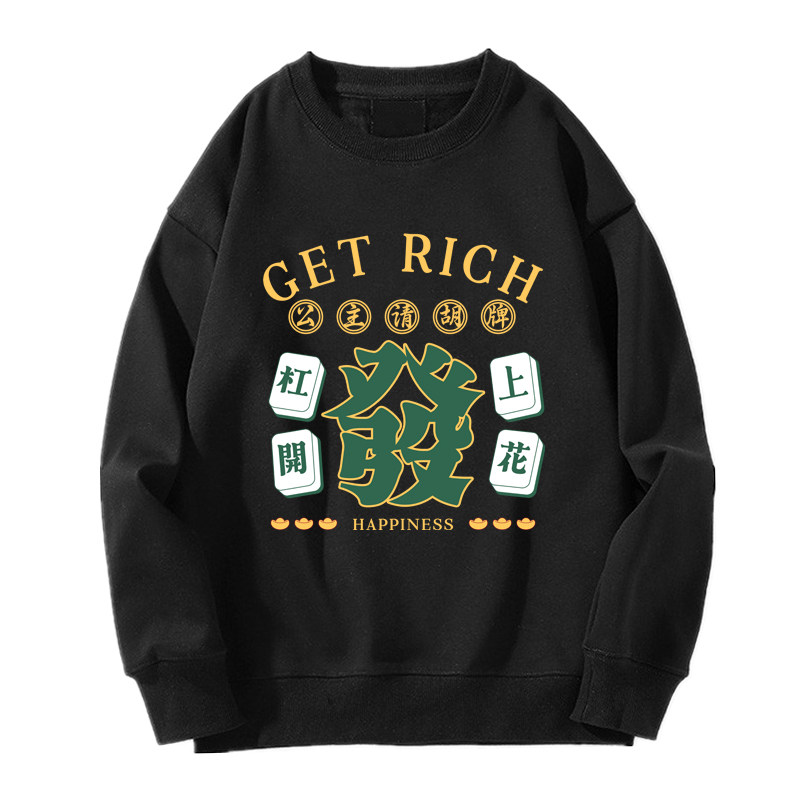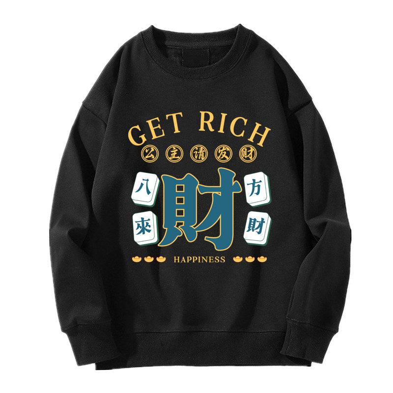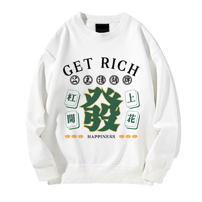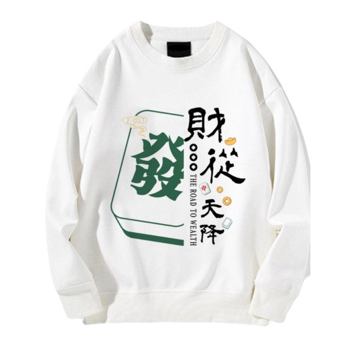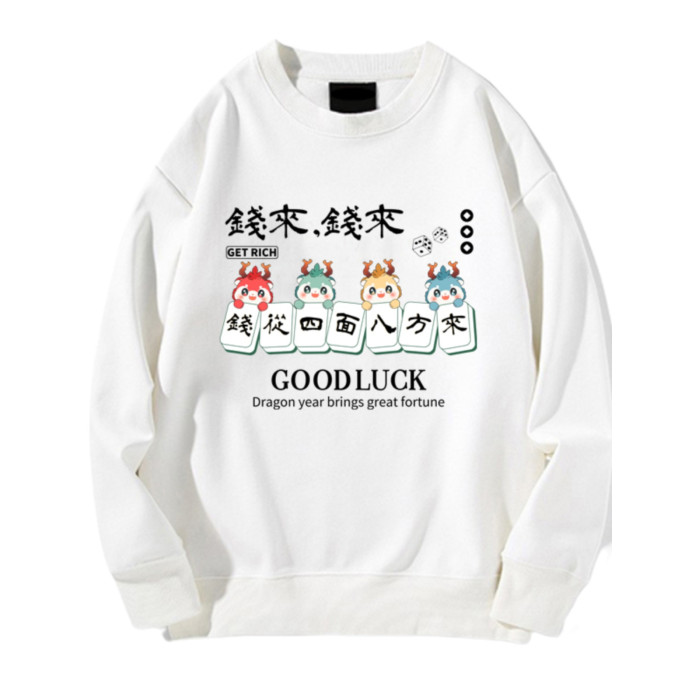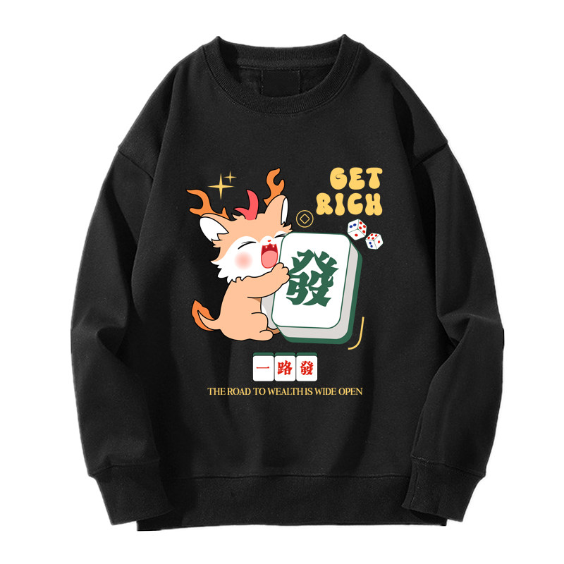 趣味港風國潮打麻將衛衣戰袍圖案本命新年情侶衣服紅色男加絨秋冬