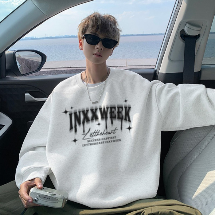 美式高街連帽長袖衛衣男秋季潮牌字母印花重磅黑色青少年痞帥外套