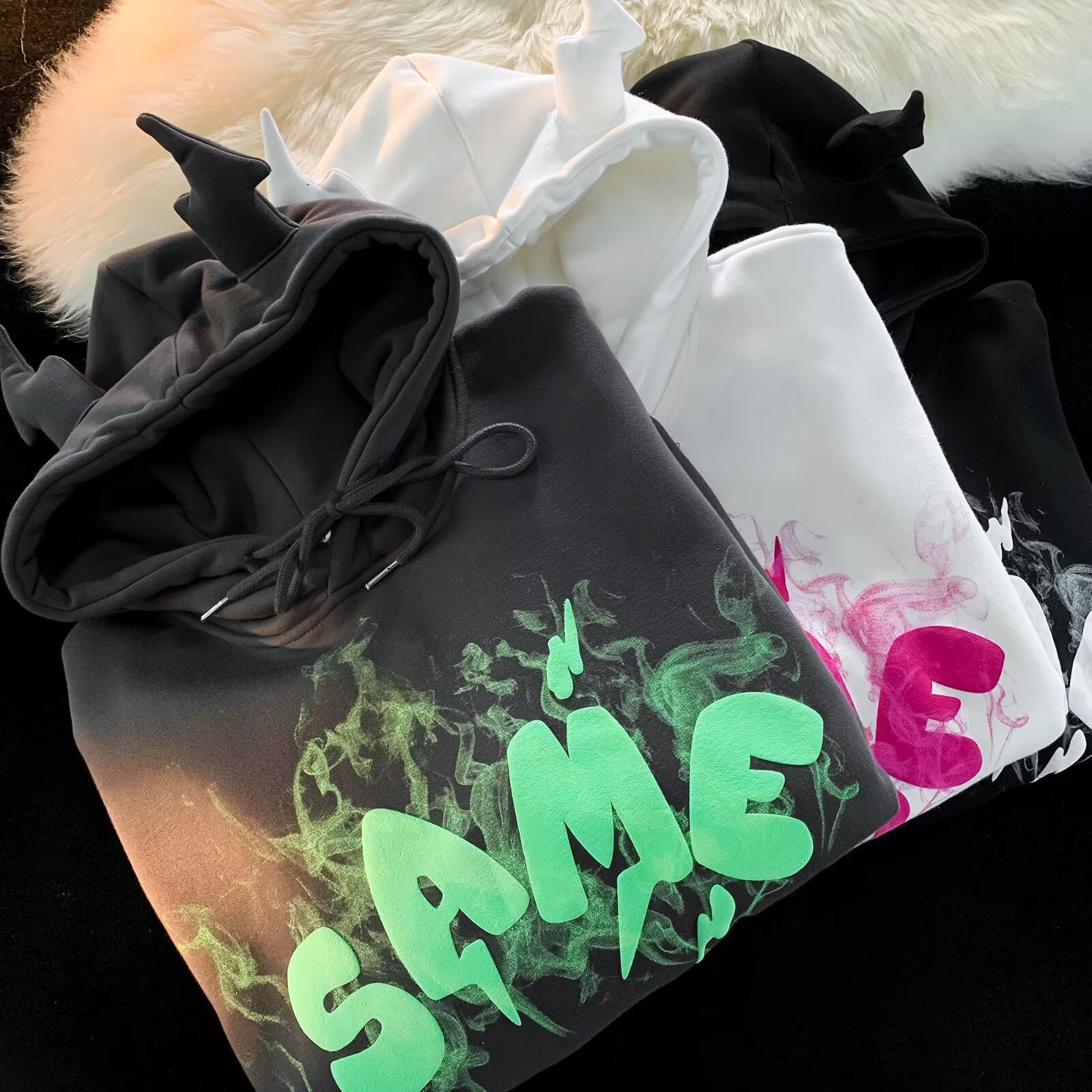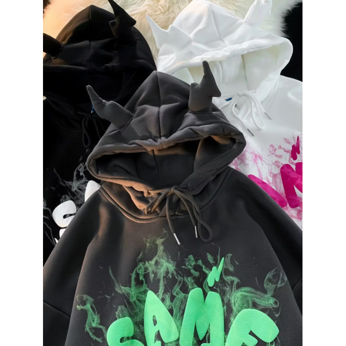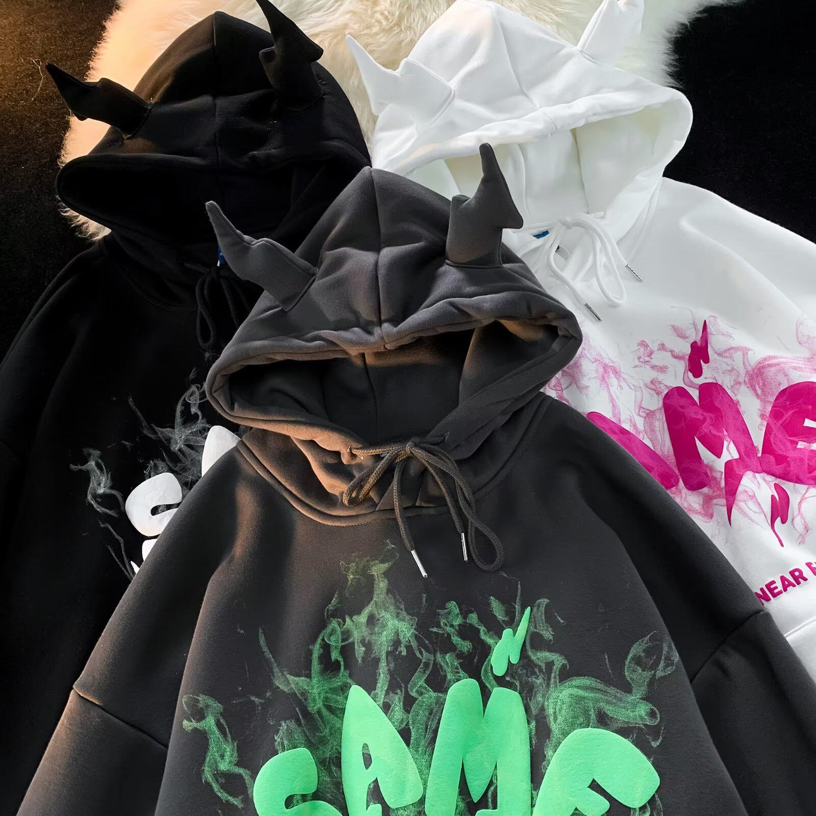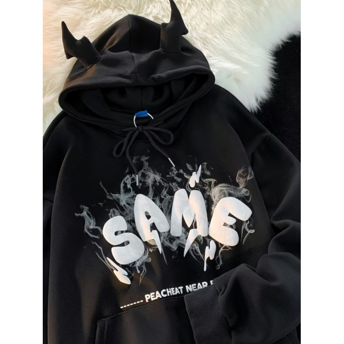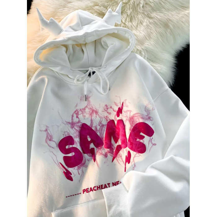 設計感連帽衛衣男女春秋潮牌字母發泡小惡魔上衣美式情侶加絨外套