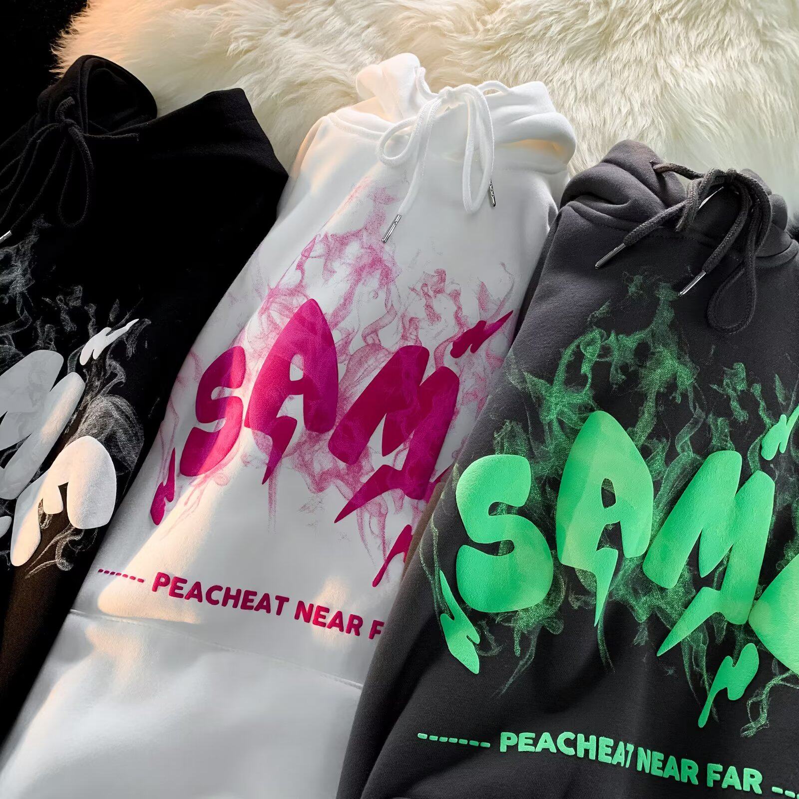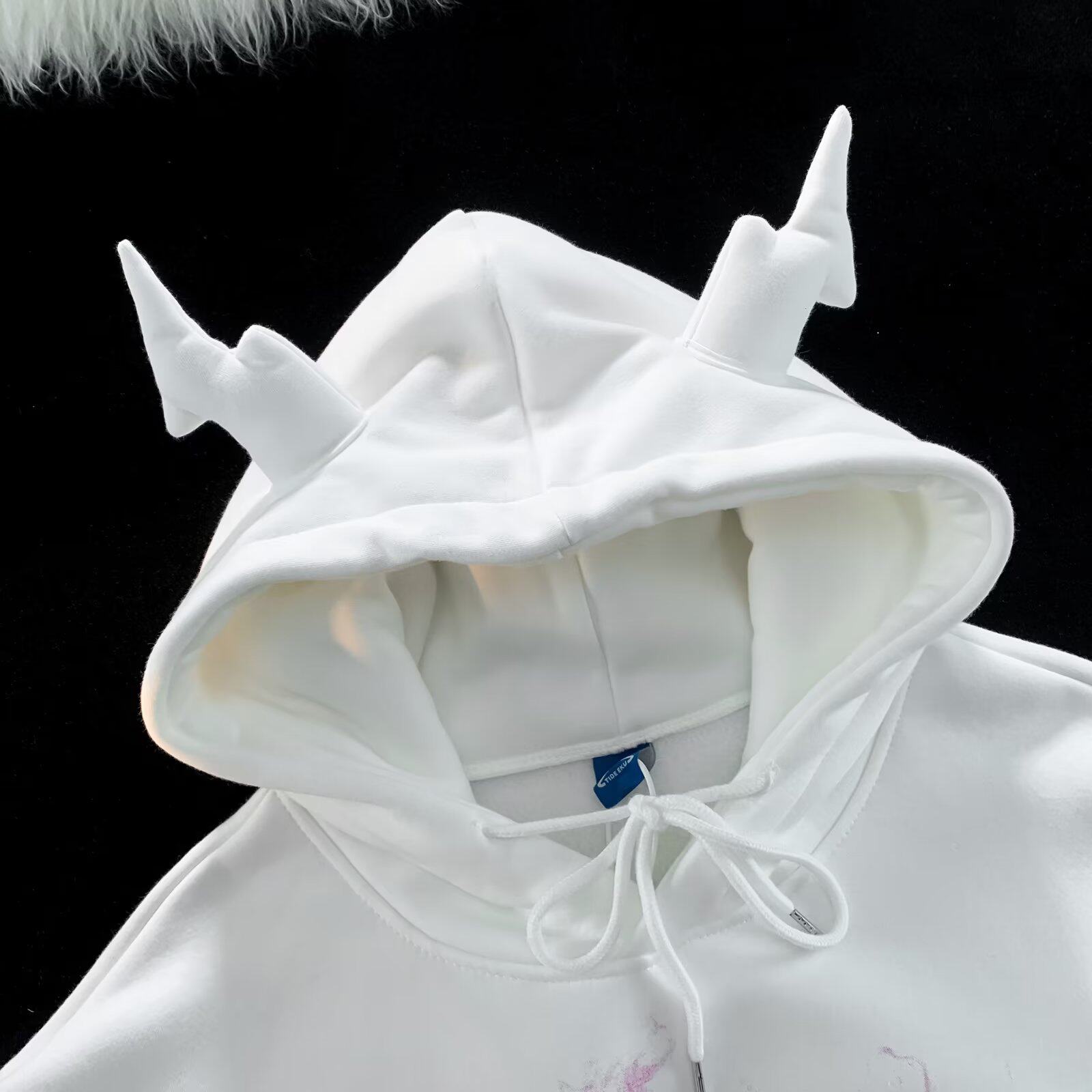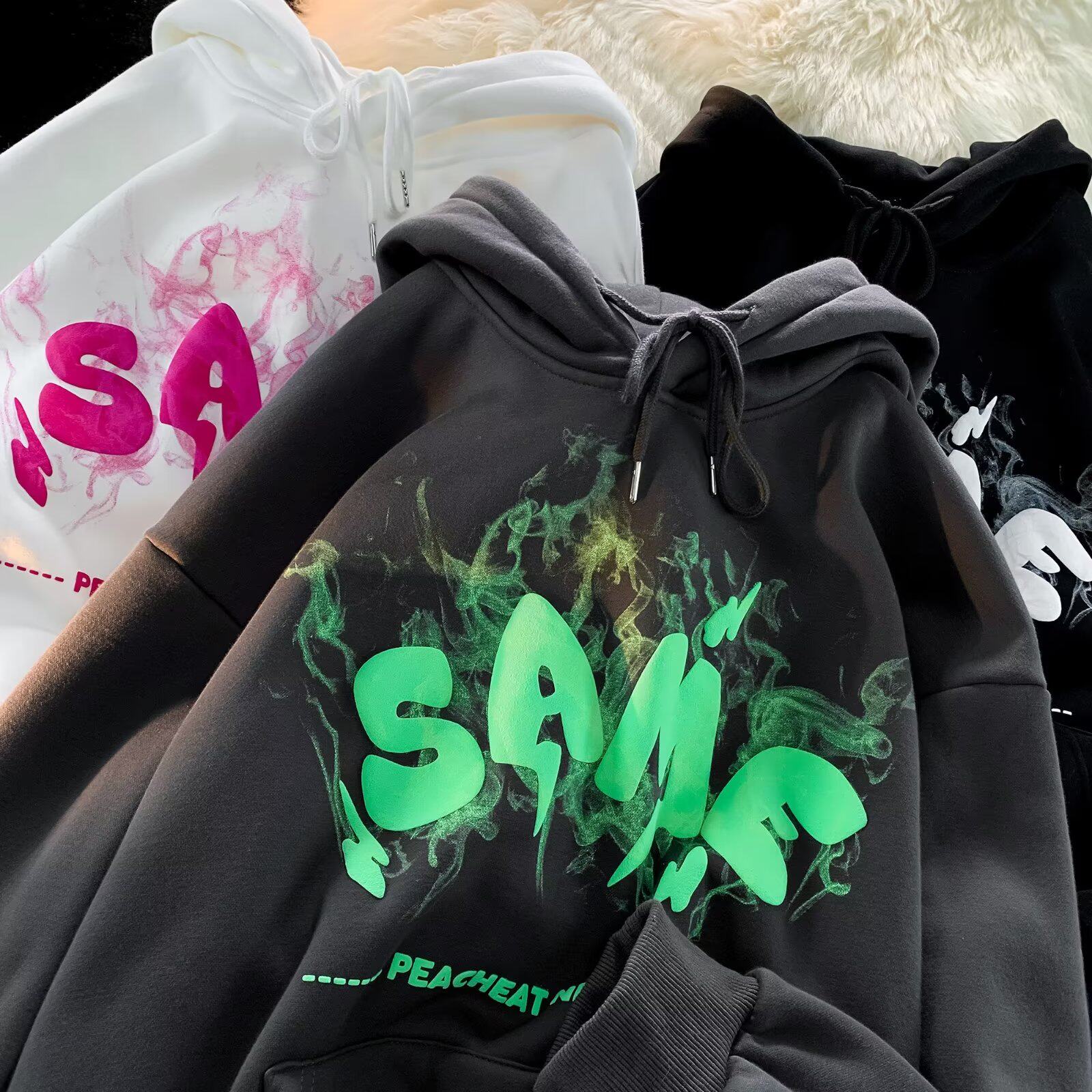 設計感連帽衛衣男女春秋潮牌字母發泡小惡魔上衣美式情侶加絨外套