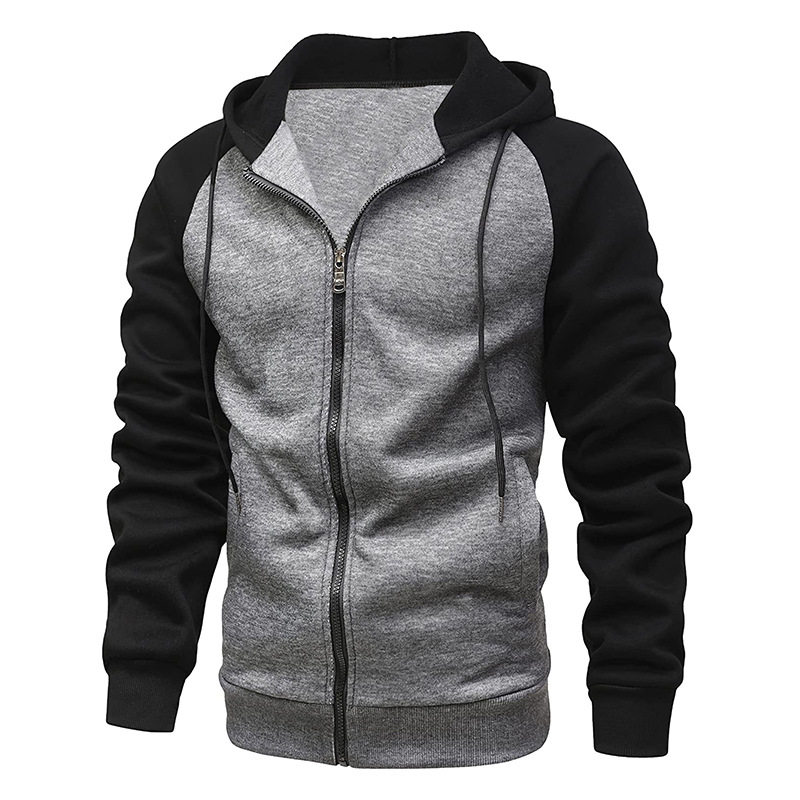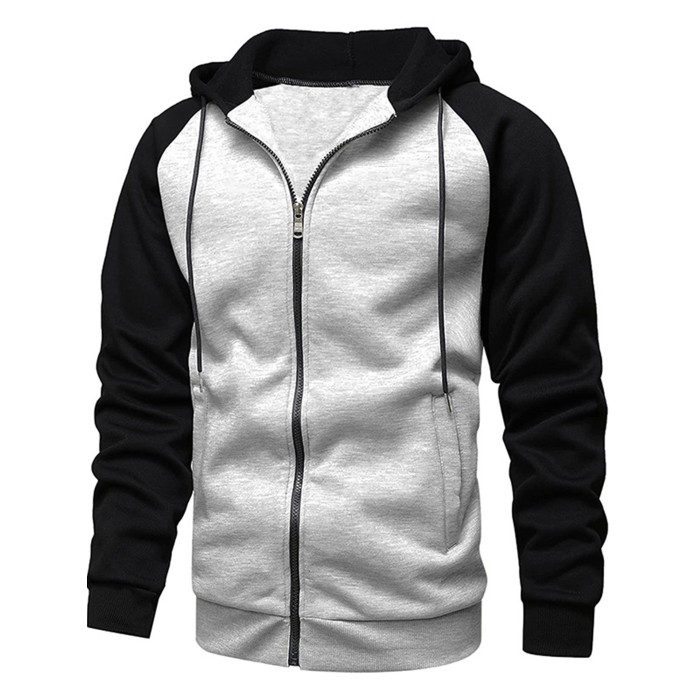 秋冬撞色連帽修身大碼衛衣拉鍊開衫休閒外套上衣男Men sweatshirt