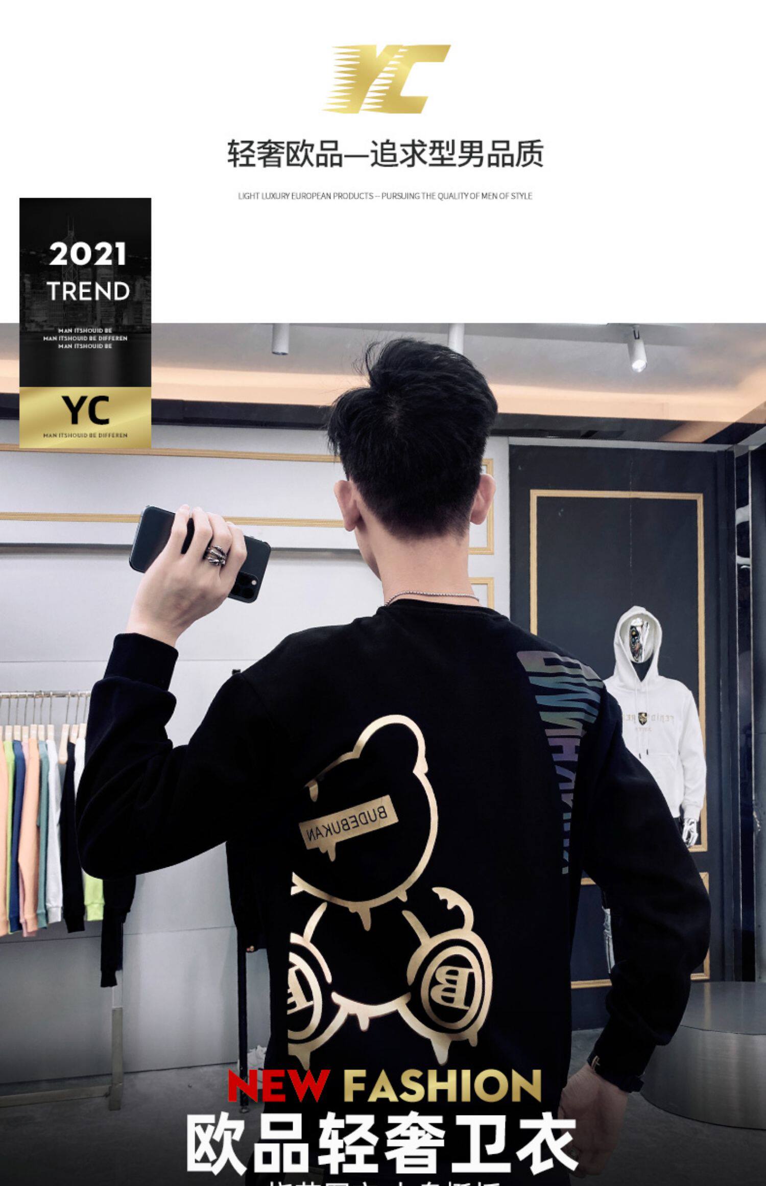 歐洲站衛衣男2024新款秋季網紅小熊印花外套春秋款長袖上衣情侶裝