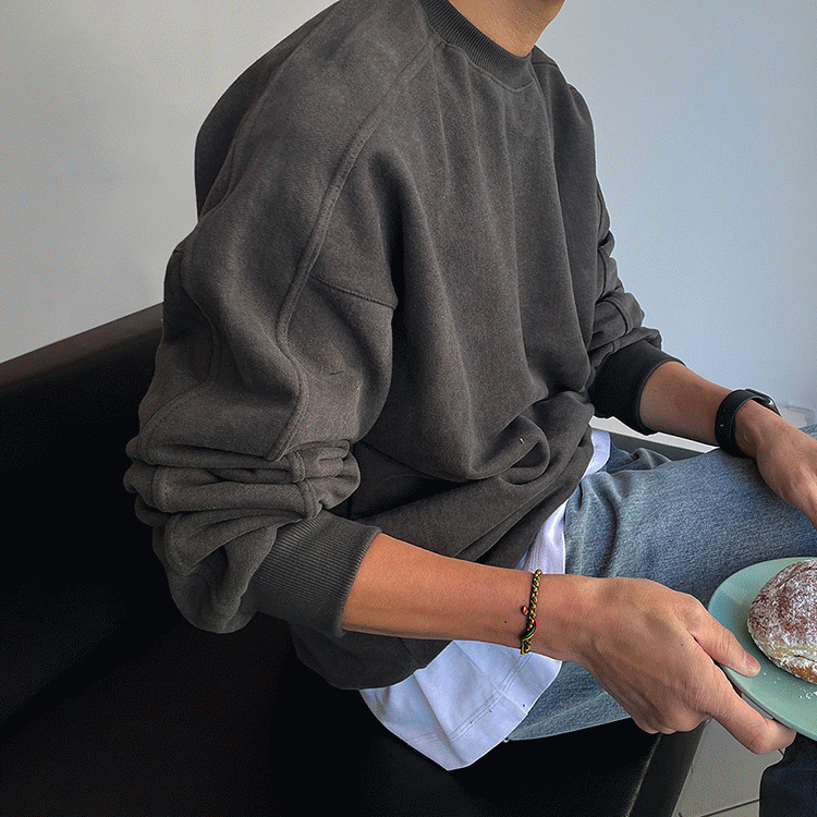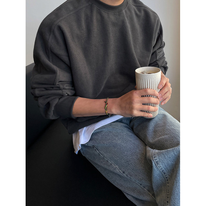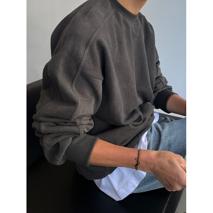 MRCYC簡約復古圓領衛衣男士春季寬鬆基礎款上衣韓系潮流套頭外套
