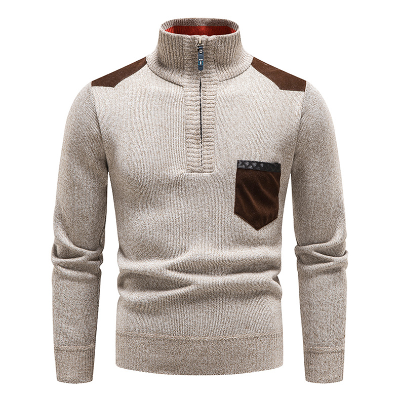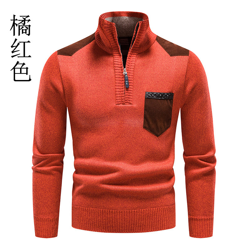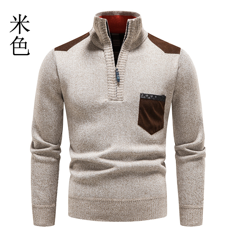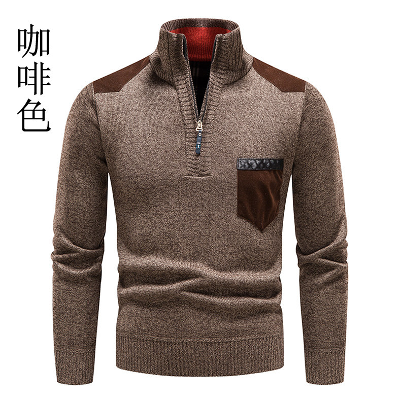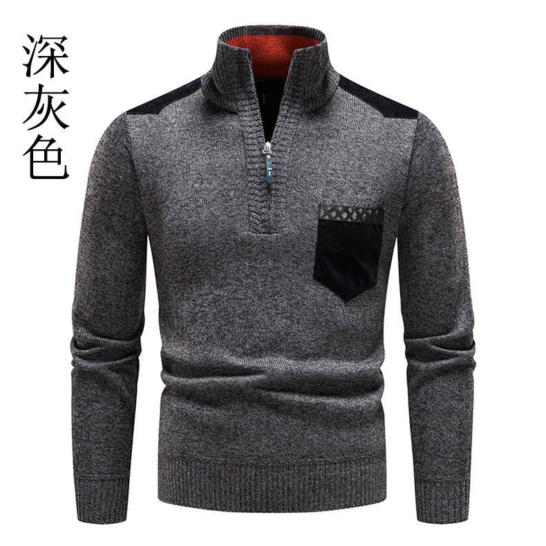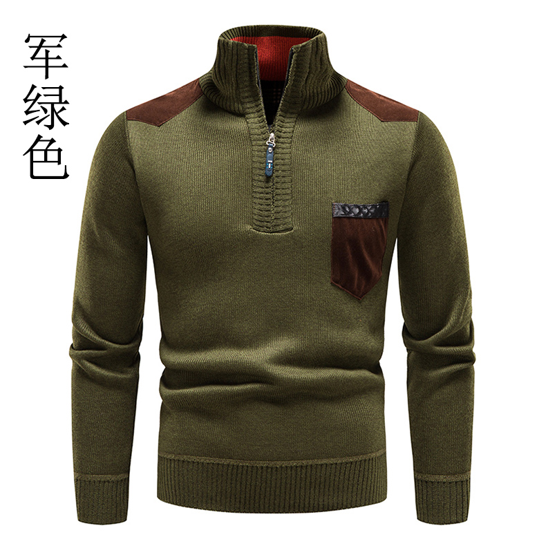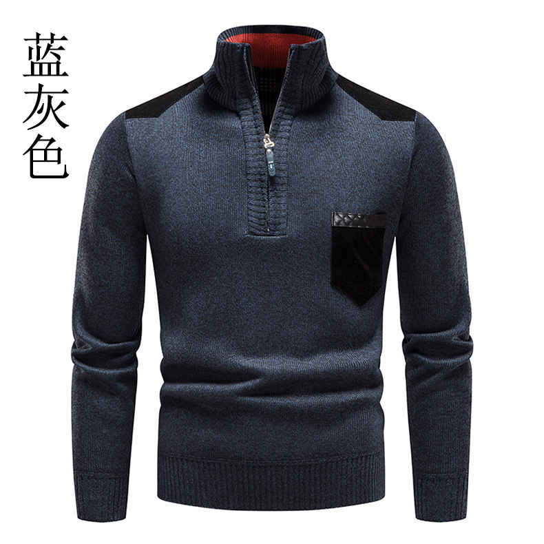 秋冬季新款男士半高領拉鍊針織衫修身外套百搭休閒外穿套頭衫衛衣