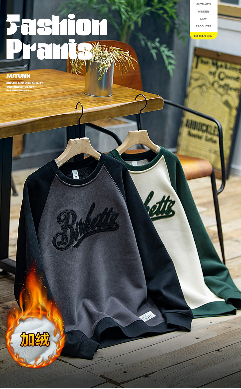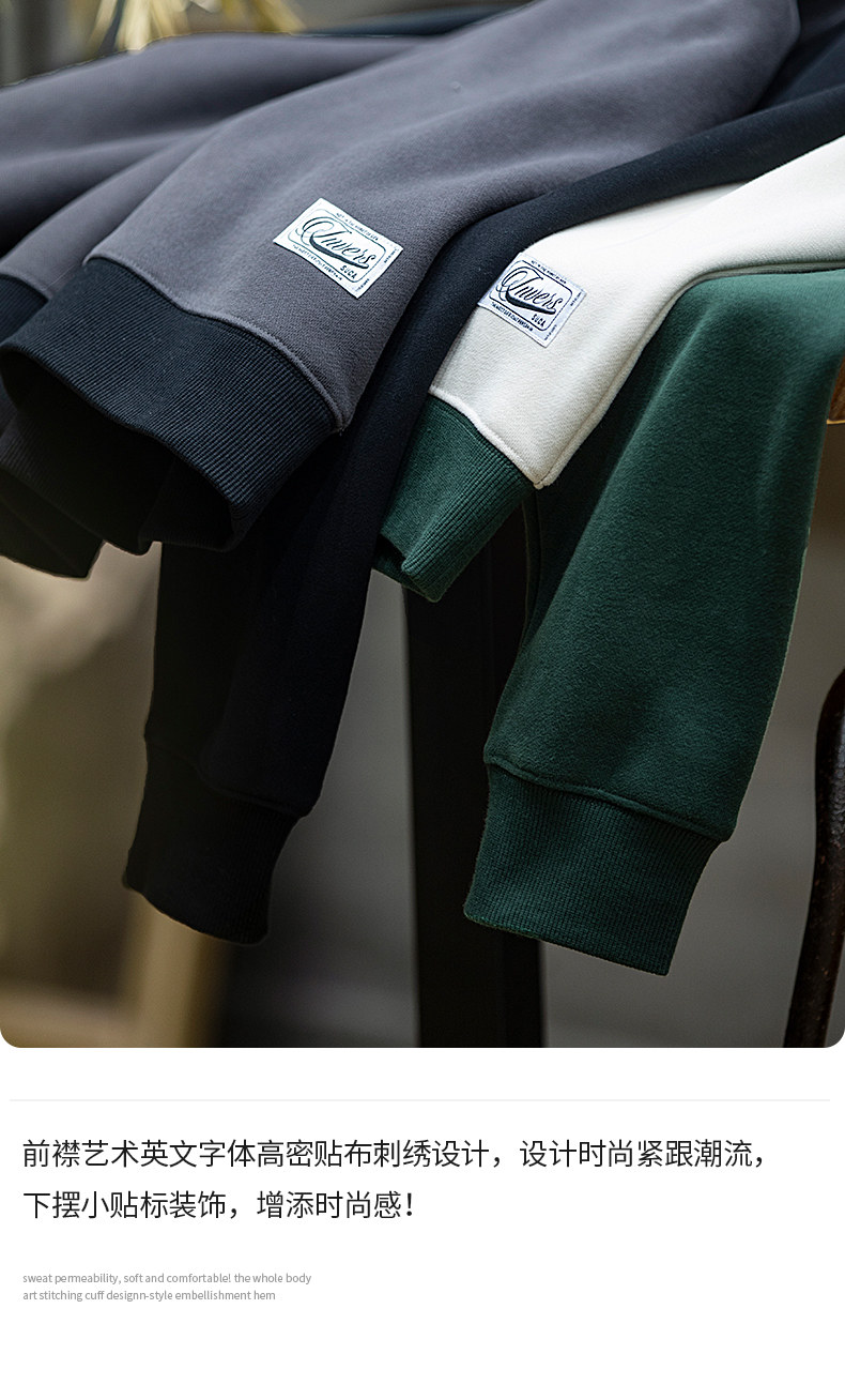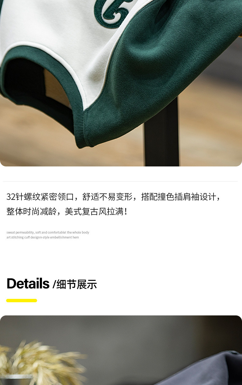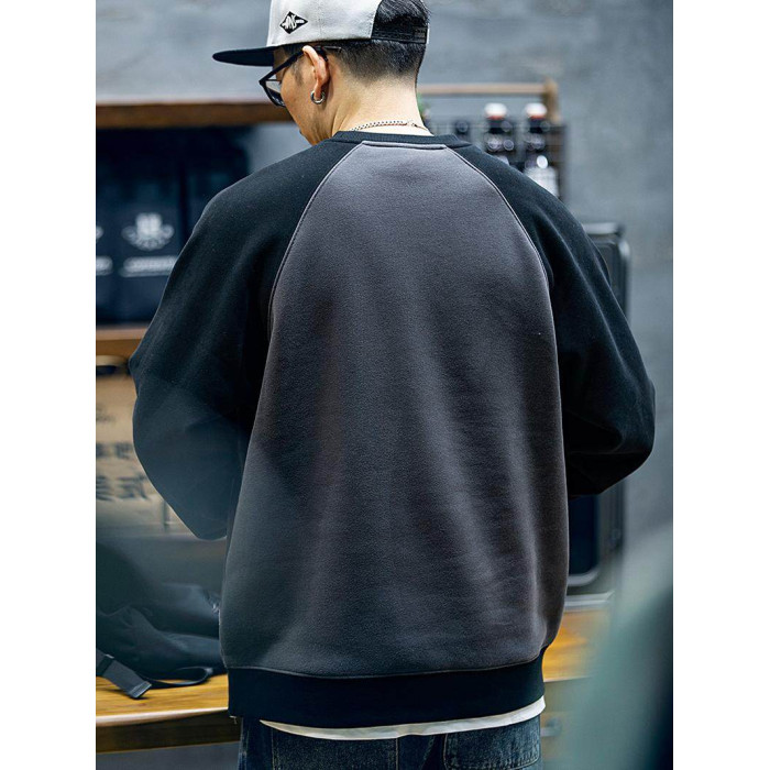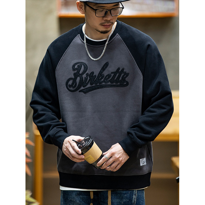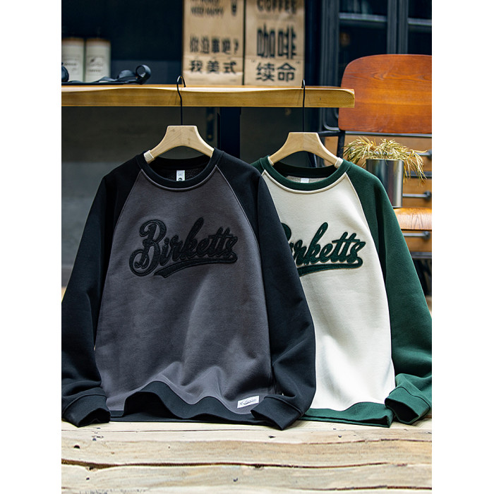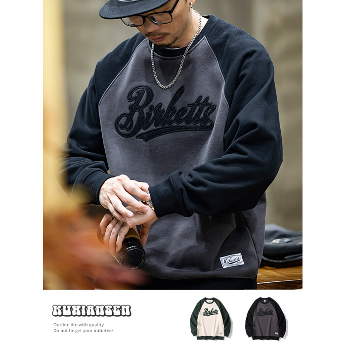 美式復古拼接衛衣男春季寬鬆潮牌刺綉圓領上衣大碼撞色休閒外套潮