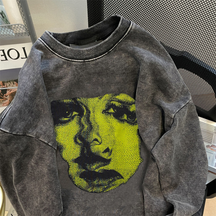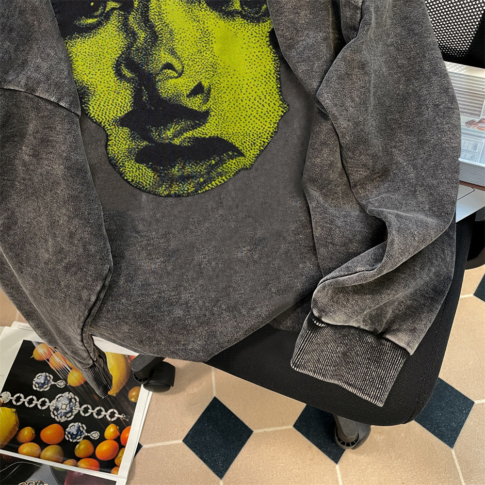 美式慵懶chic重磅水洗做舊純棉衛衣男女秋冬oversize痞帥加絨上衣