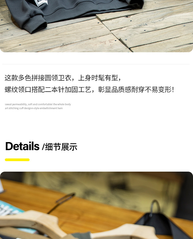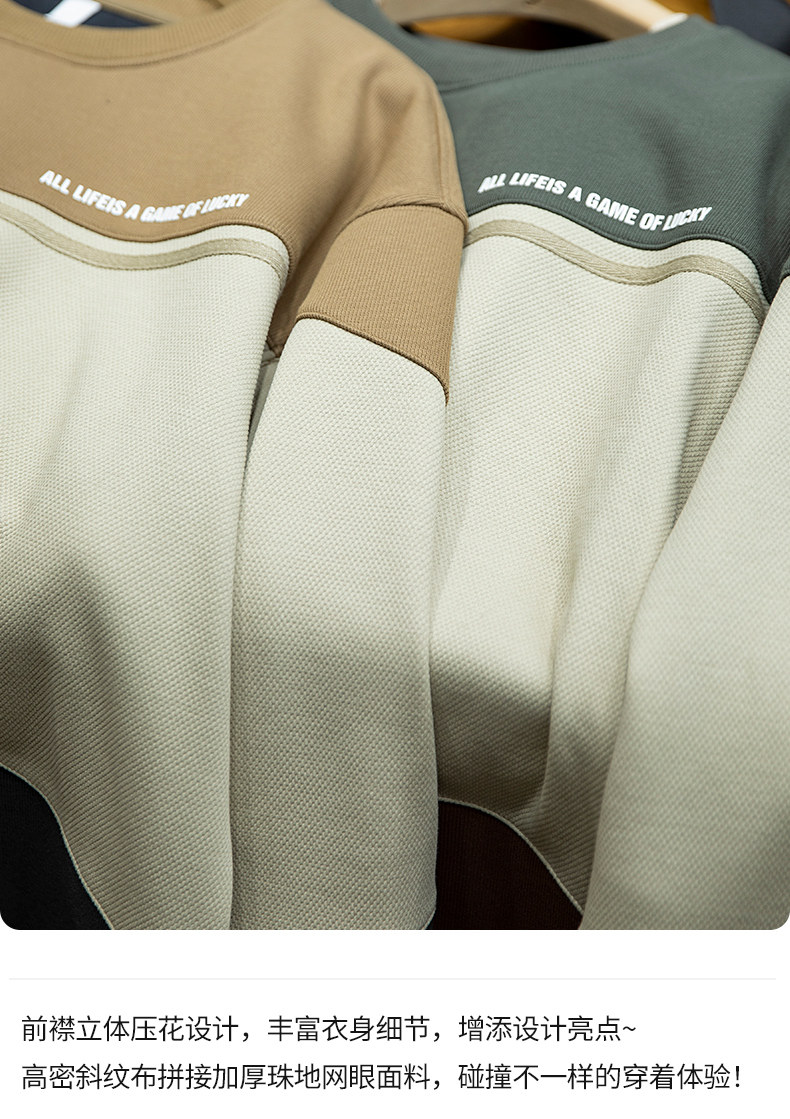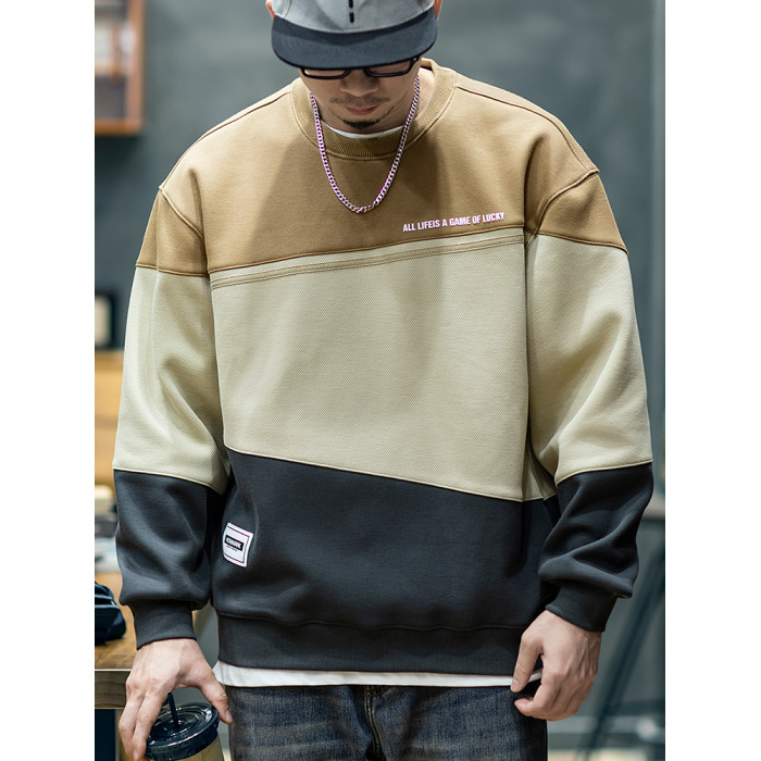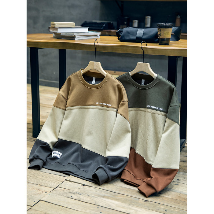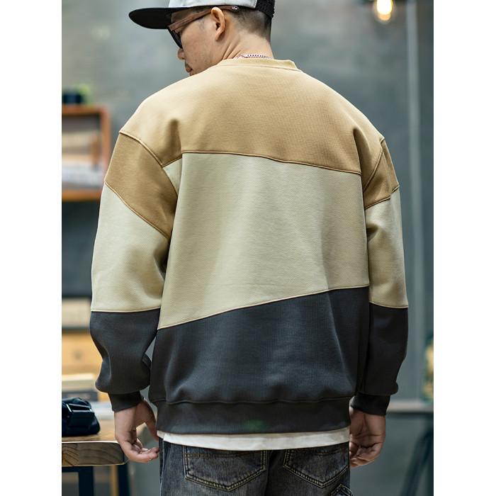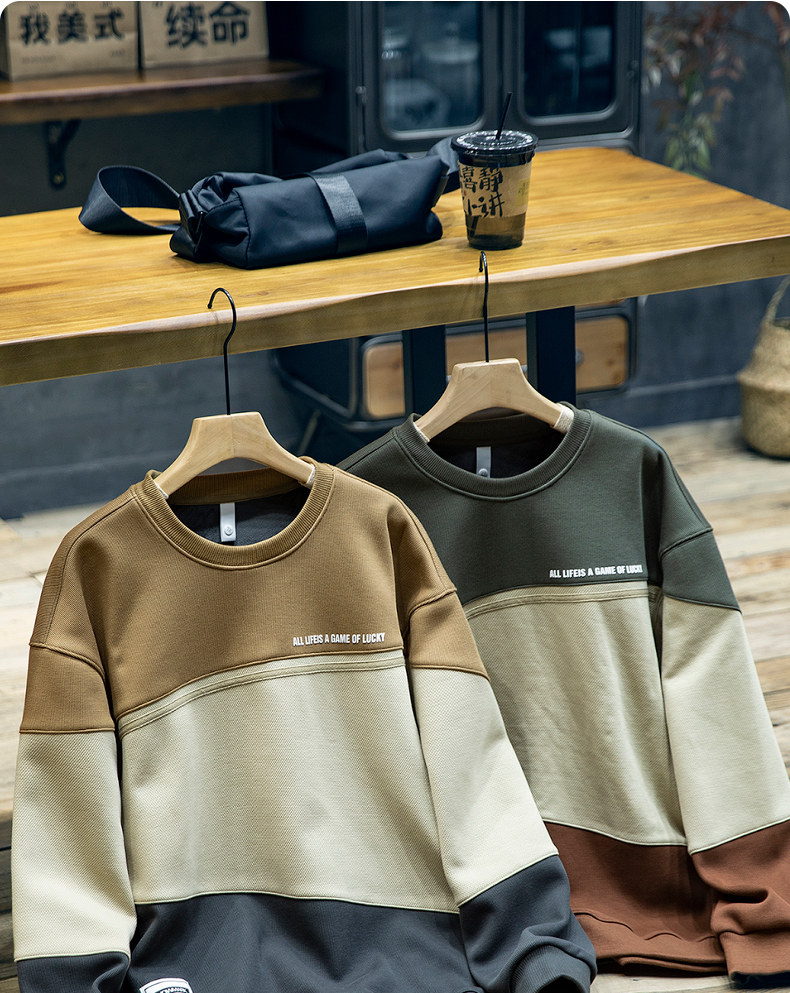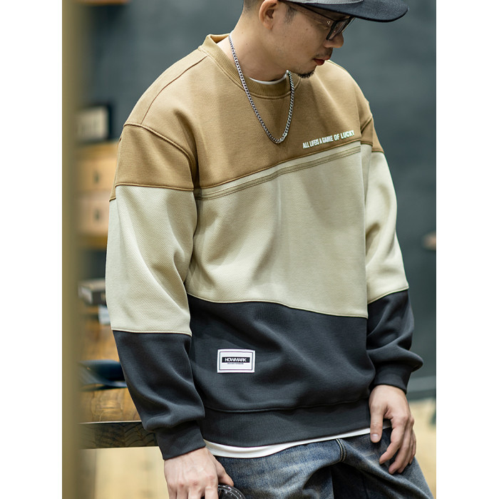 美式復古拼接衛衣男寬鬆潮牌撞色休閒上衣男士潮流大碼圓領外套潮