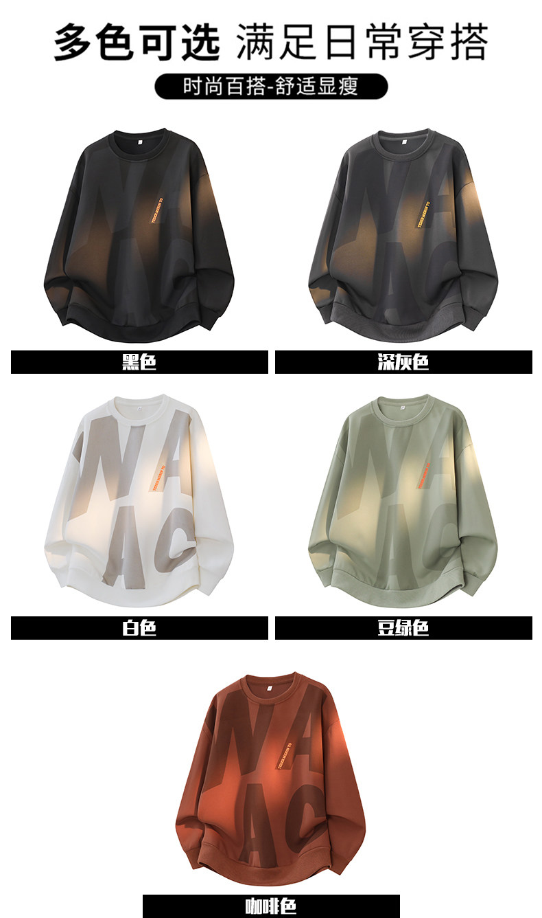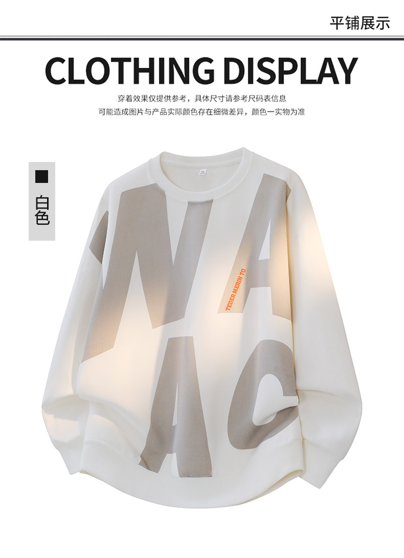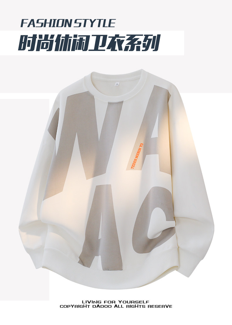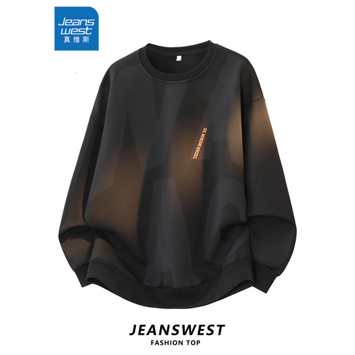 真維斯字母印花長袖T恤男士2026年春秋季新款情侶時尚圓領衛衣男
