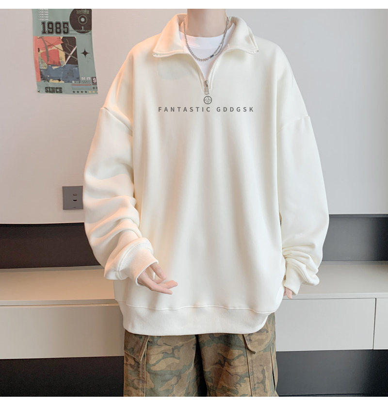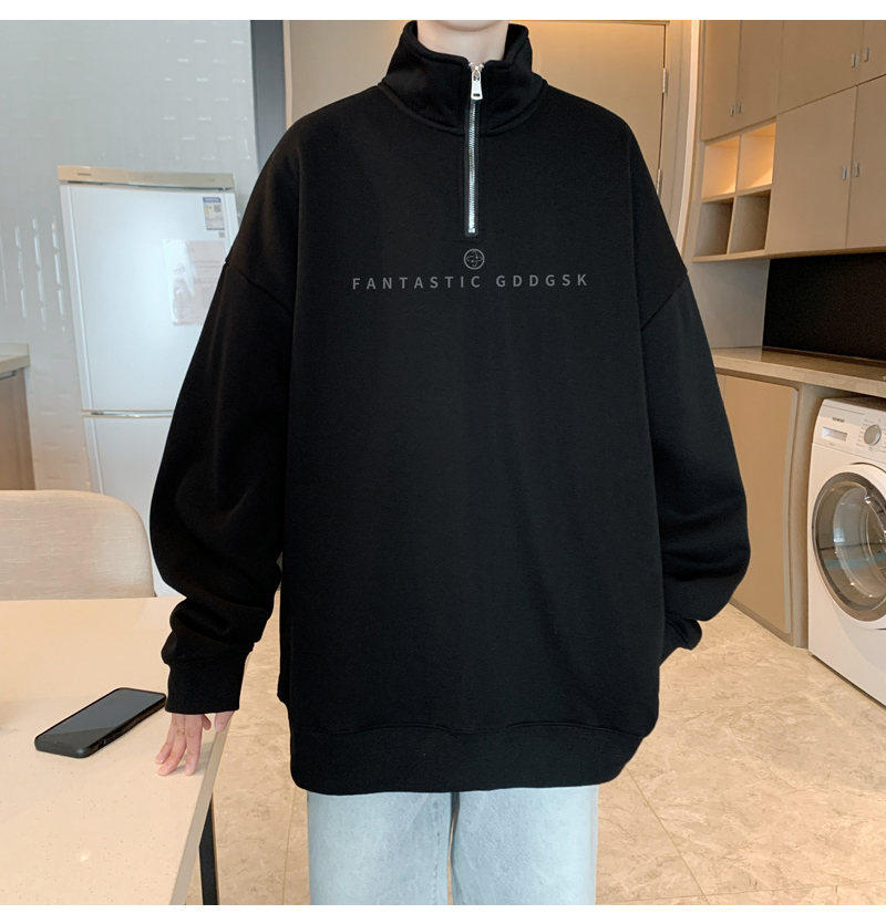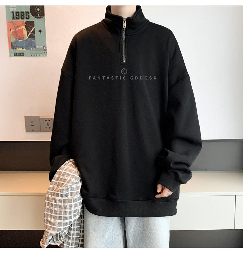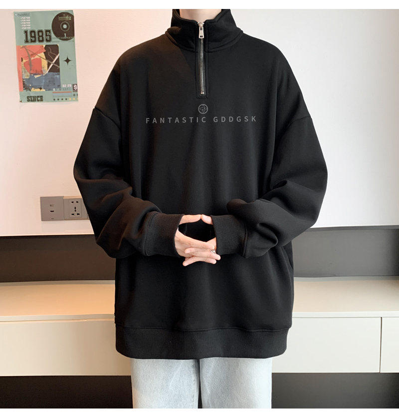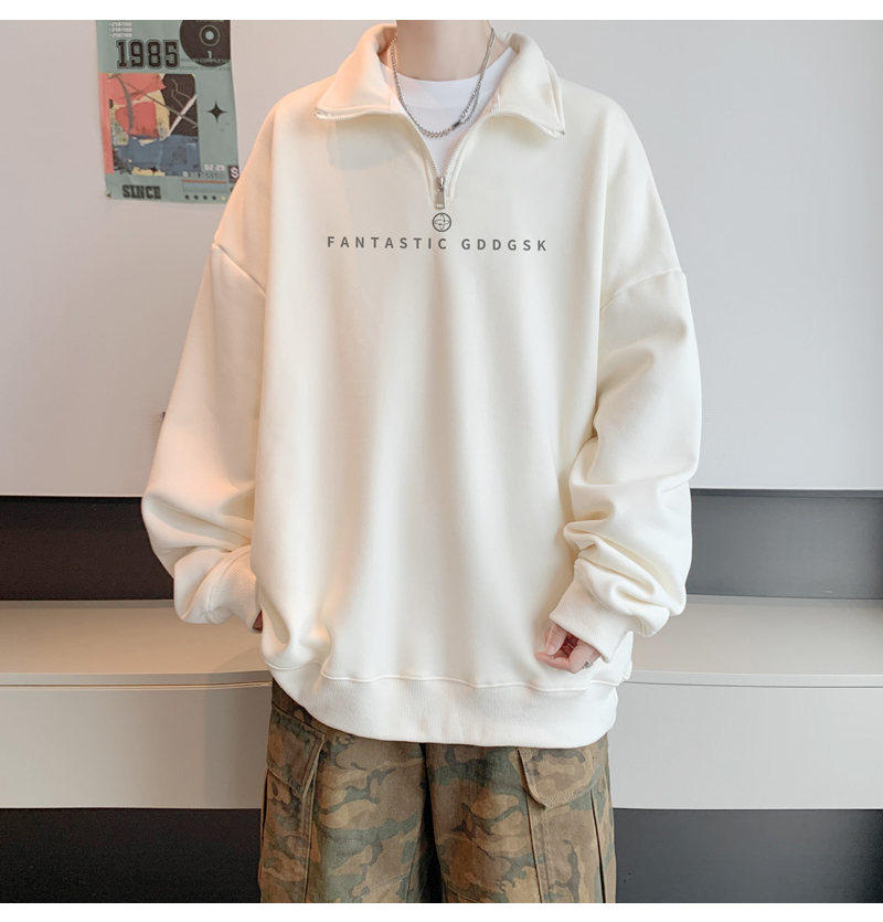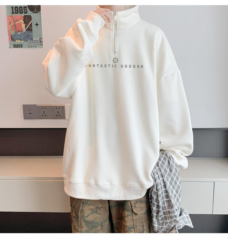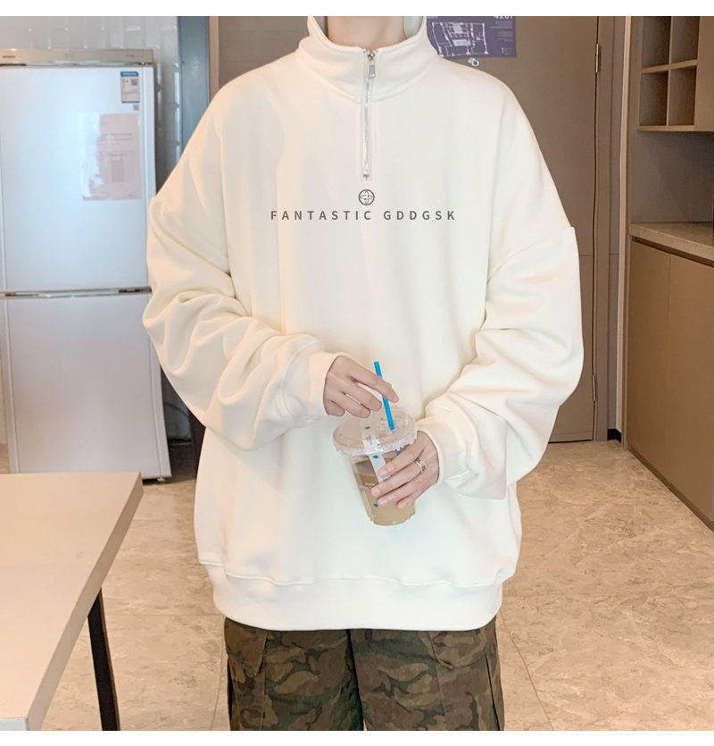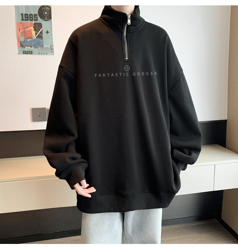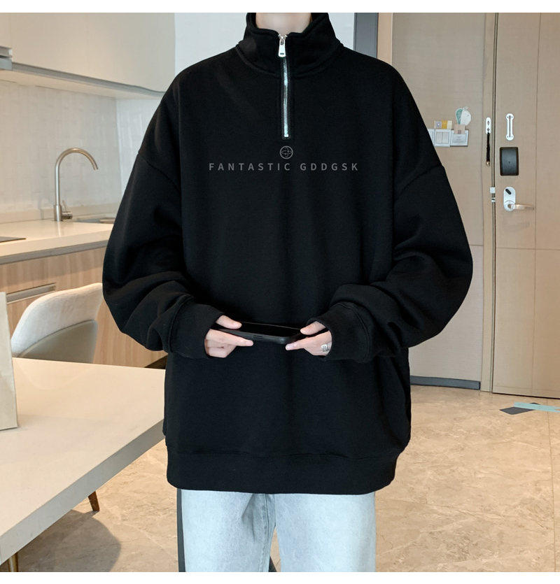秋冬季半拉鍊繙領衛衣男寬鬆情侶美式打底衫潮牌純棉針織港風外套
