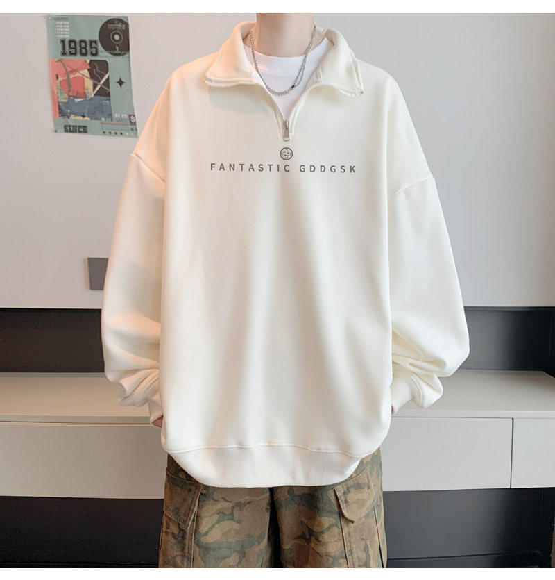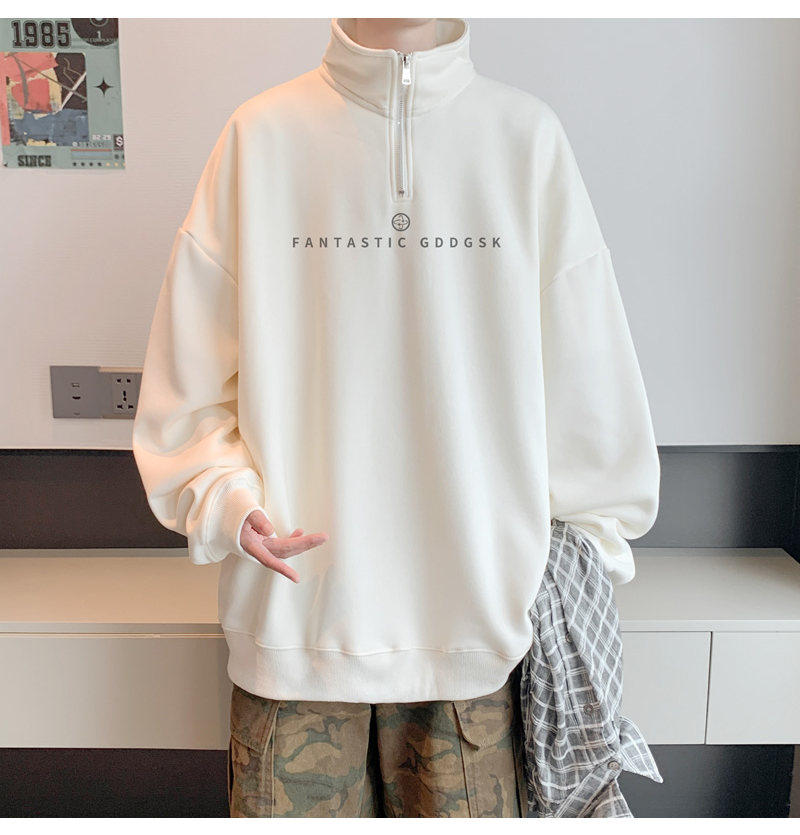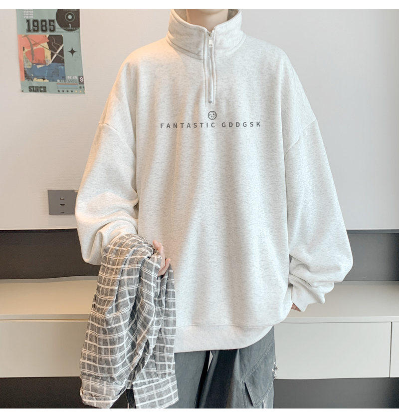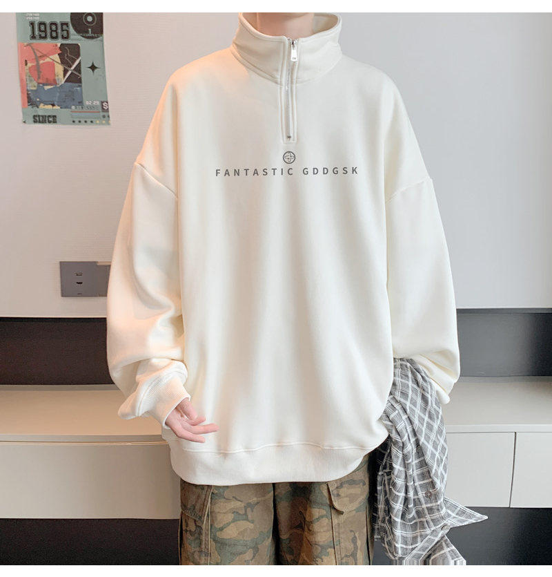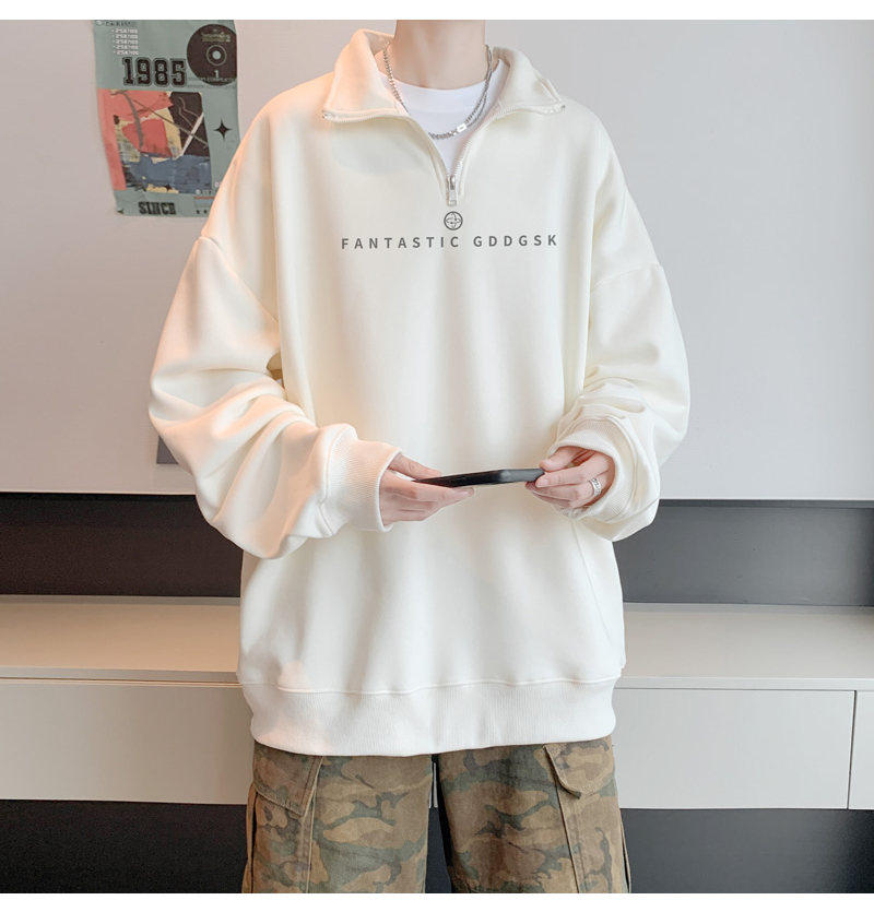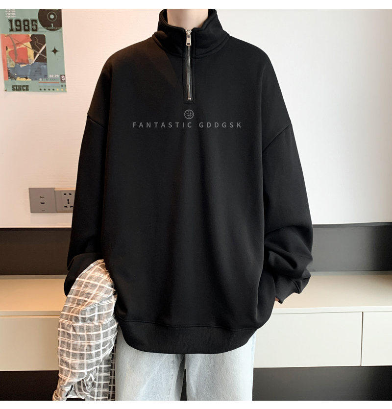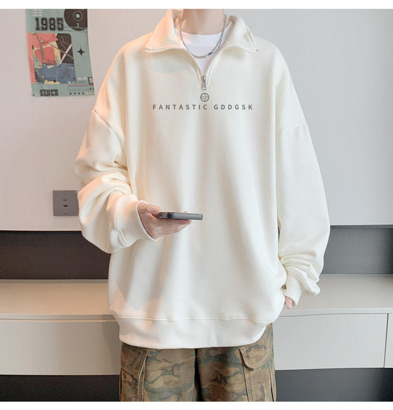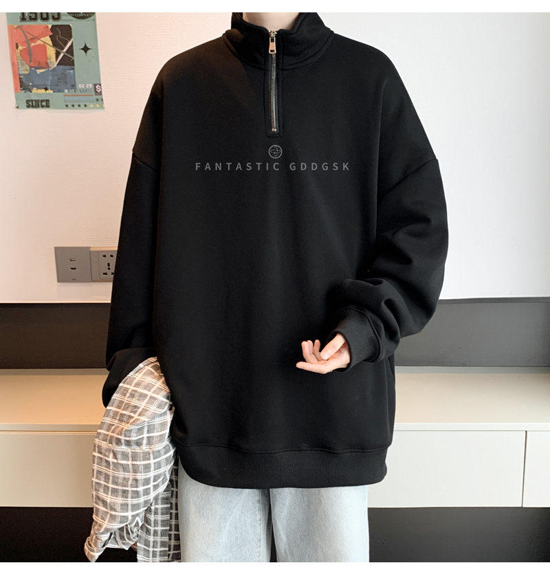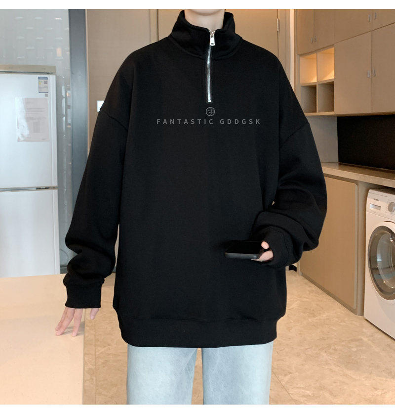秋冬季半拉鍊繙領衛衣男寬鬆情侶美式打底衫潮牌純棉針織港風外套